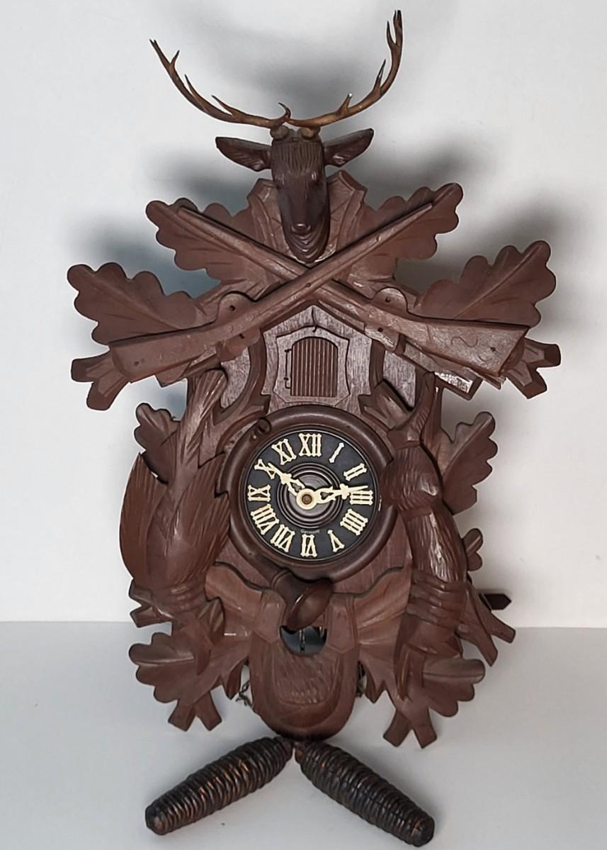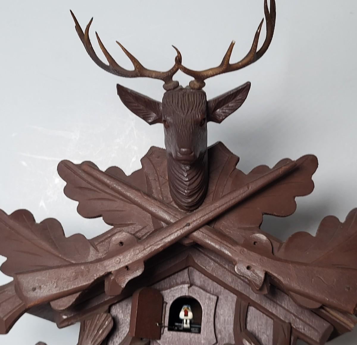 LOT 118: Antique German Made Wooden Hunting Themed Cuckoo Clock