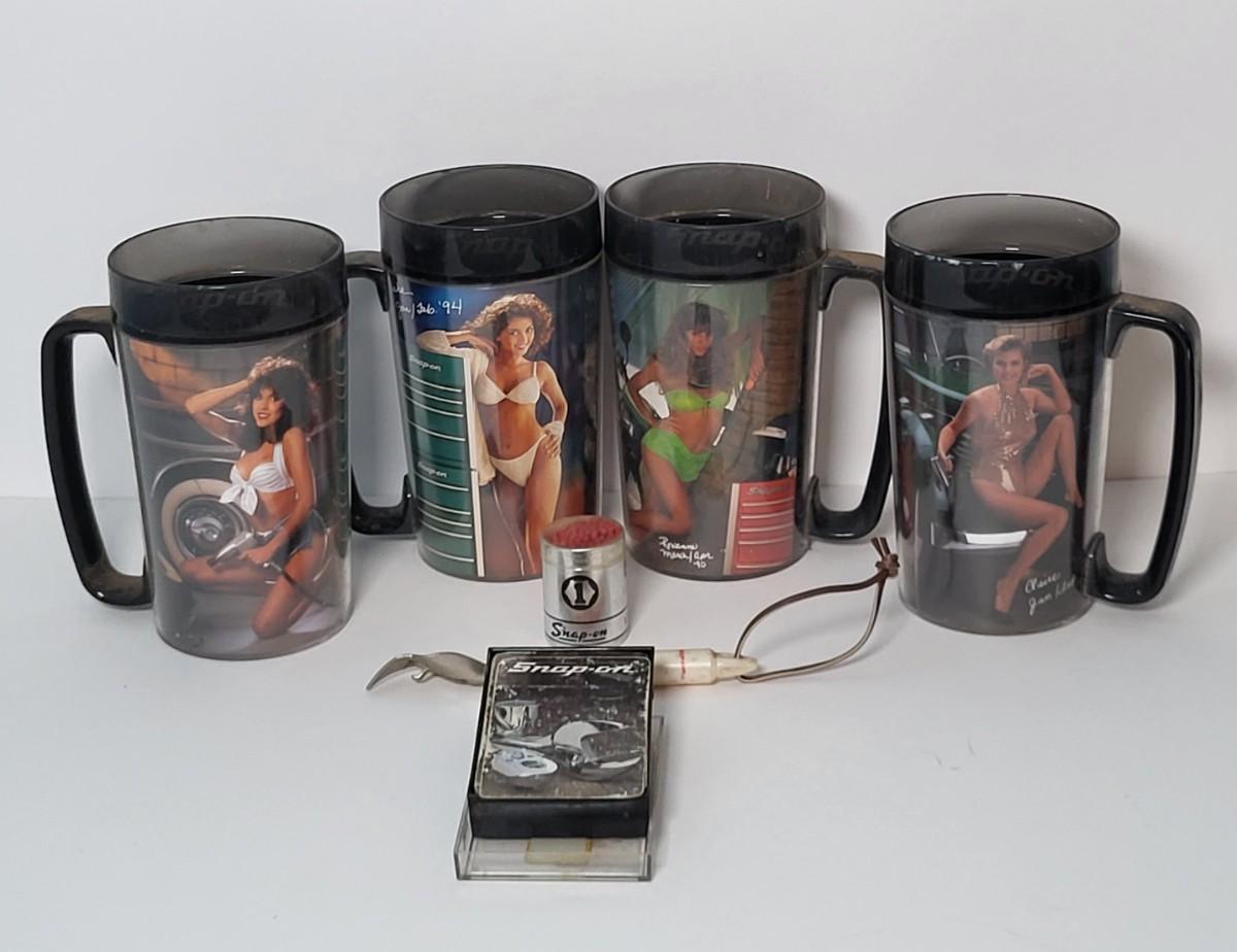 LOT 133: Vintage Snap-On Pin-up Girls 16oz Cups (4) & More