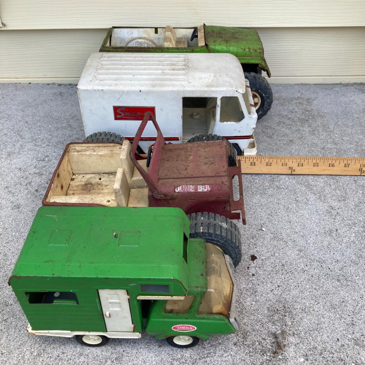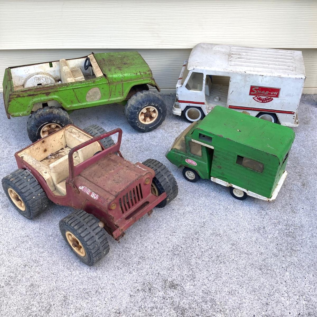 LOT 148: Vintage Metal Tonka, Buddy L and Jeep Toy Trucks