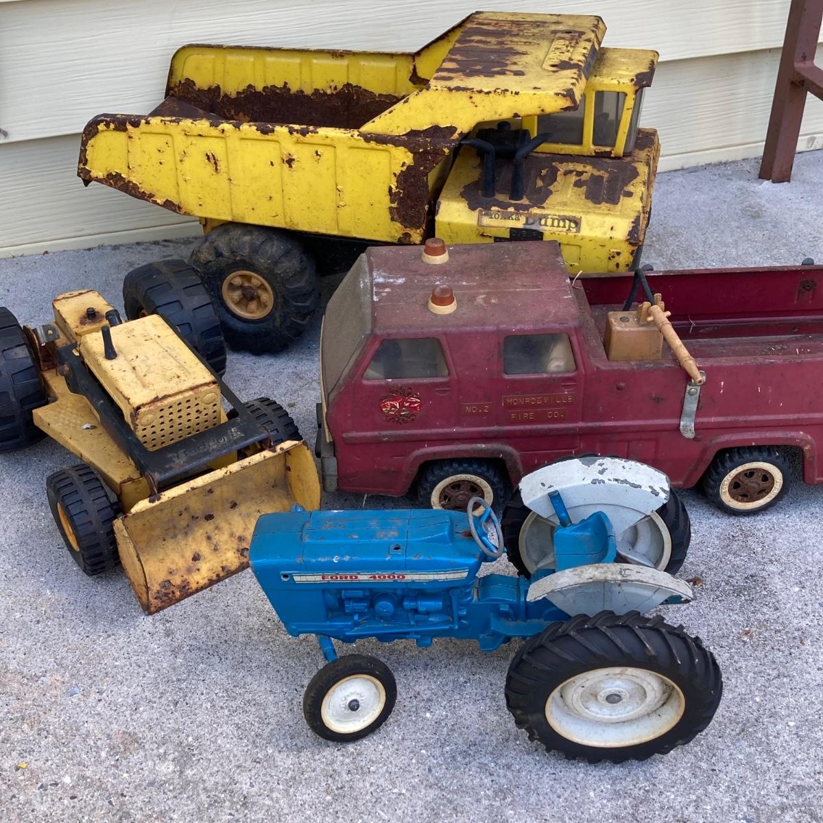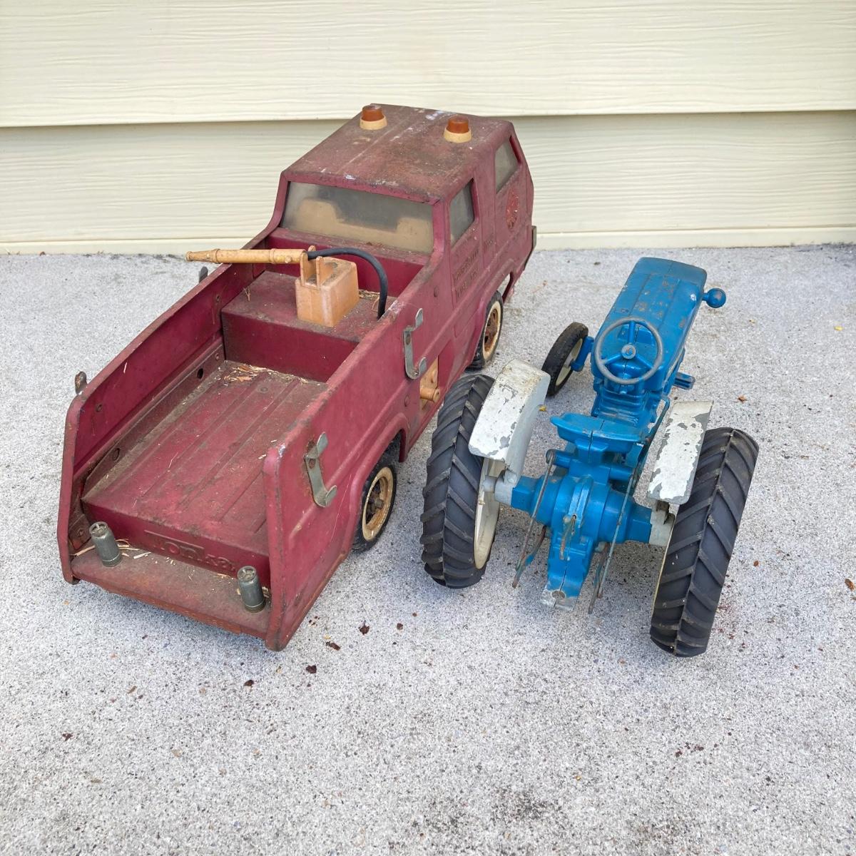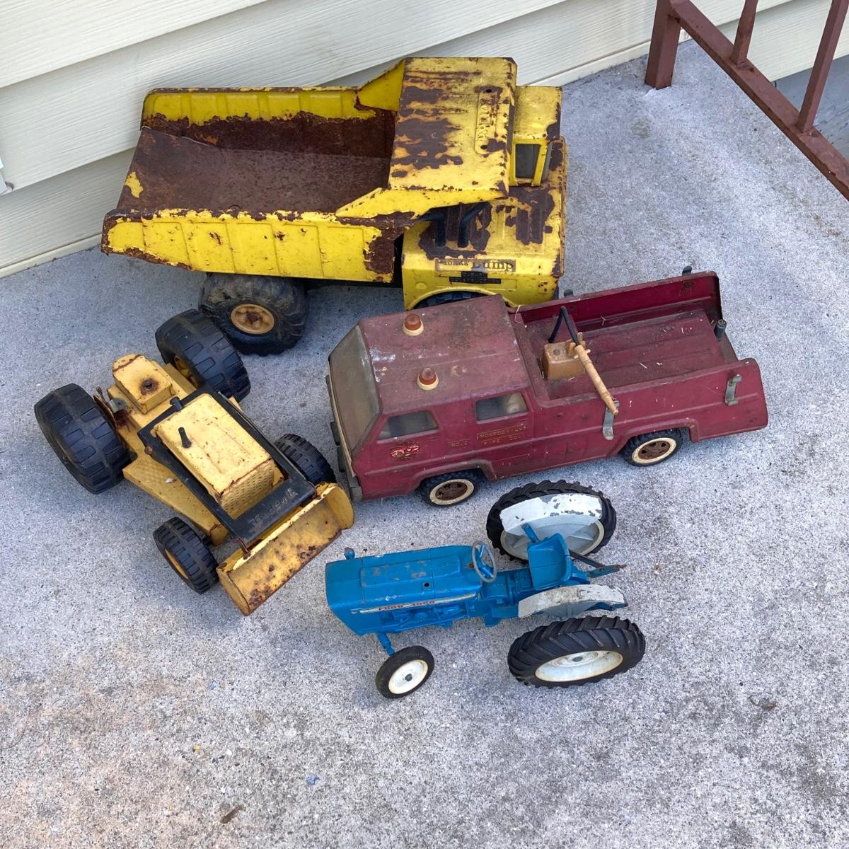 LOT 149: Vintage Metal Toys - Dump Truck, Fire Engine and Tractors - Tonka, Buddy L and More