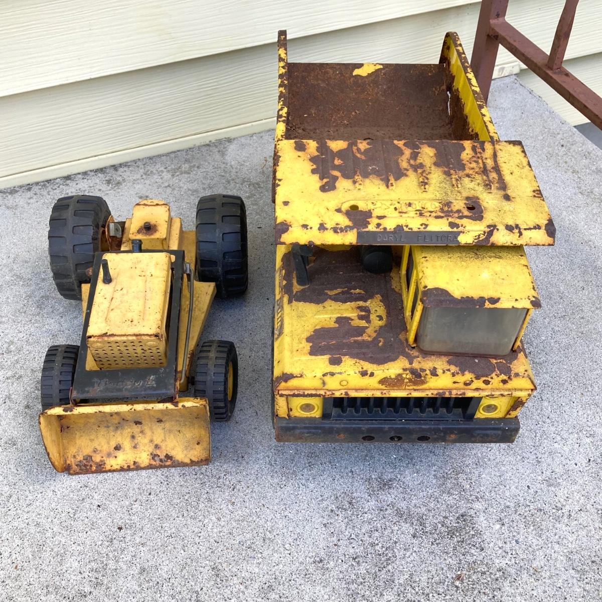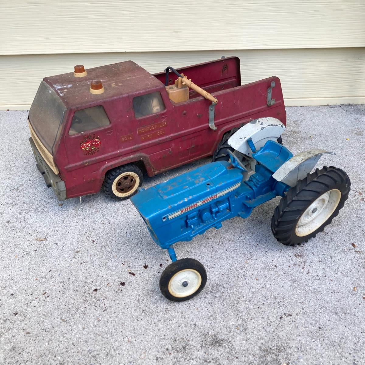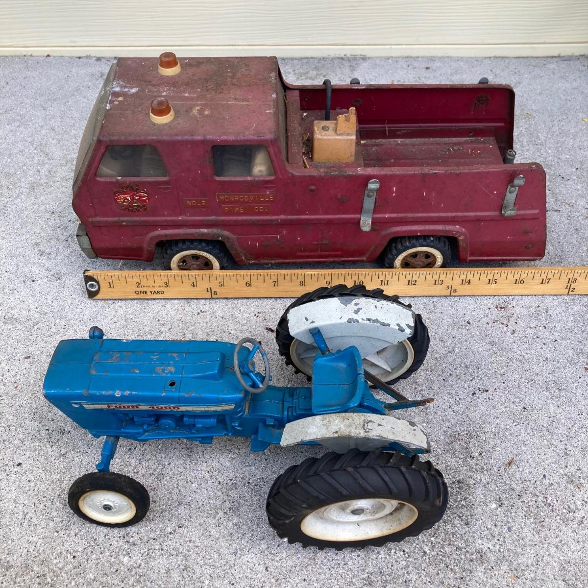LOT 149: Vintage Metal Toys - Dump Truck, Fire Engine and Tractors - Tonka, Buddy L and More