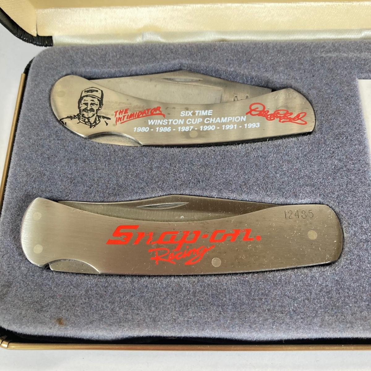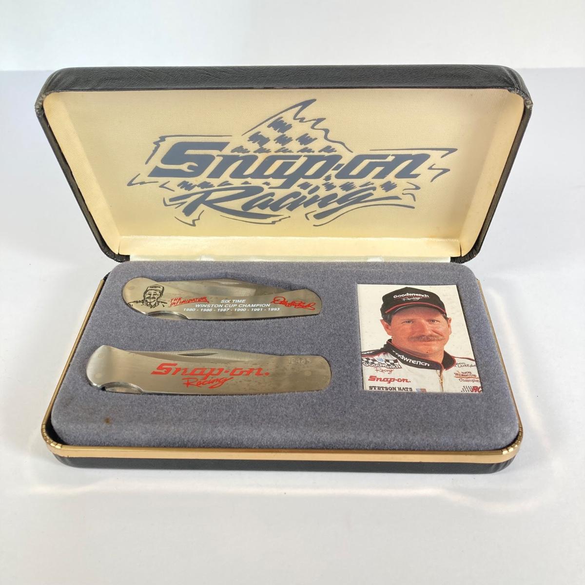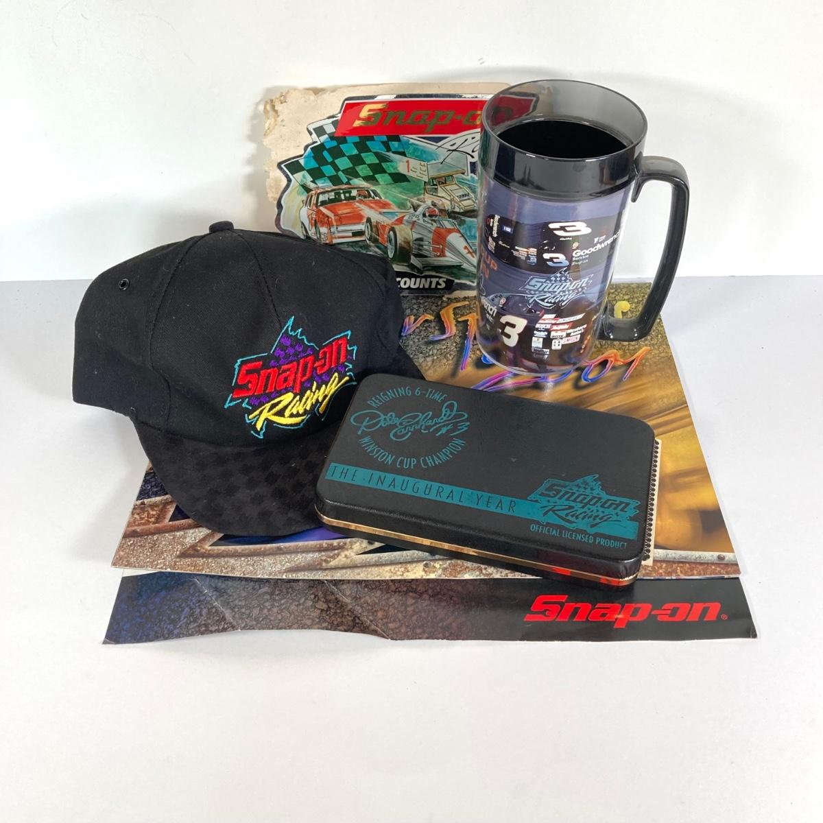 LOT 156: Vintage Snap-on Racing Collection - Decal / Sticker, Racing Hat, Dale Earnhardt Collectible Knives and Mug