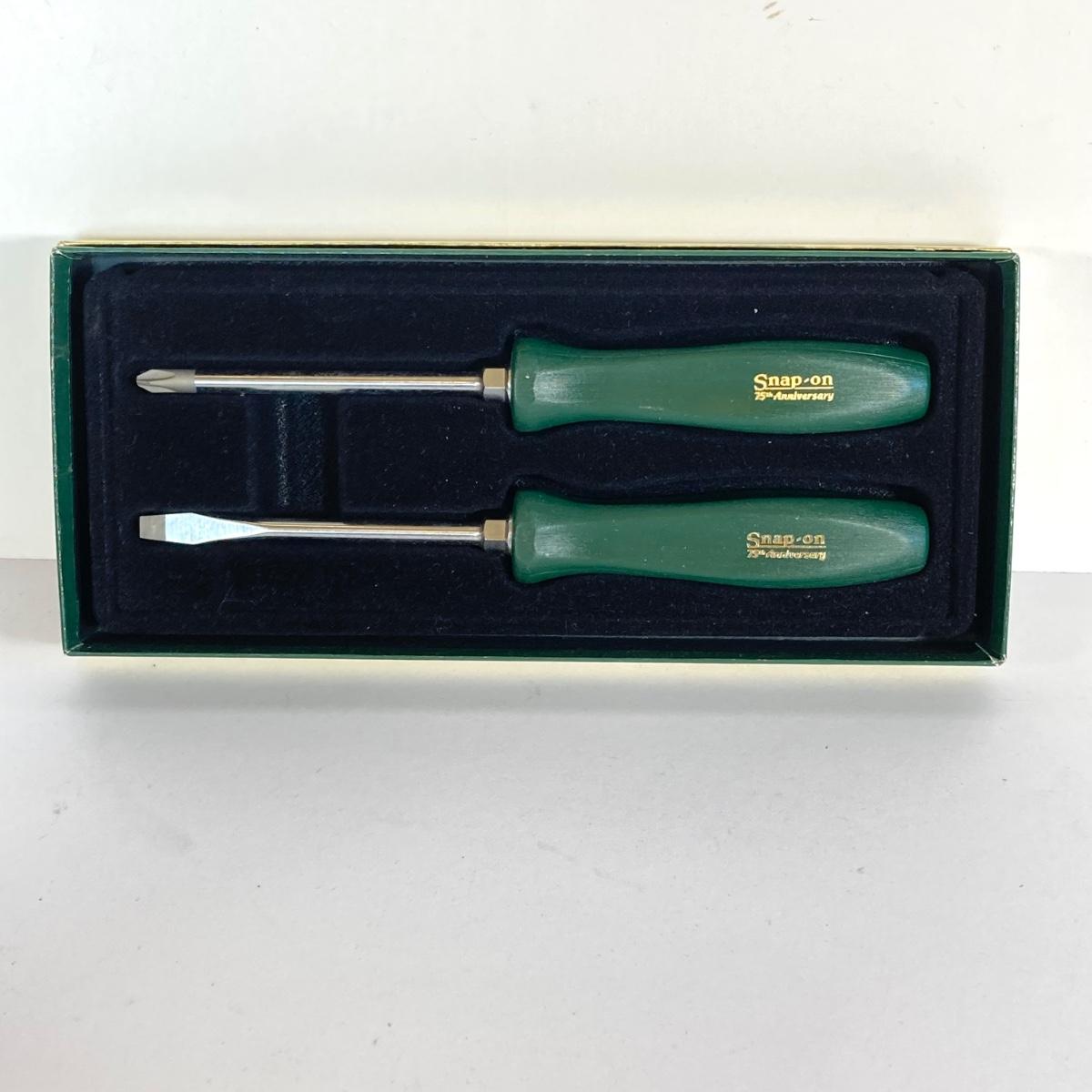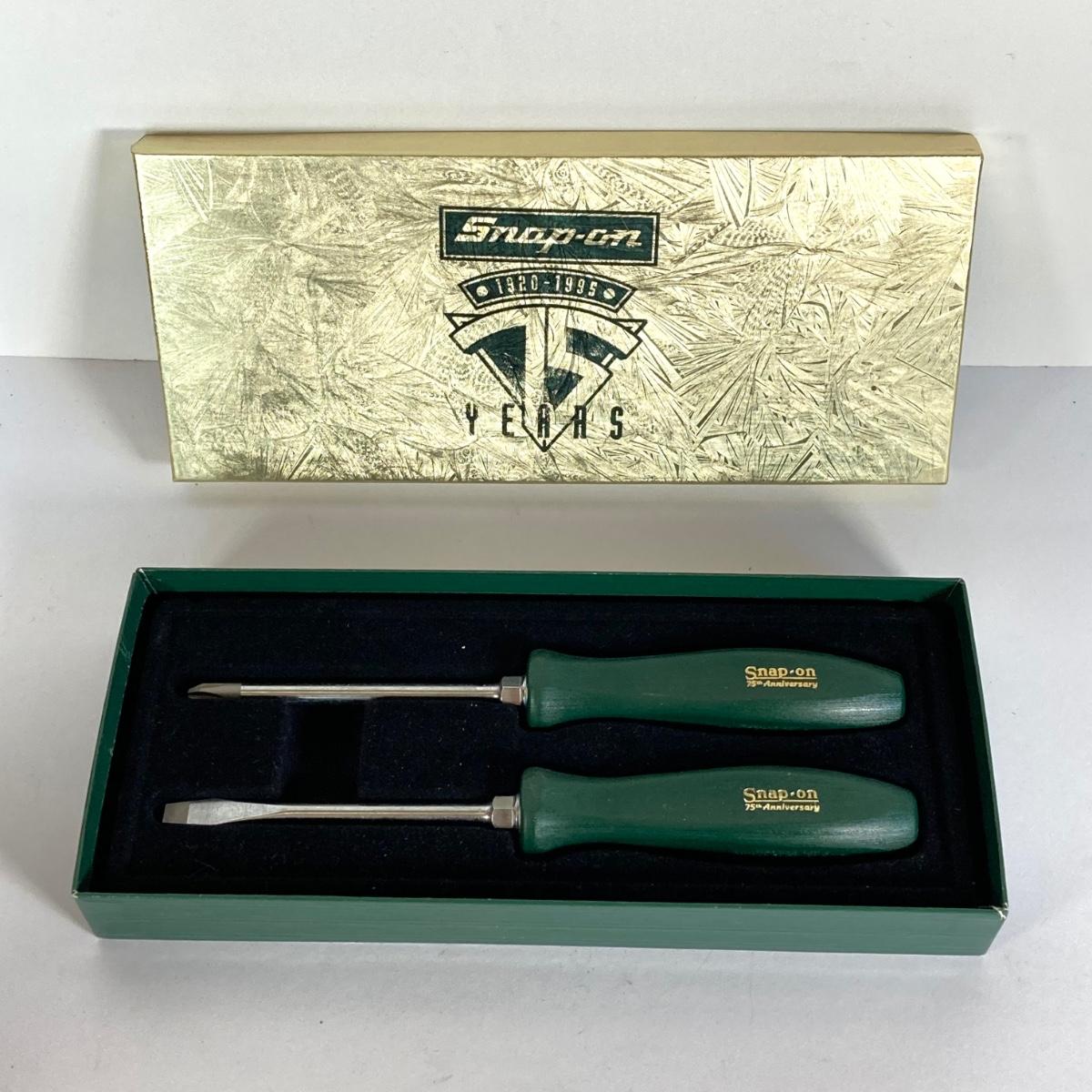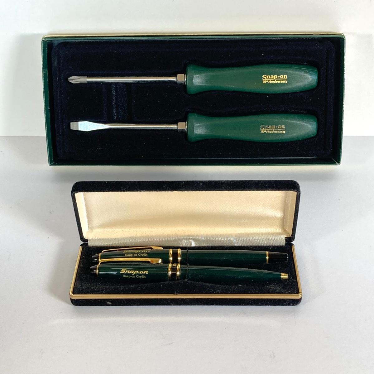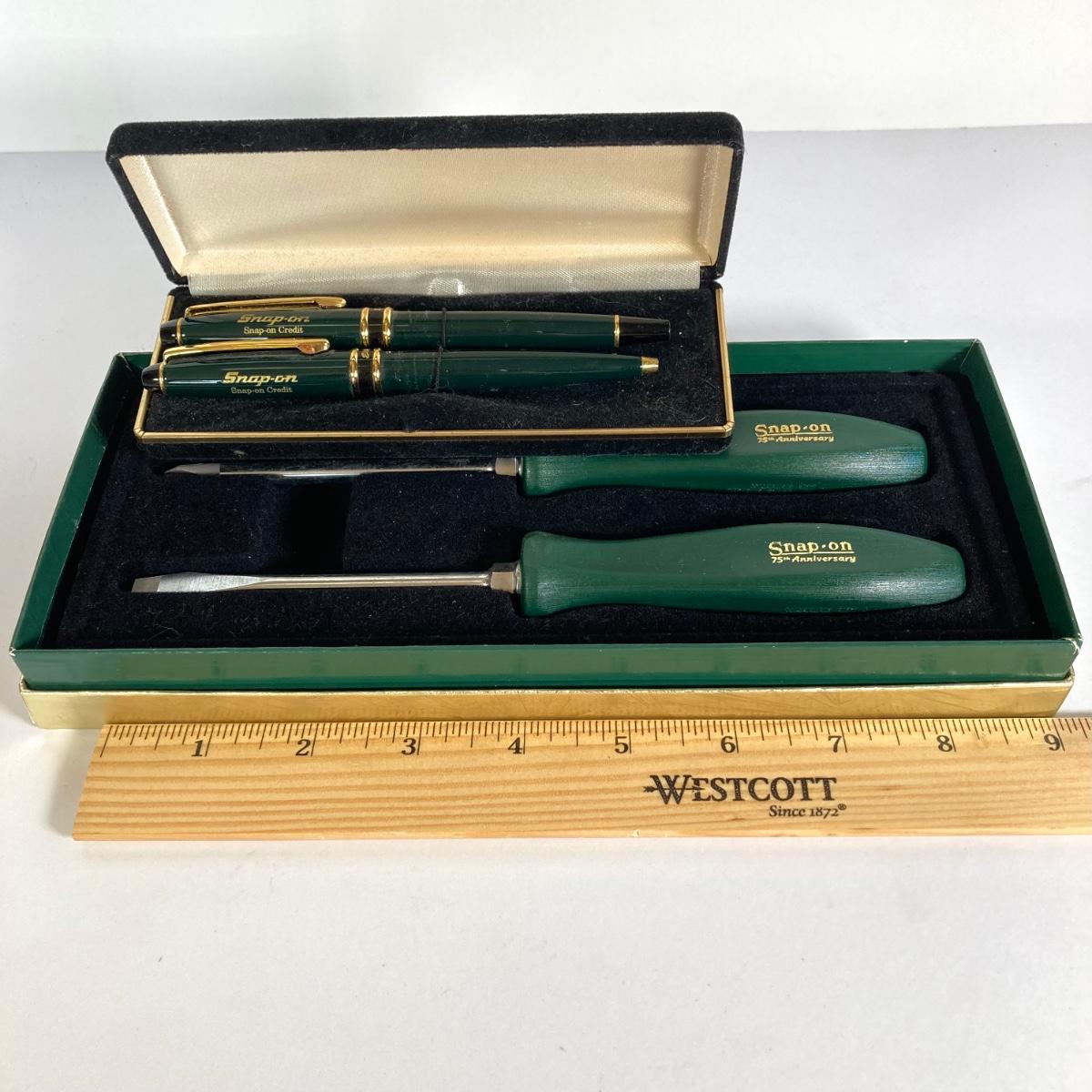 LOT 160: Snap-on 75th Anniversary Collectible Screwdriver Set with Pen and Pencil Set in Original Boxes