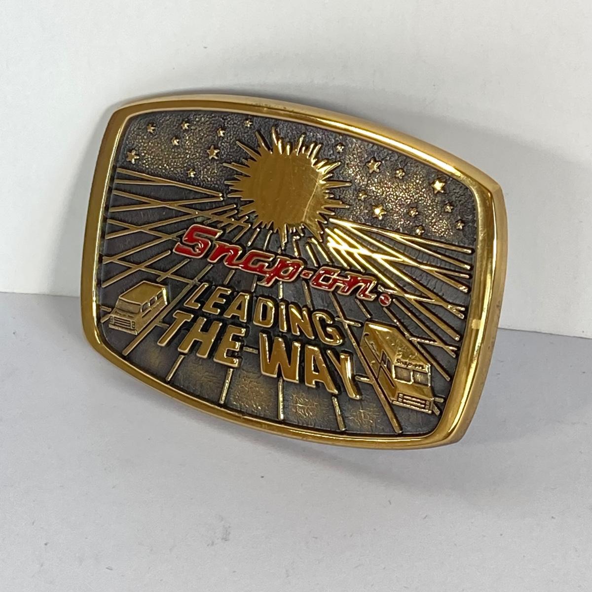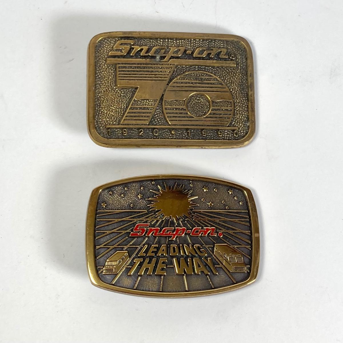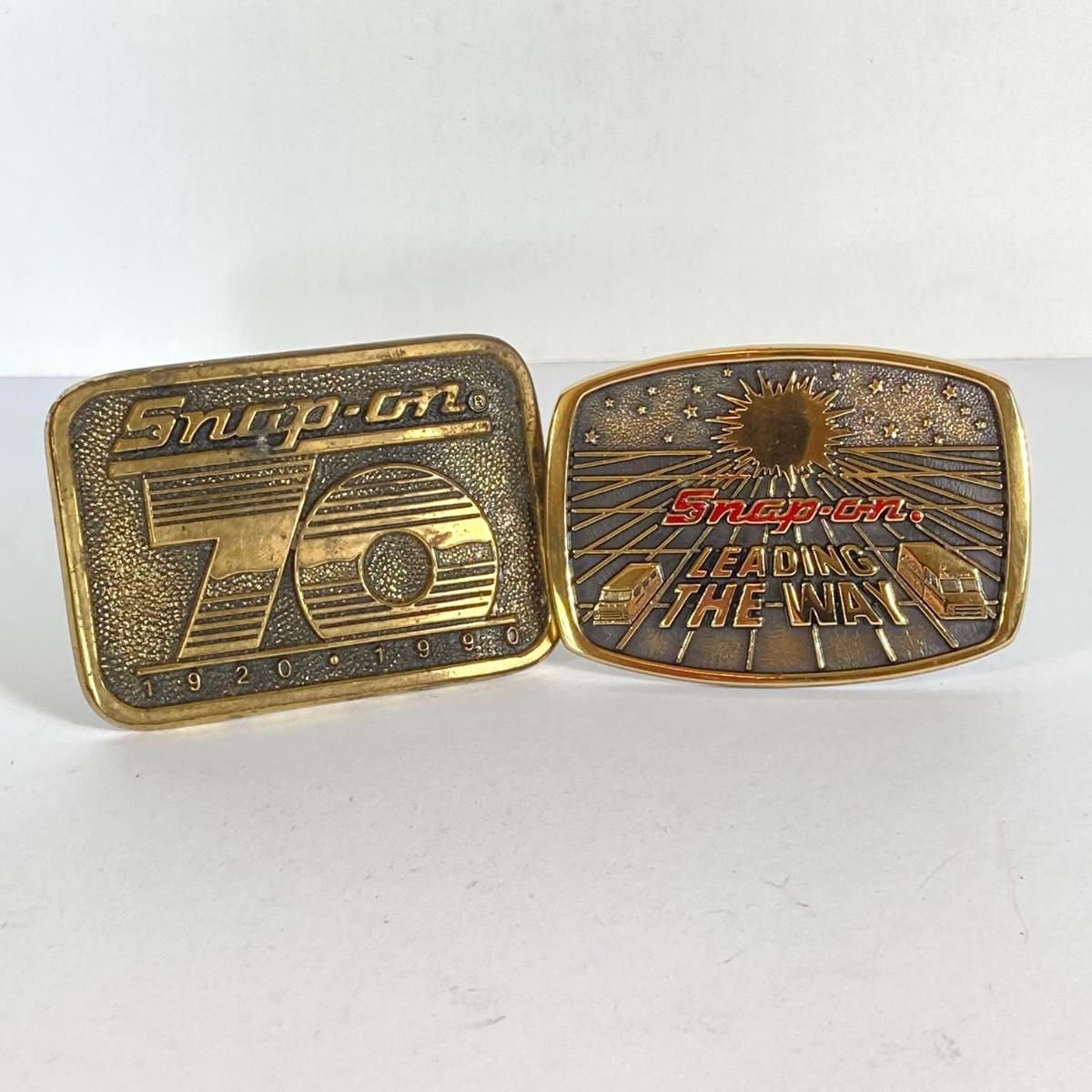 LOT 161: Snap-on 70th Anniversary and Leading the Way Brass Belt Buckles
