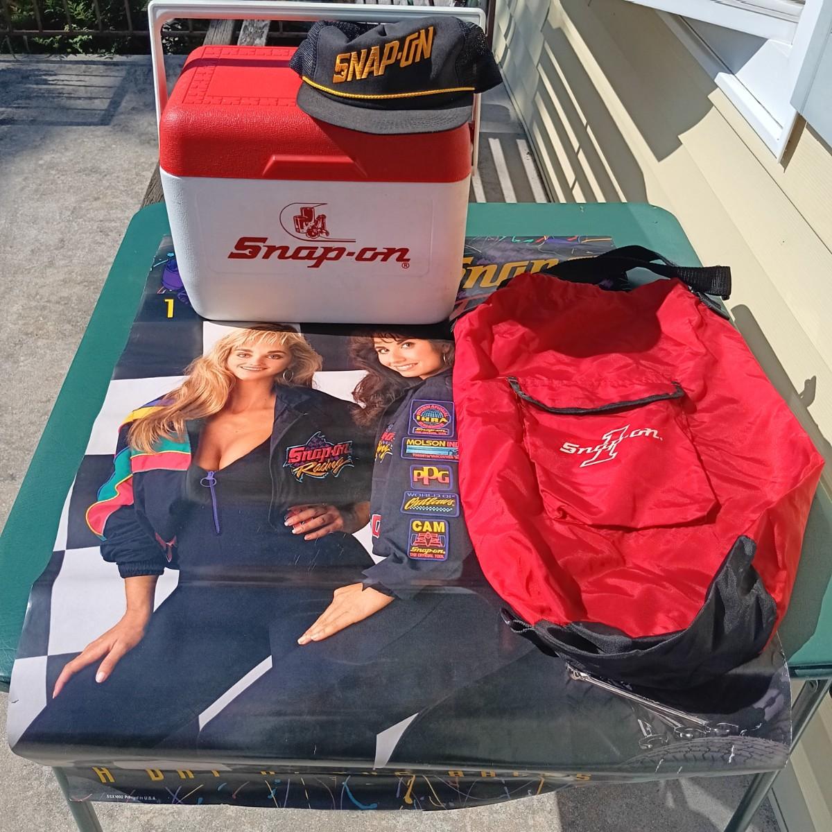 LOT 176: Snap-On Cooler, Snap-On Racing Promotional Poster, Snap-On Cap & Bag