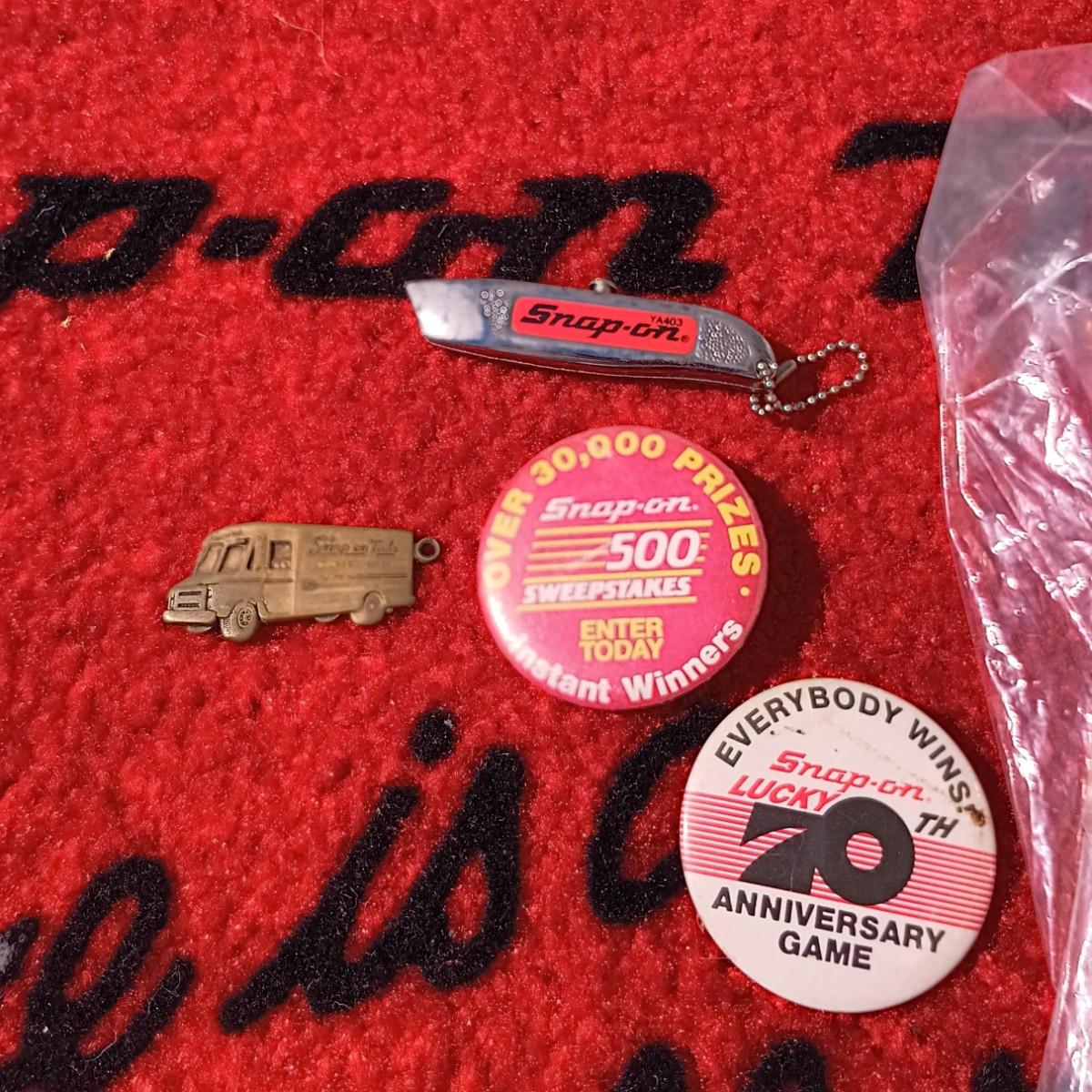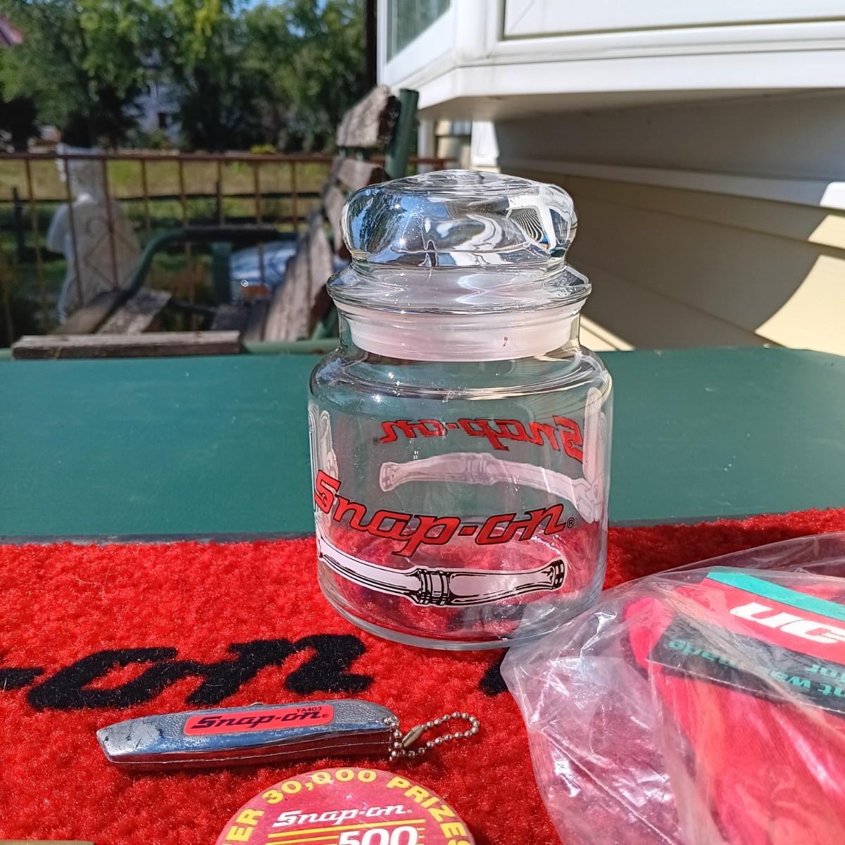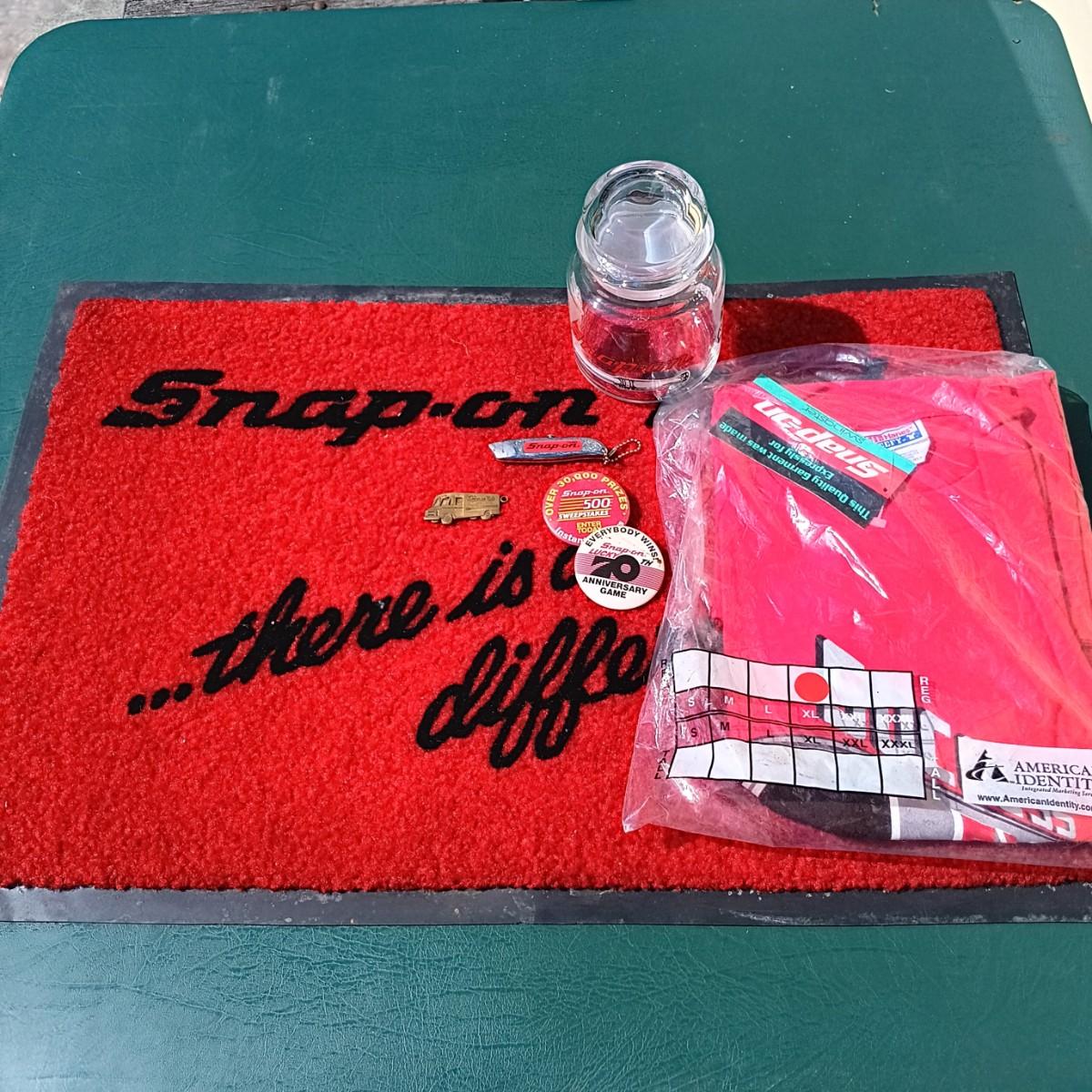 LOT 177: Snap-On Door Mat, Glass Jar, Pocket Knife, Pins & T-Shirt Size XL