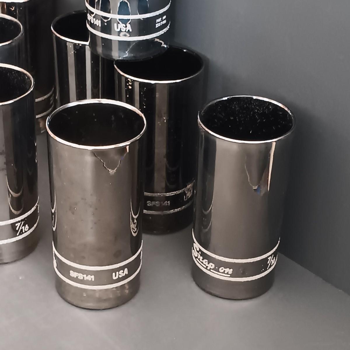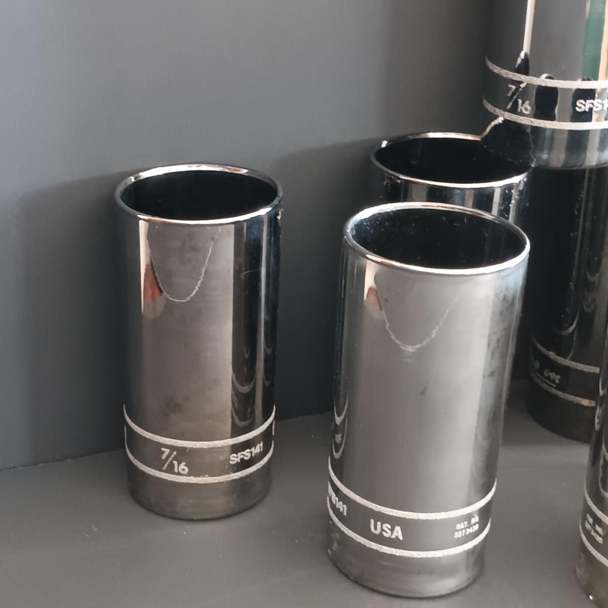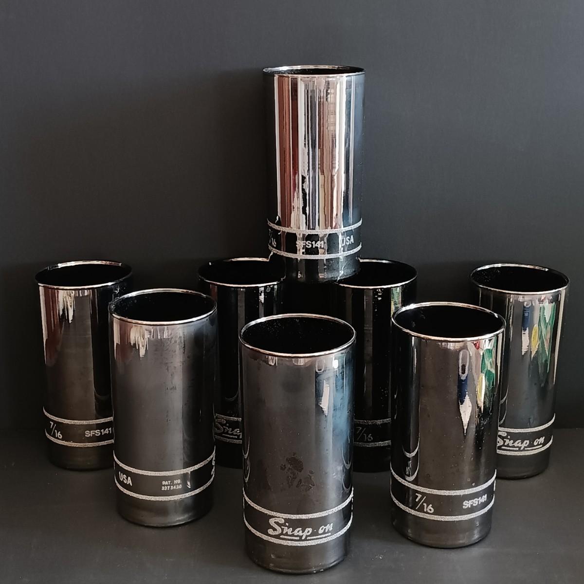 LOT 189: Snap-On Libbey Chrome Socket Drinking Glasses