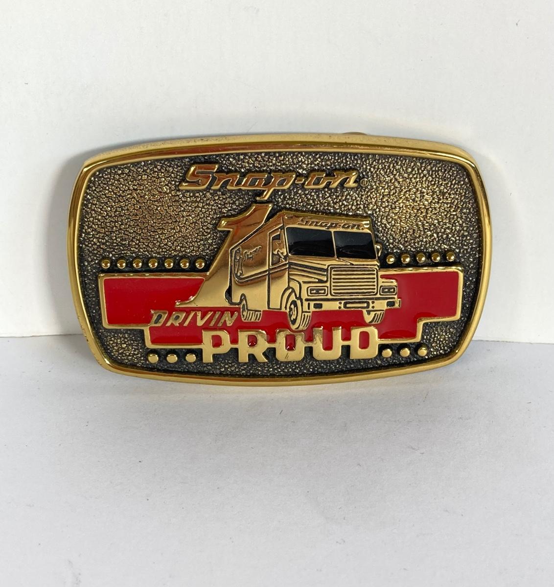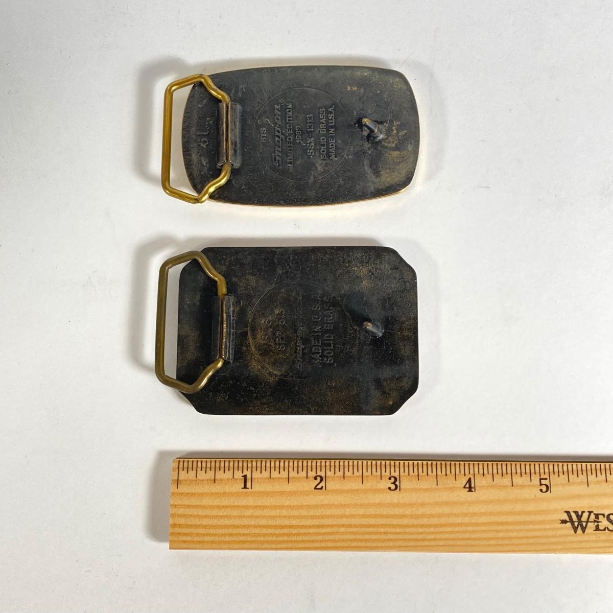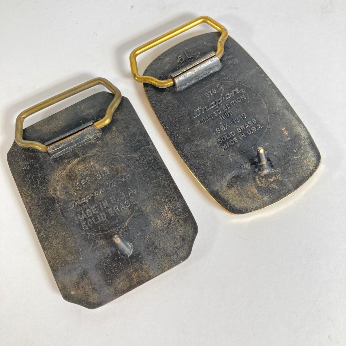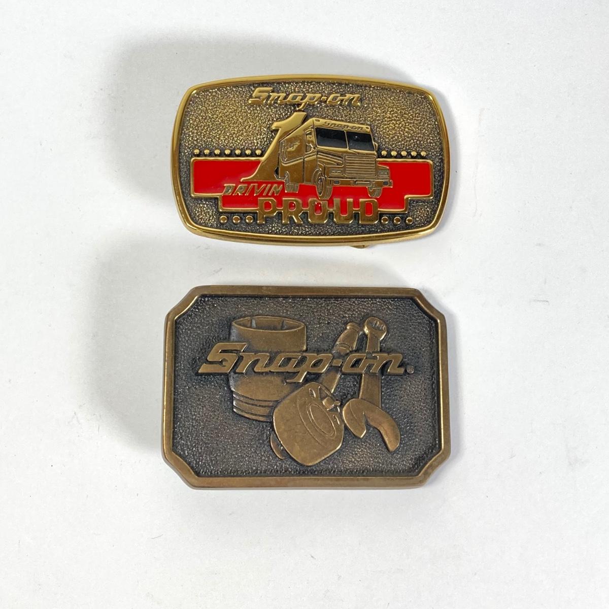 LOT 190: Brass Belt Buckles - Snap-on and Movin Proud