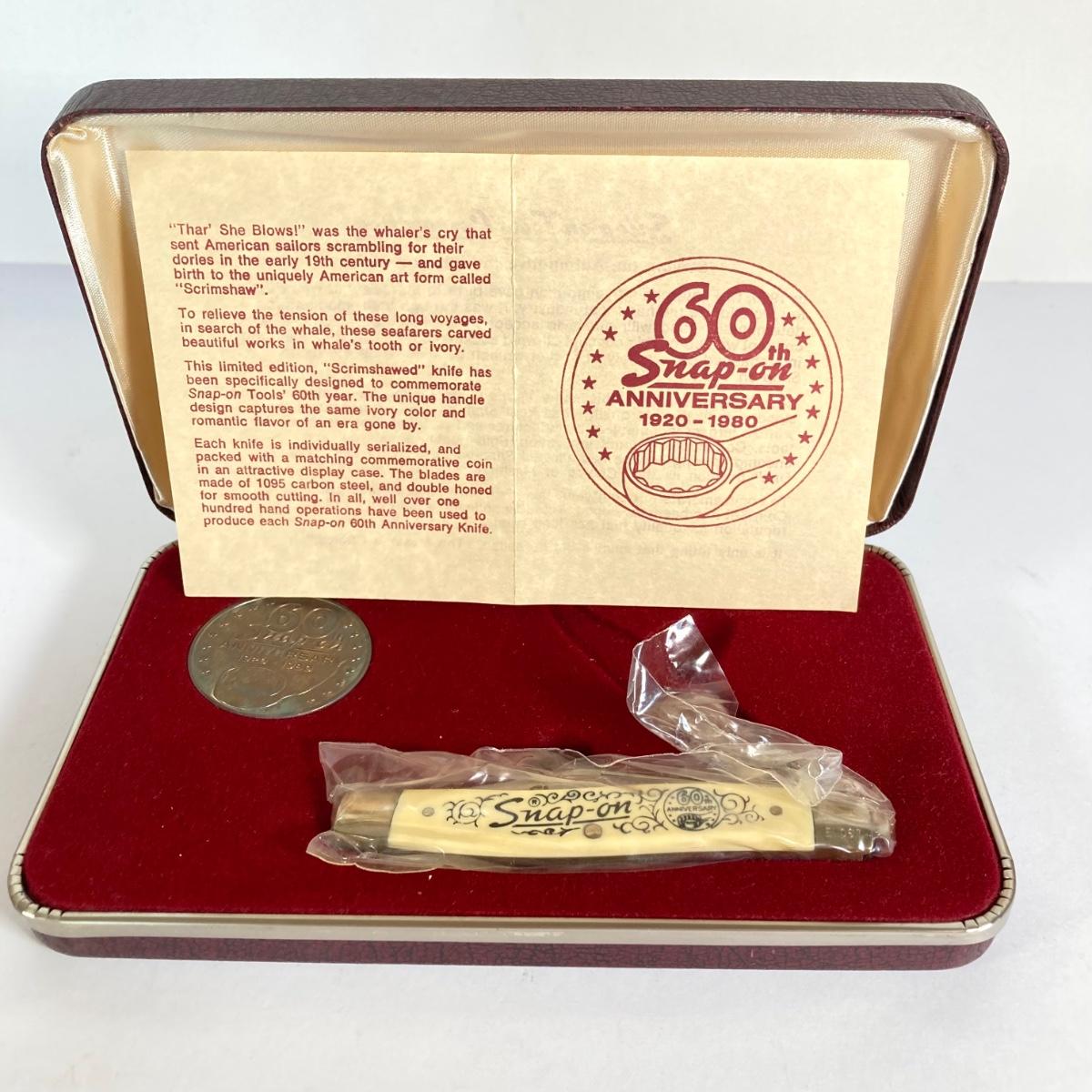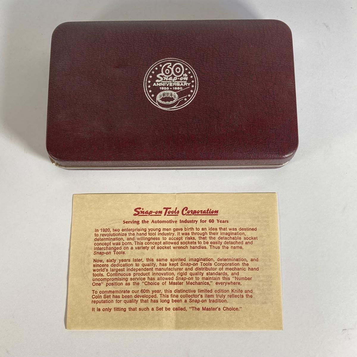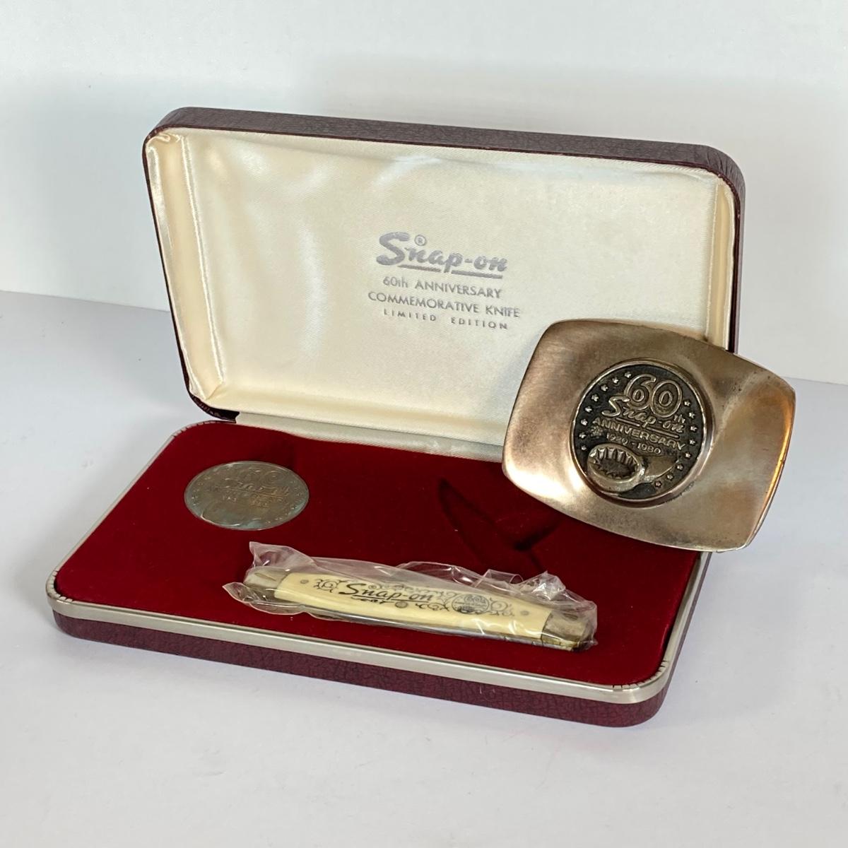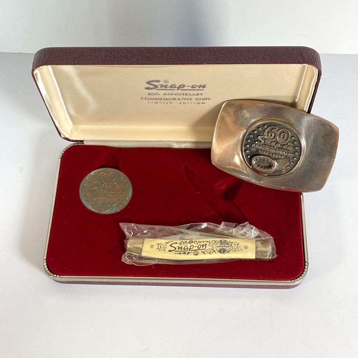 LOT 191: Snap-on 60th Anniversary Commemorative Knife / Coin Set with 60th Anniversary Belt Buckle