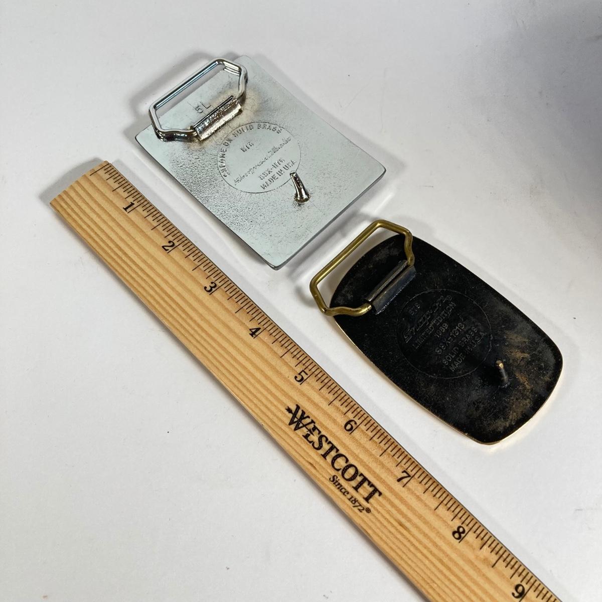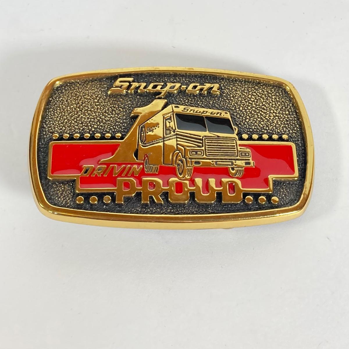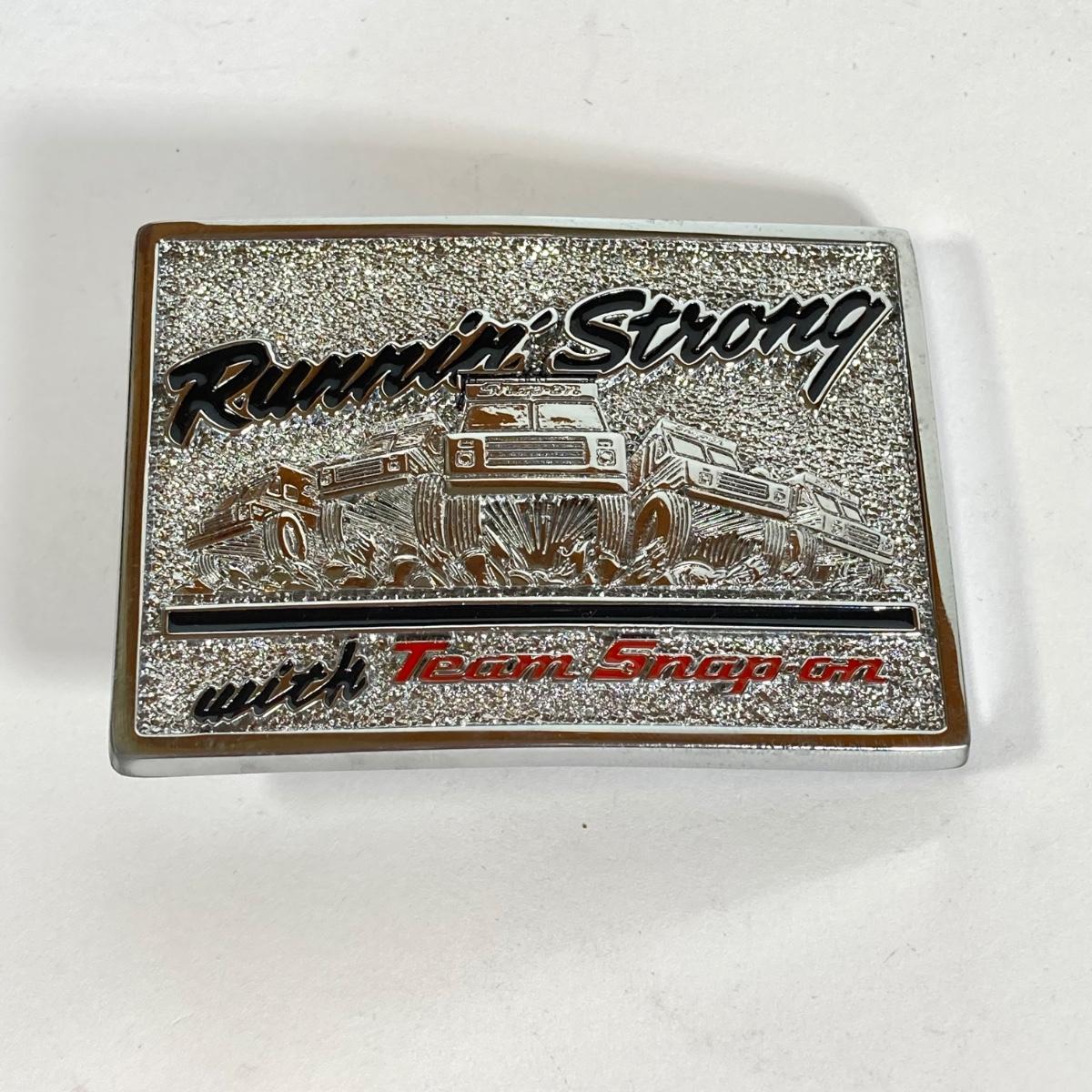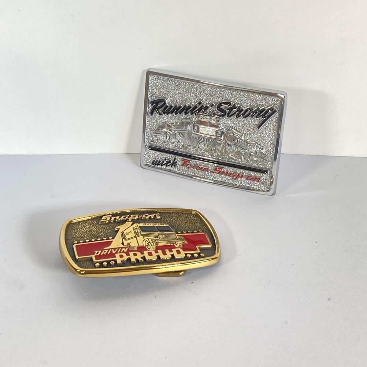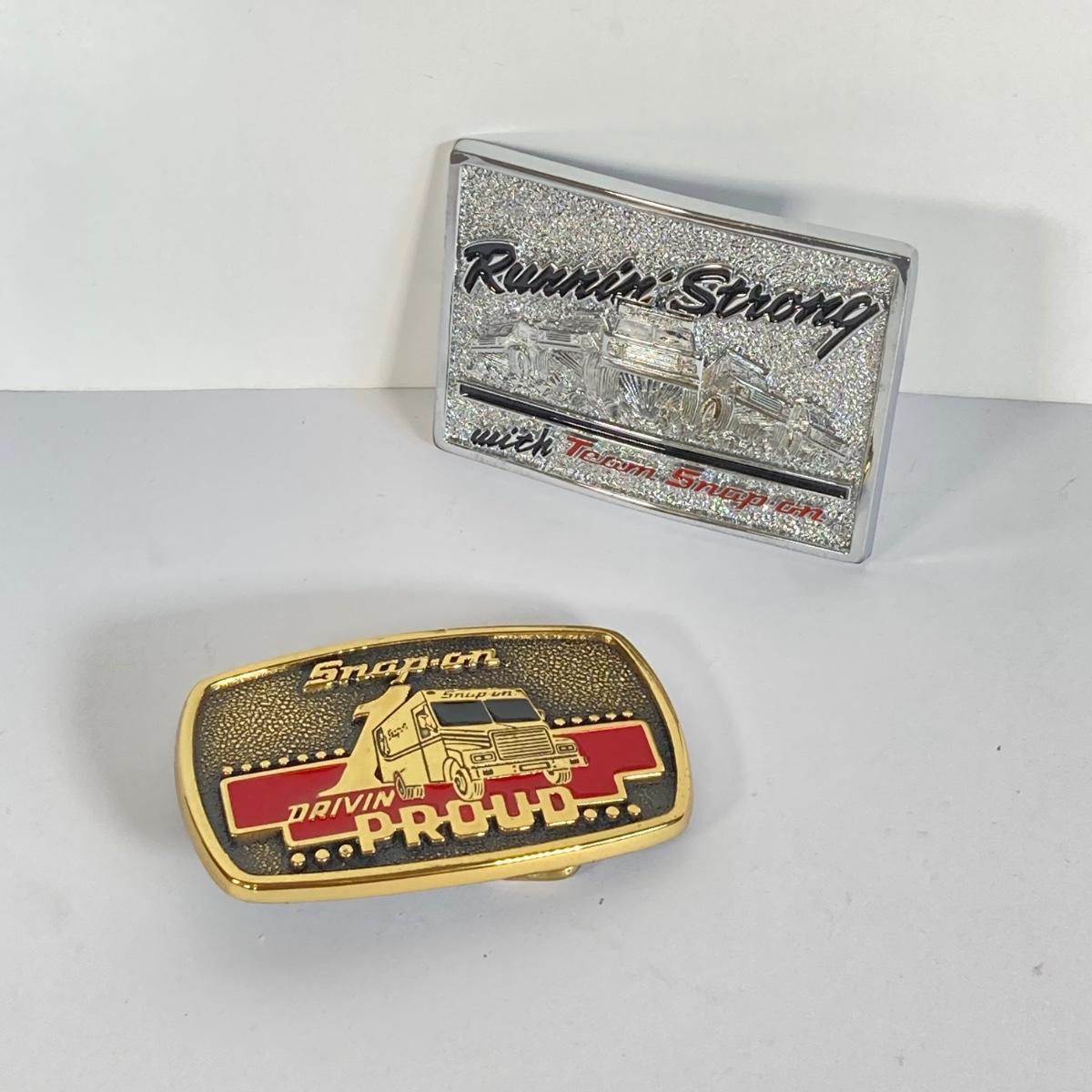 LOT 192: Snap-on Belt Buckles - Drivin Proud Brass and Runnin Strong with Team Snap-on Chrome on Brass