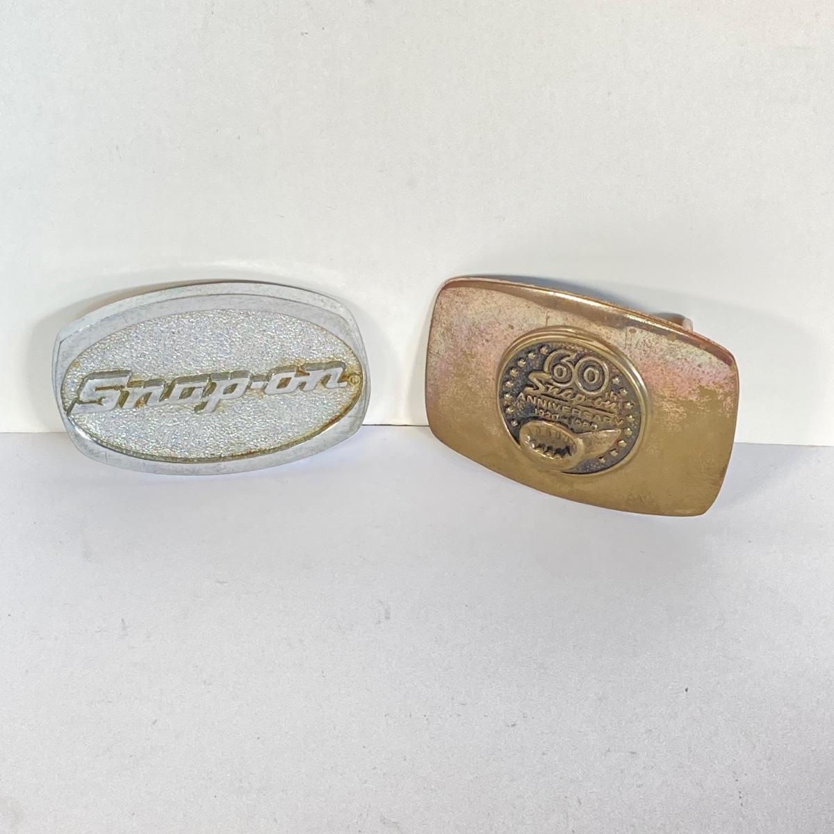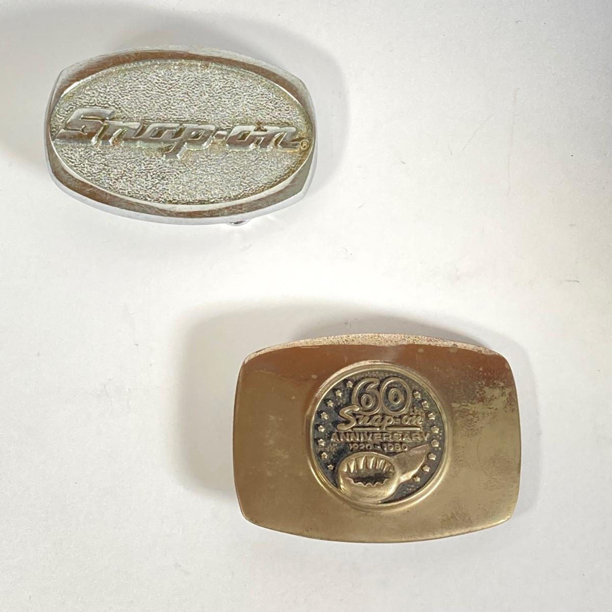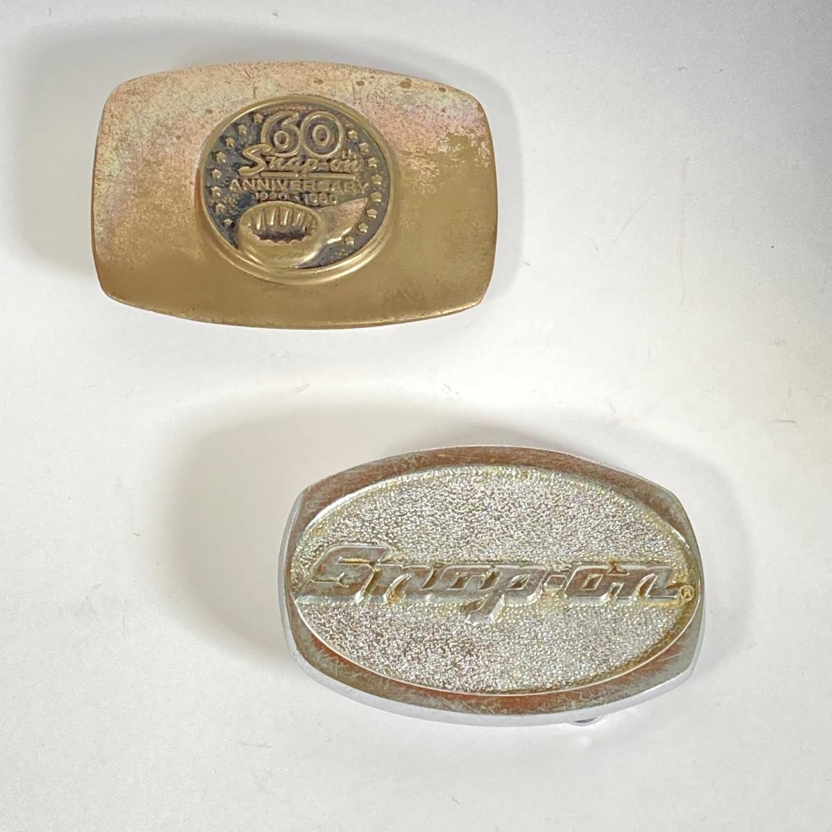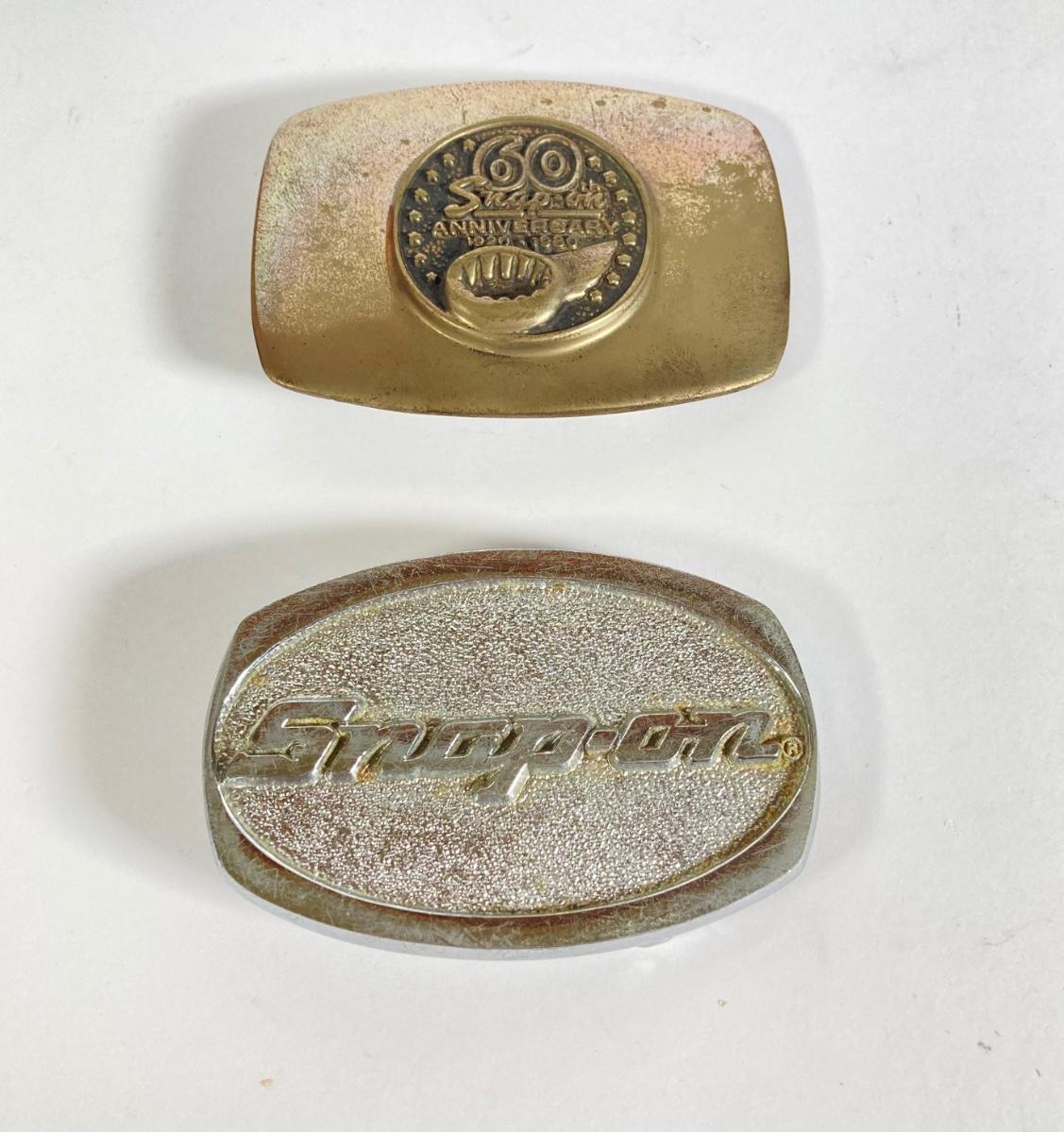 LOT 193: Pair of Snap-on Belt Buckles - 60th Anniversary and Snap-on (Chrome and Bronze)