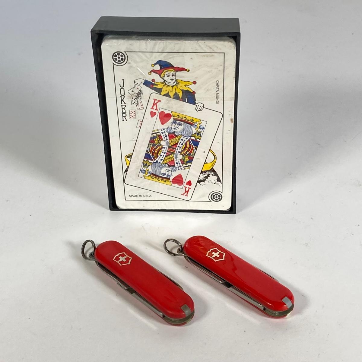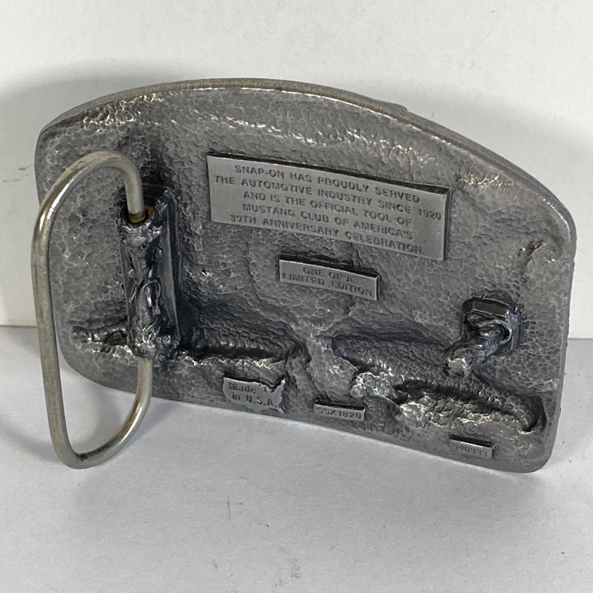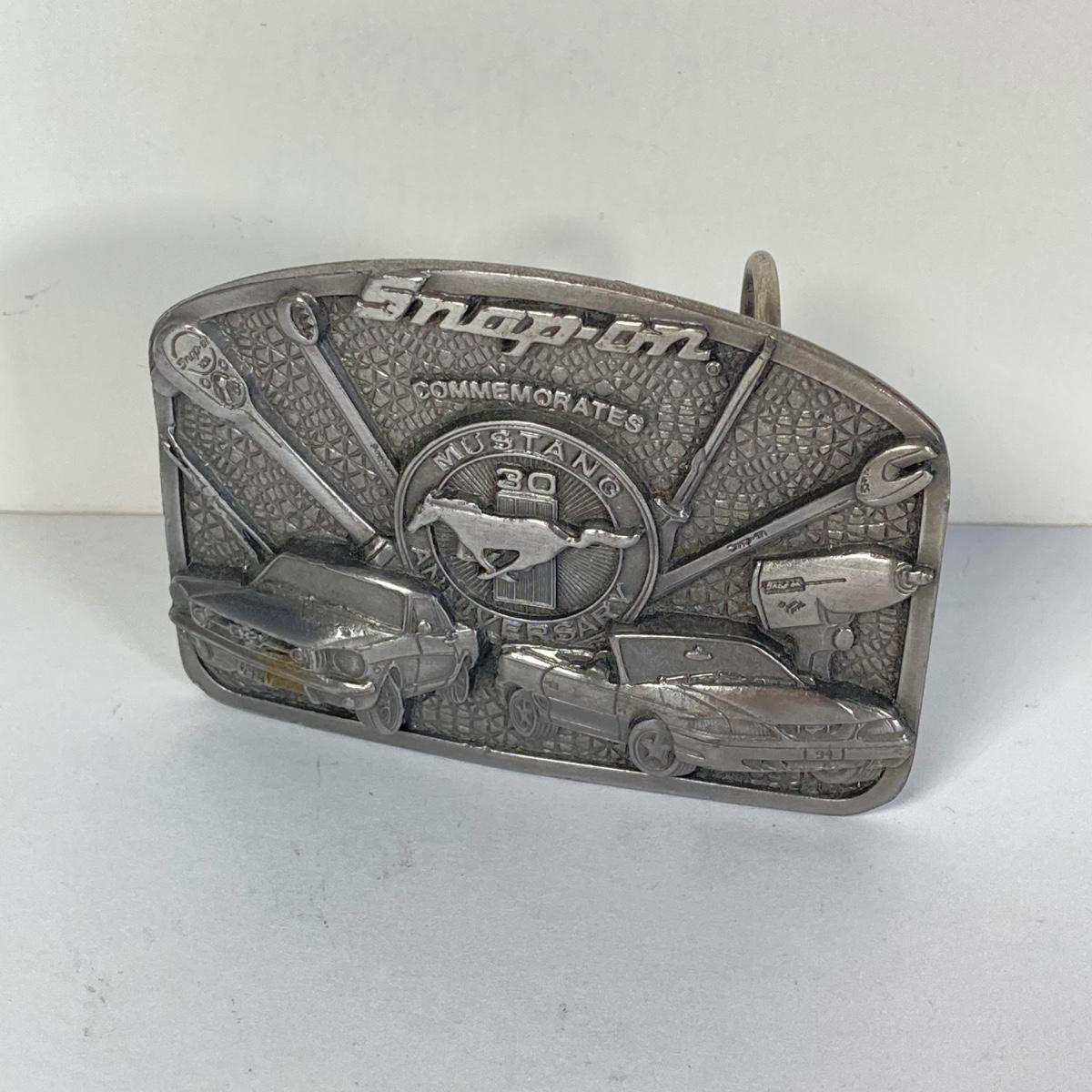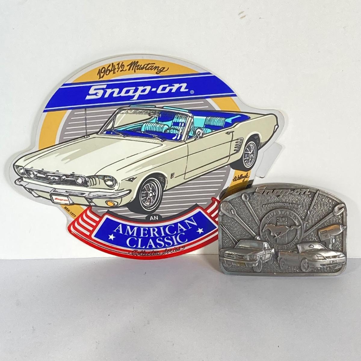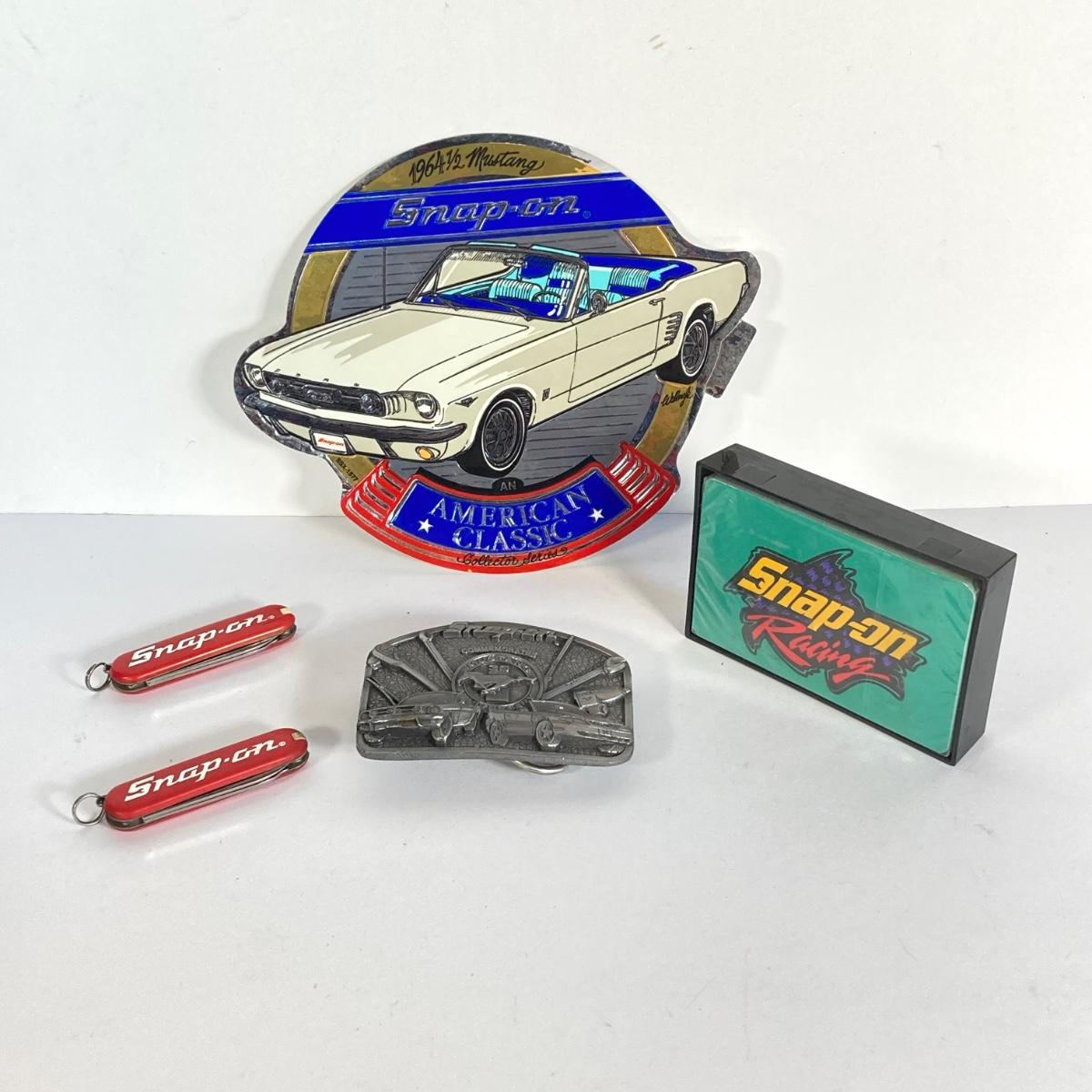 LOT 197: Ford and Snap-on Collection - Commemorative Mustang Belt Buckle, American Classics Decal, Victorino Switzerland Knives and Playing Cards
