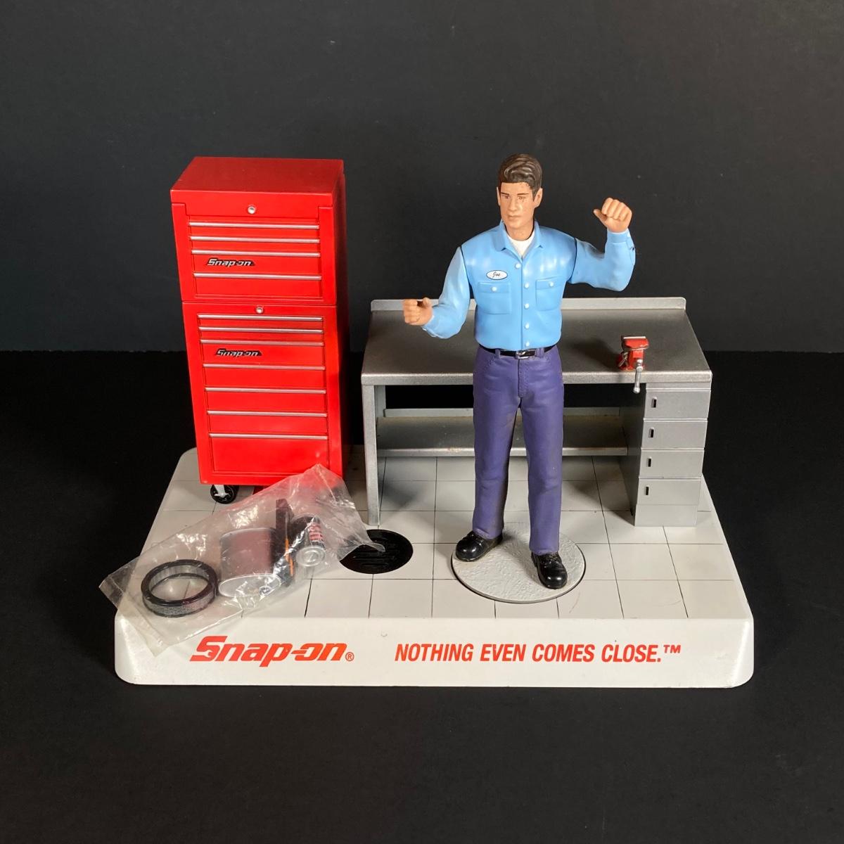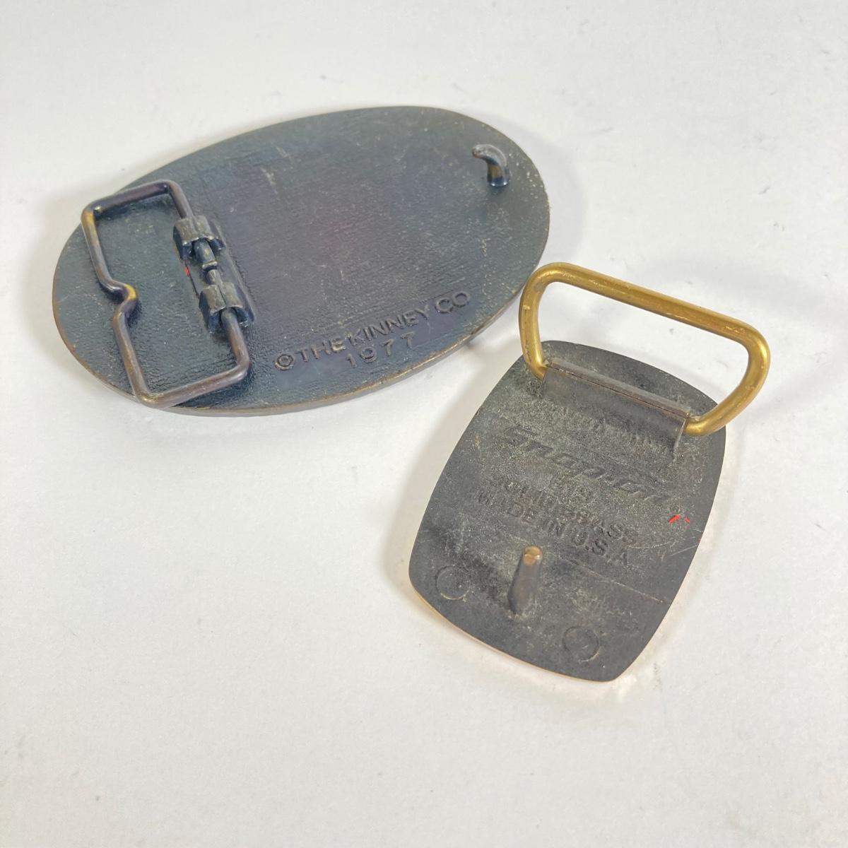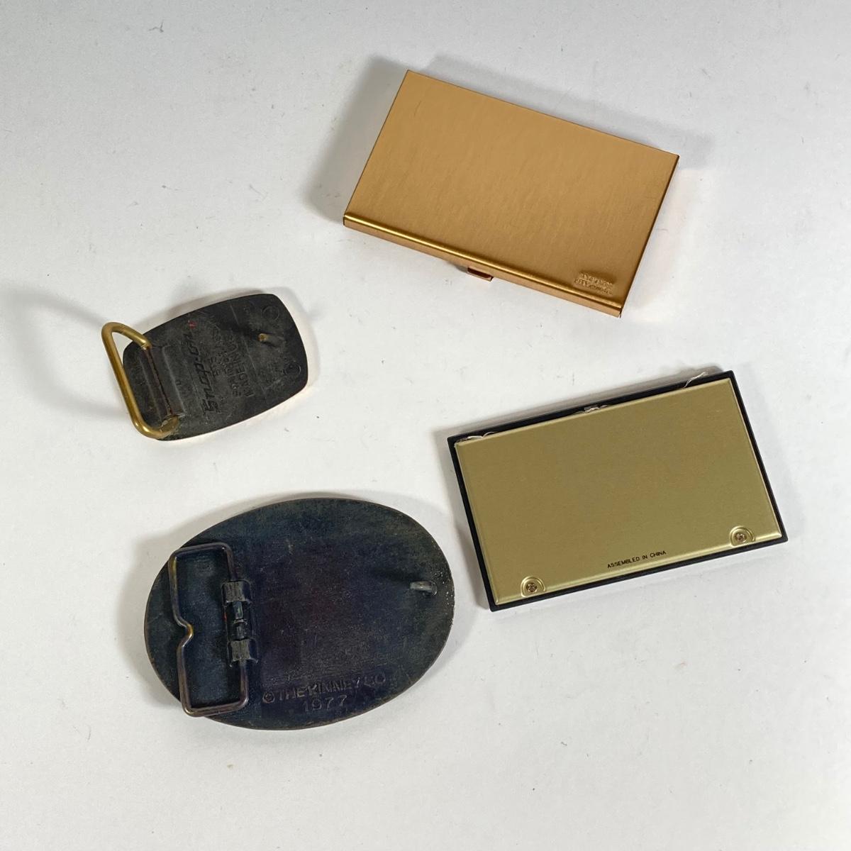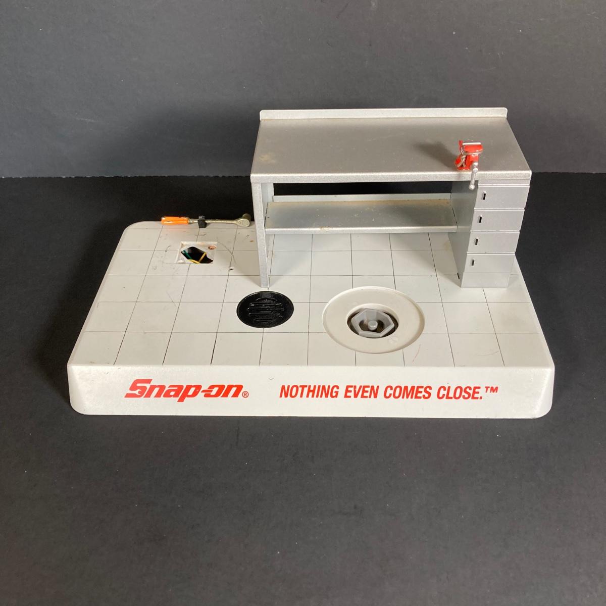 LOT 201: Snap-on Joe's Service "Nothing Even Comes Close" Motion Bank, #1 Worldwide Pennant, Business Card Holder / Calculator and Belt Buckles