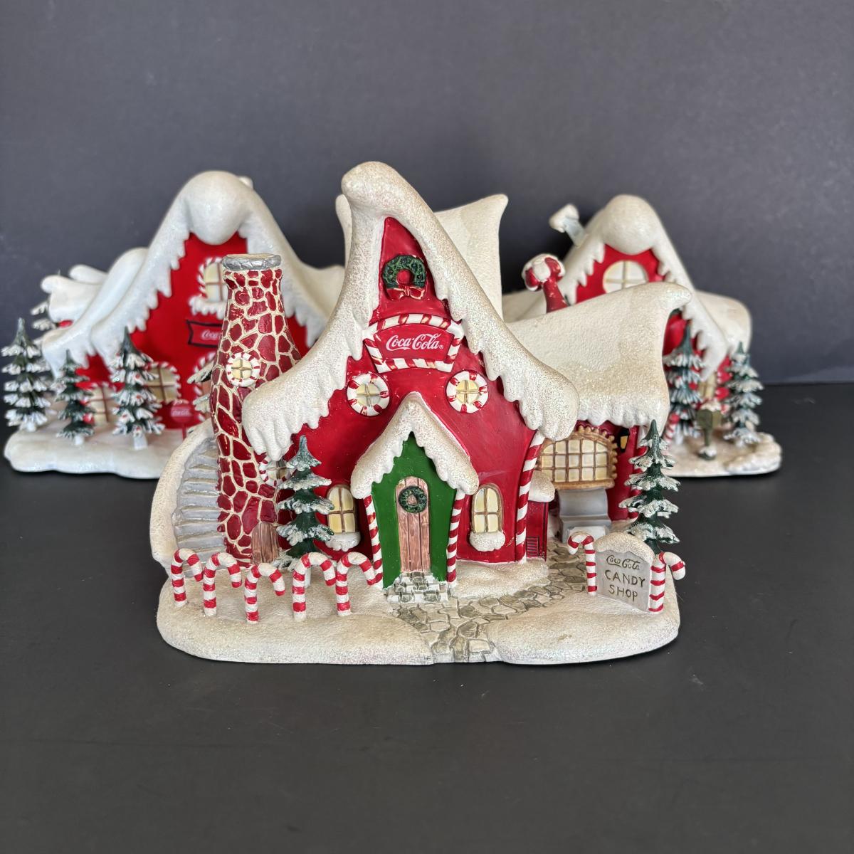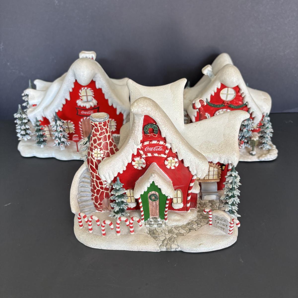 LOT 219: Hawthorne Village: Coca-Cola Polar Bear Village Collection: Post Office, Blizzard Run Ski Lodge, Candy Shop