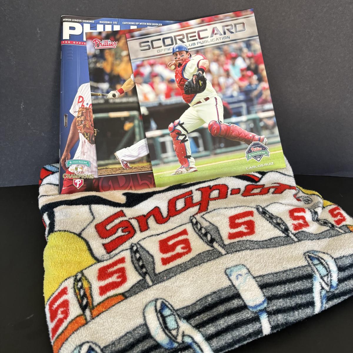 LOT 220: Snap On Championship Team Beach Towel & Philadelphia Phillies Magazine & More