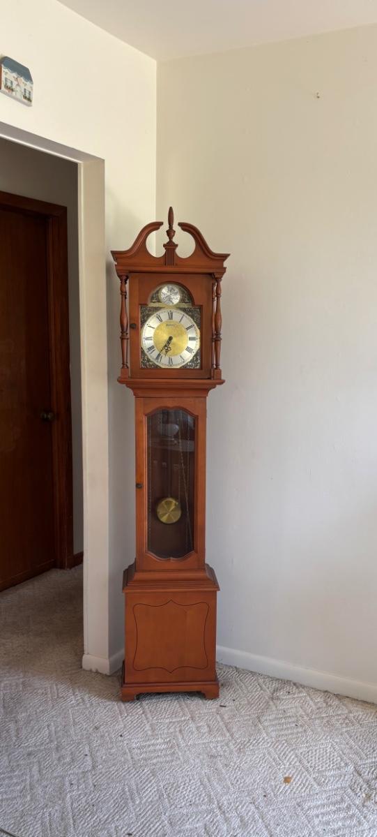 LOT 221: Barwick Howard Miller Grandmother Clock - works!