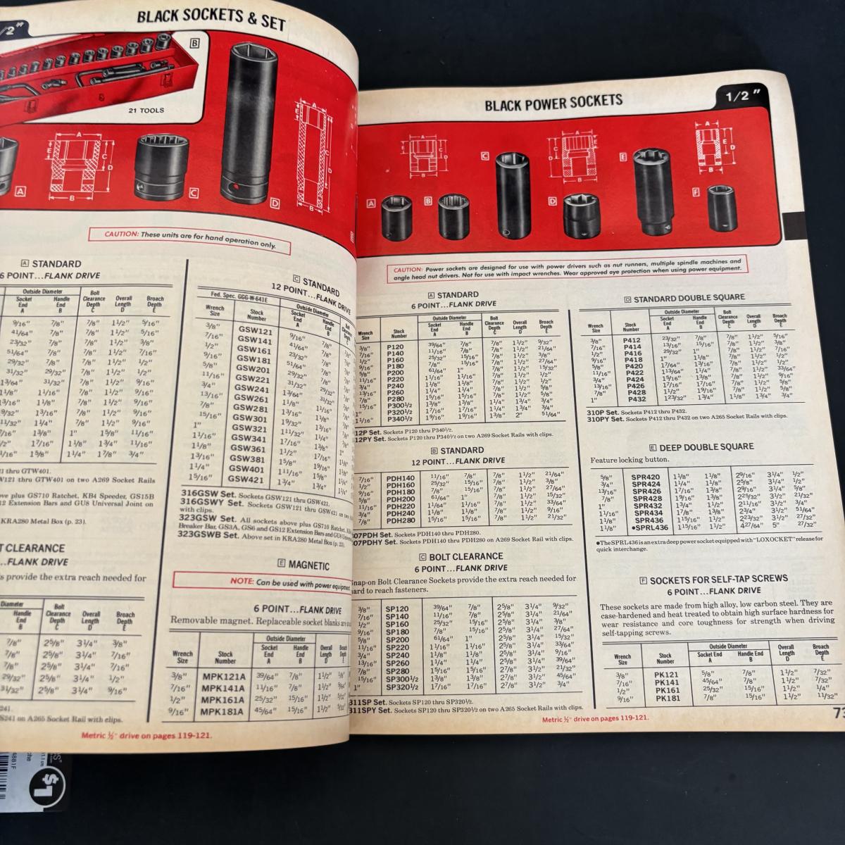LOT 222: Vintage 1982 Snap On Product Catalogs, Black Hard Handled Screwdrivers & Ratcheting Screwdriver, March 1980 Product Catalog
