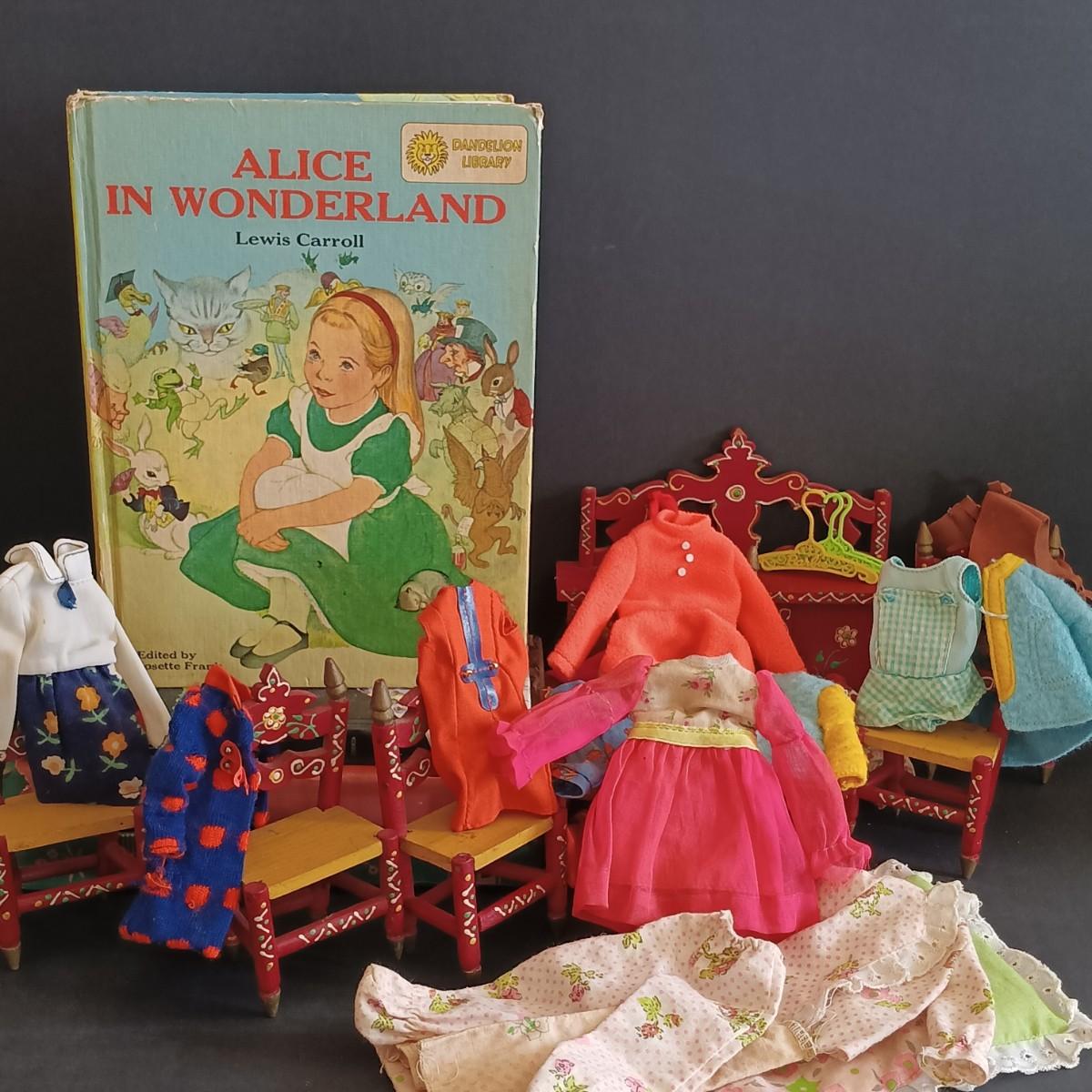 LOT 271: Vintage Skipper Barbie Clothes, Handpainted Wood Doll Furniture & Children's Books