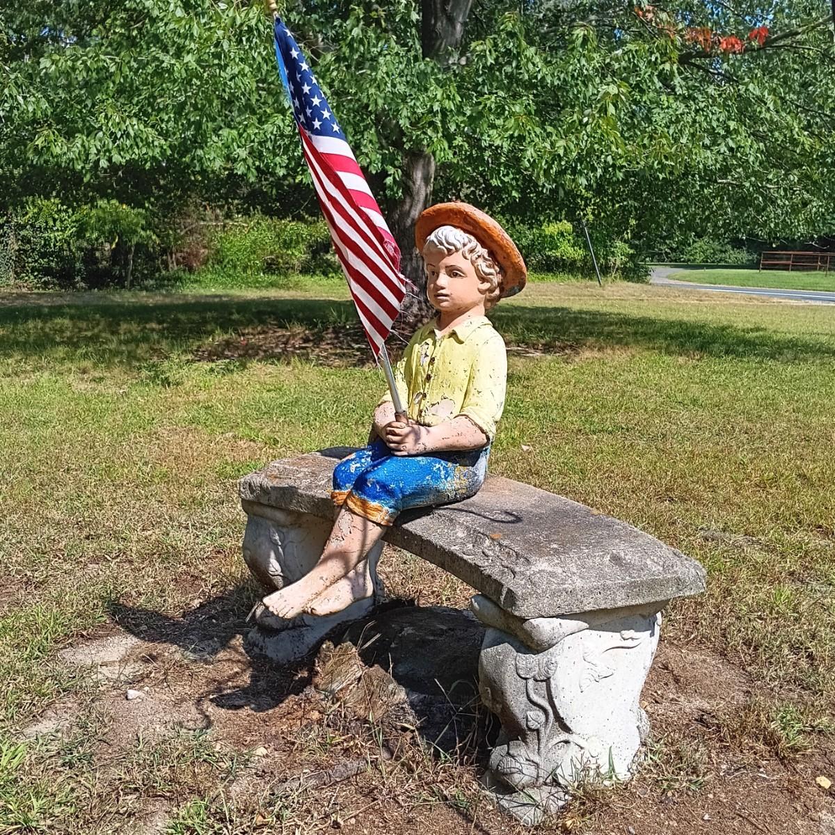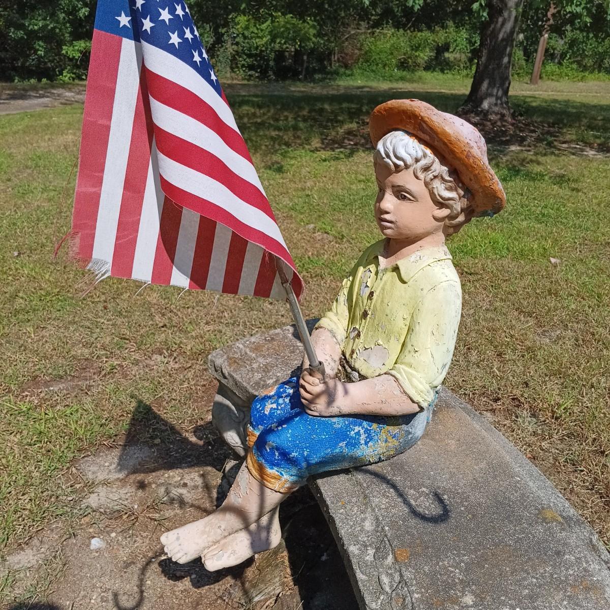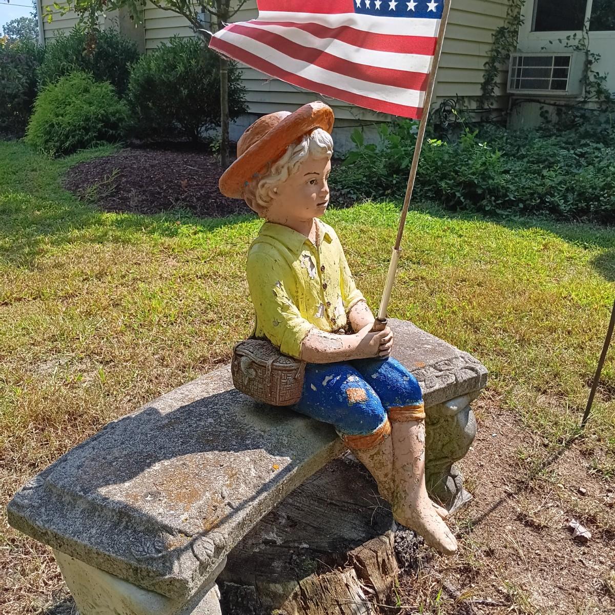 LOT 273: Painted Concrete Fishing Boy Statue with Concrete Bench