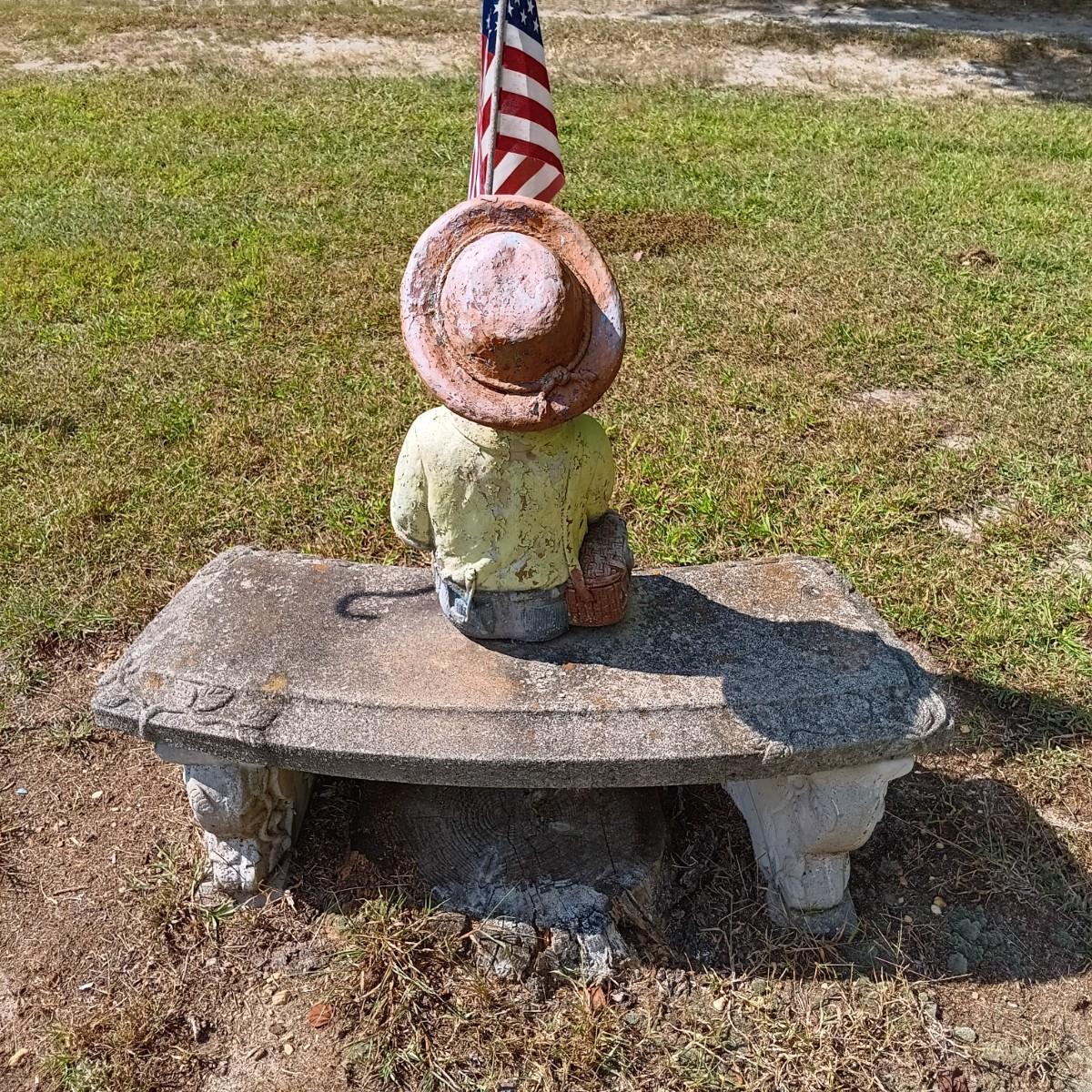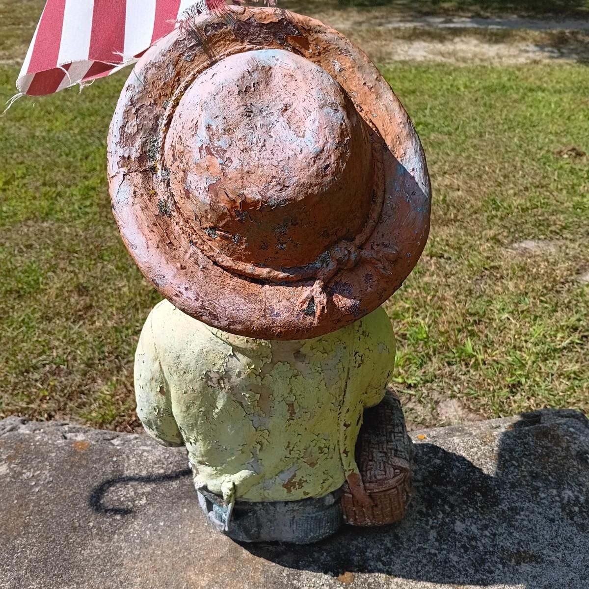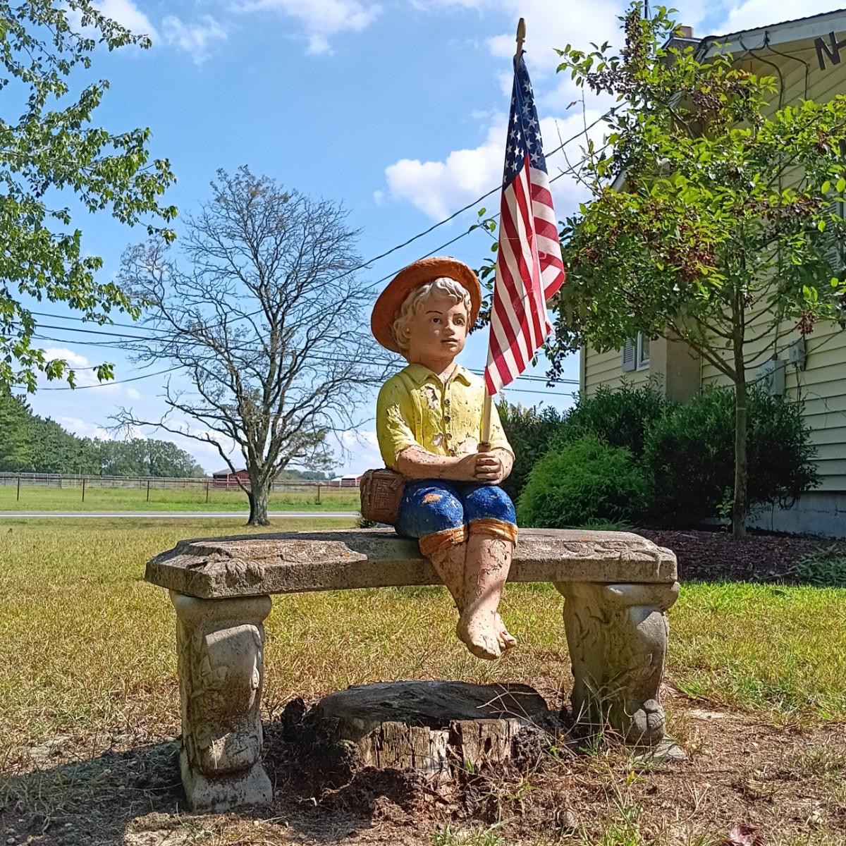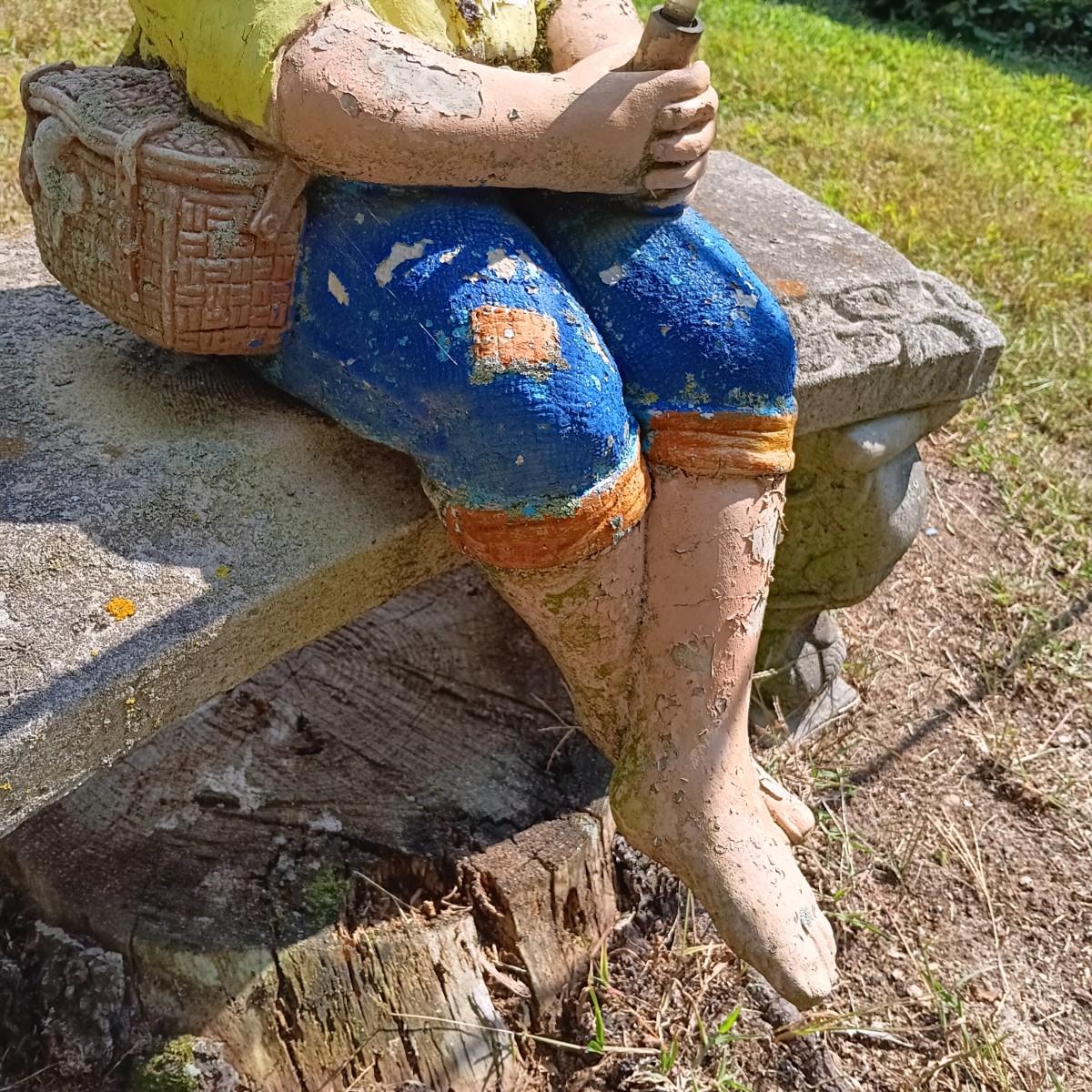 LOT 273: Painted Concrete Fishing Boy Statue with Concrete Bench