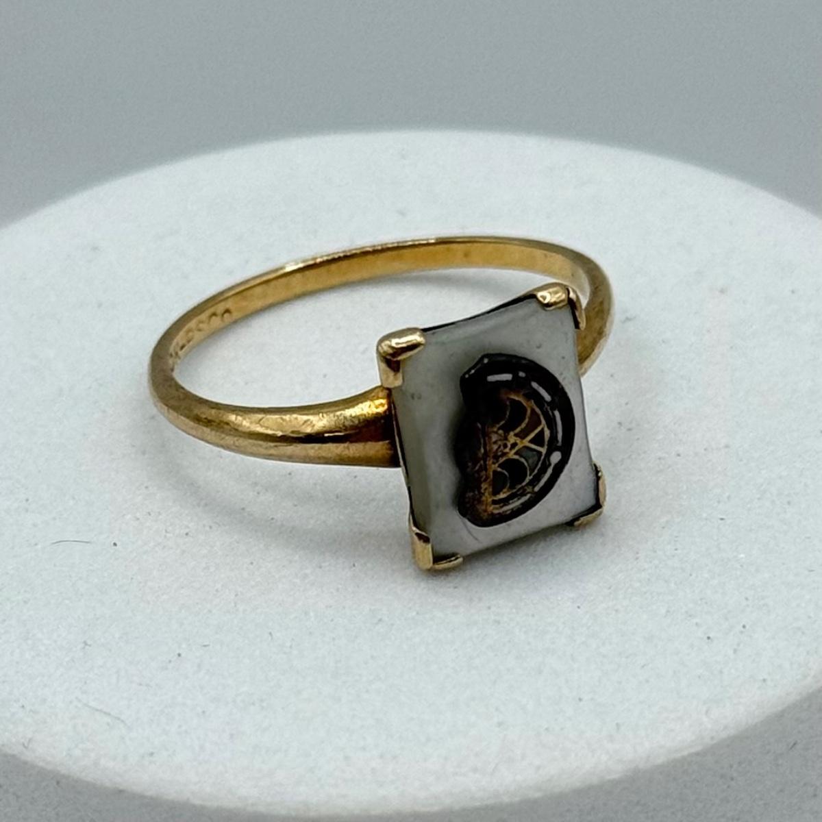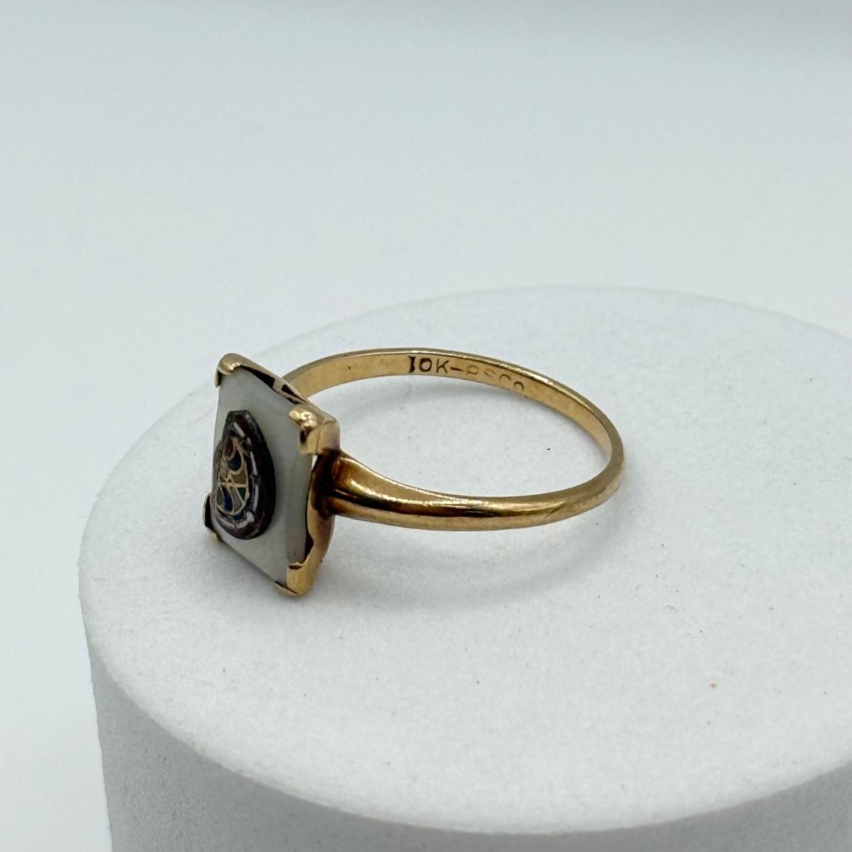 LOT 4: 10k Gold PSCO Mother of Pearl Freemason Rainbow Girls Size 7.5 Ring (1.87g)