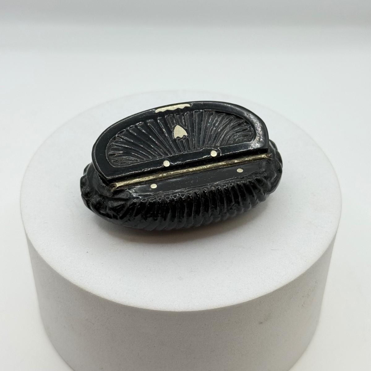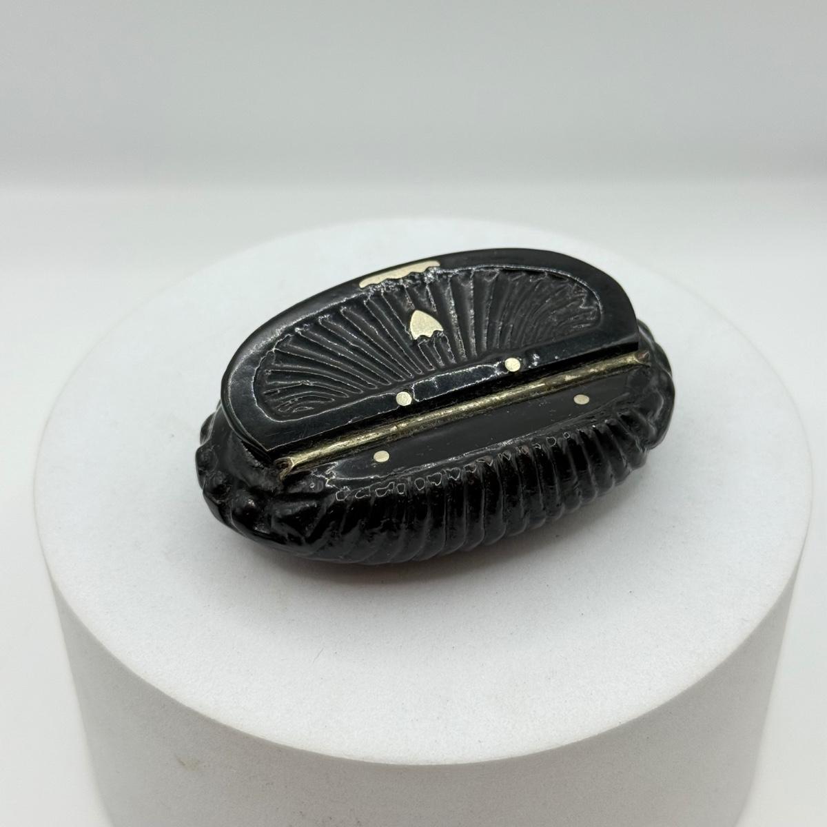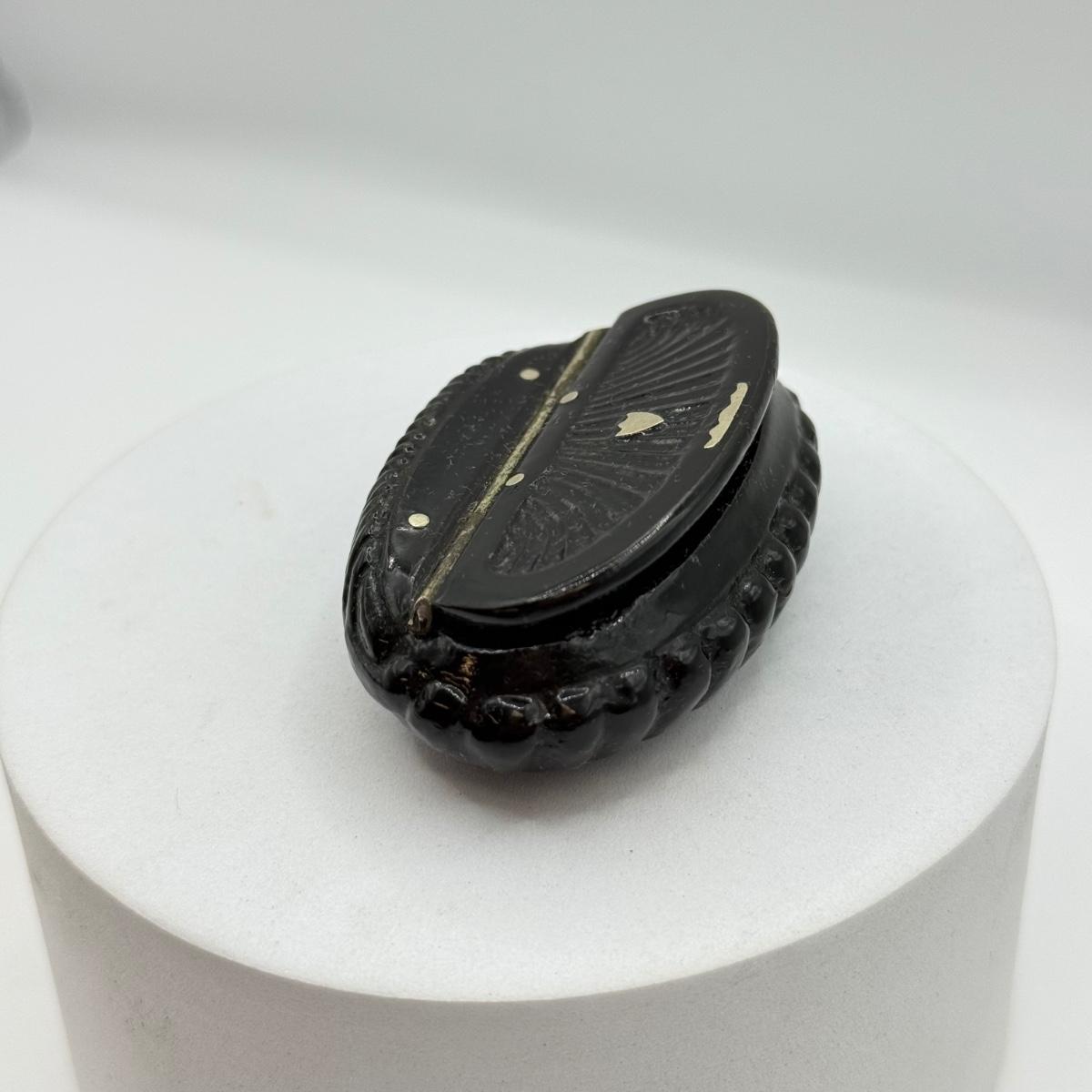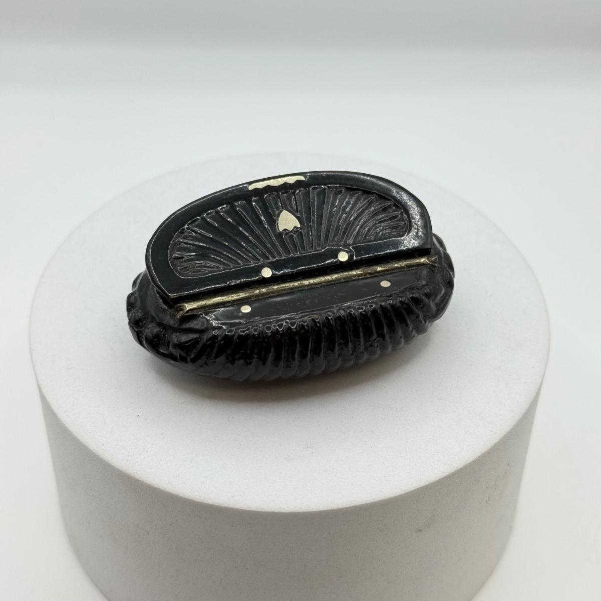 LOT 11: Antique French Papier/Paper Maché Lacquer Scalloped Shell Snuff Box