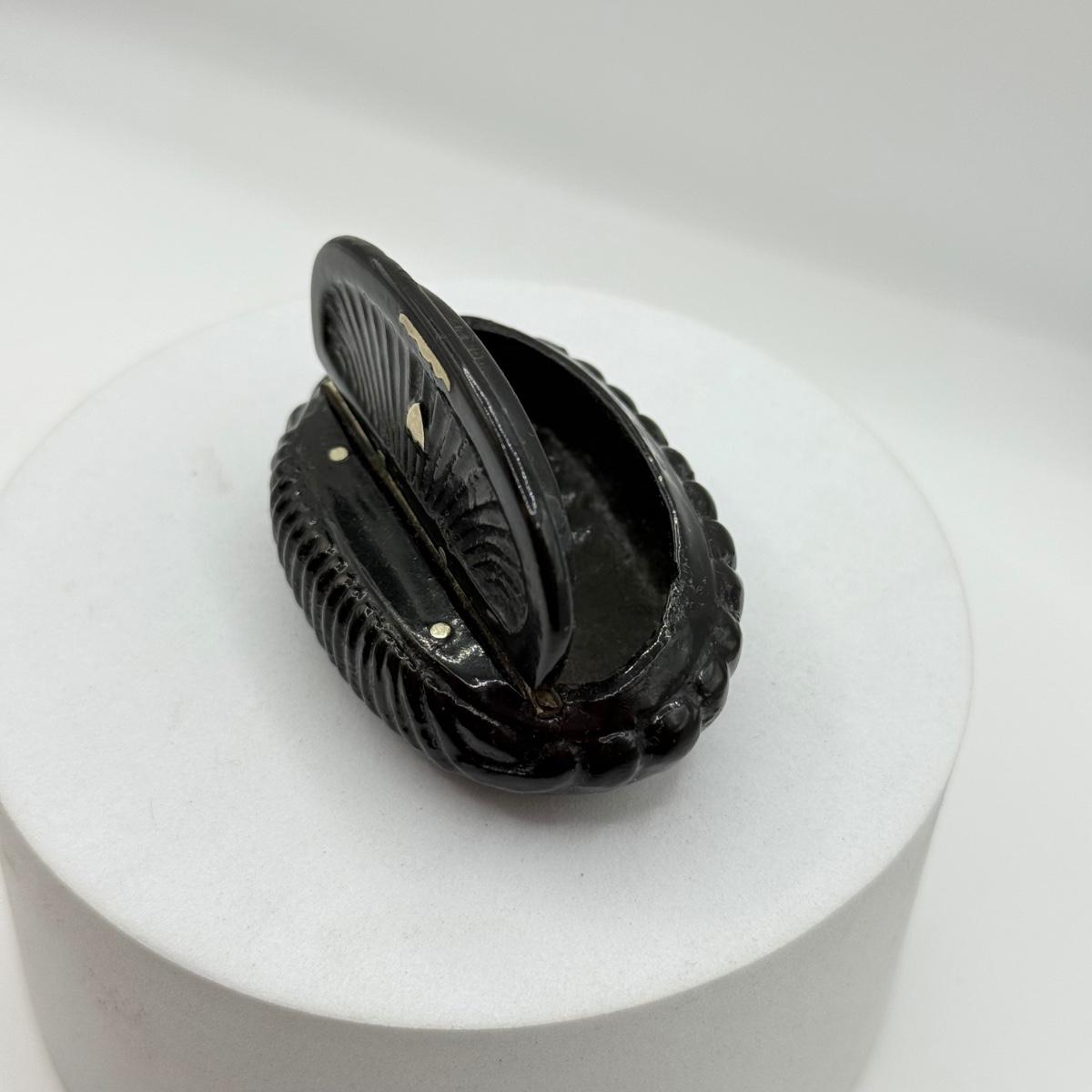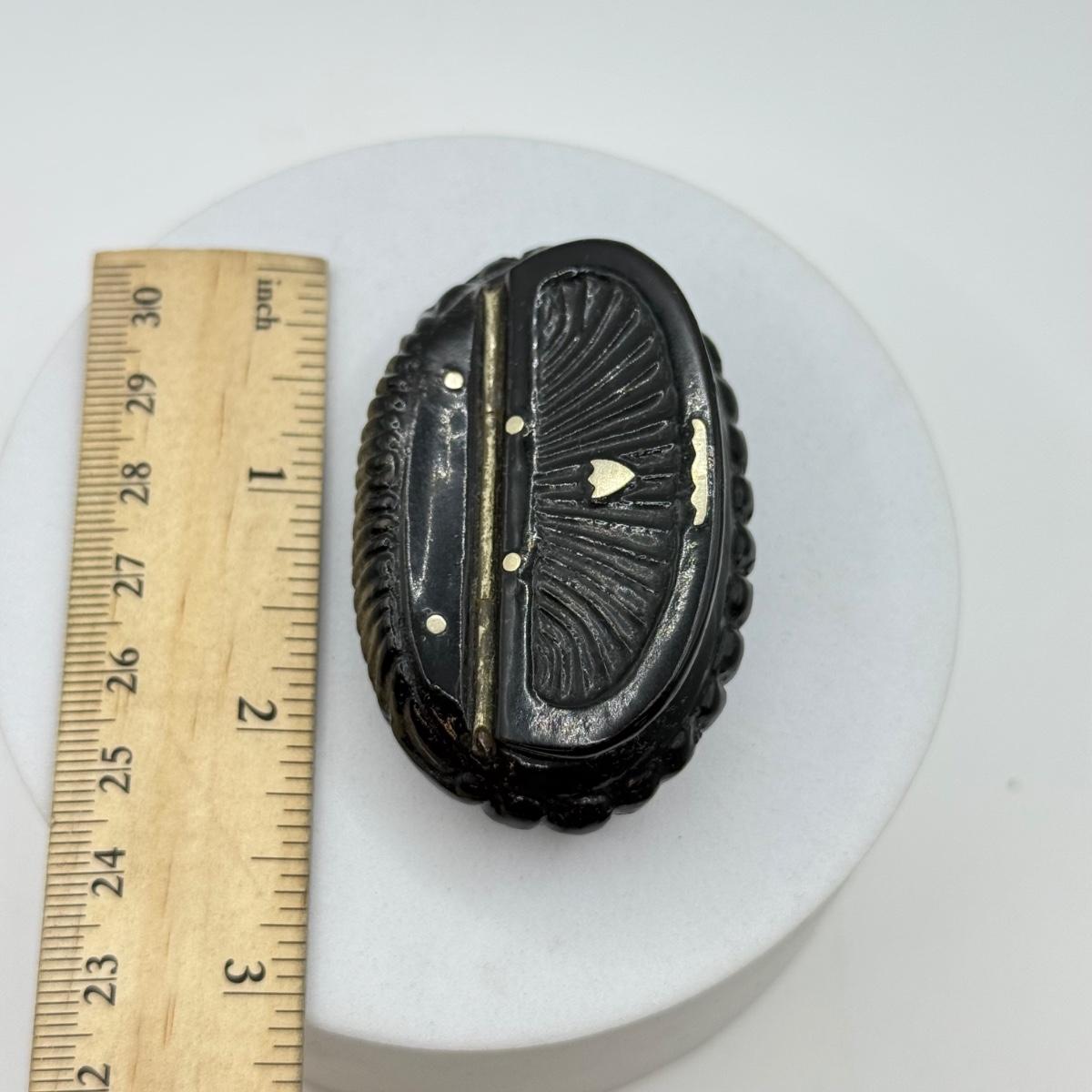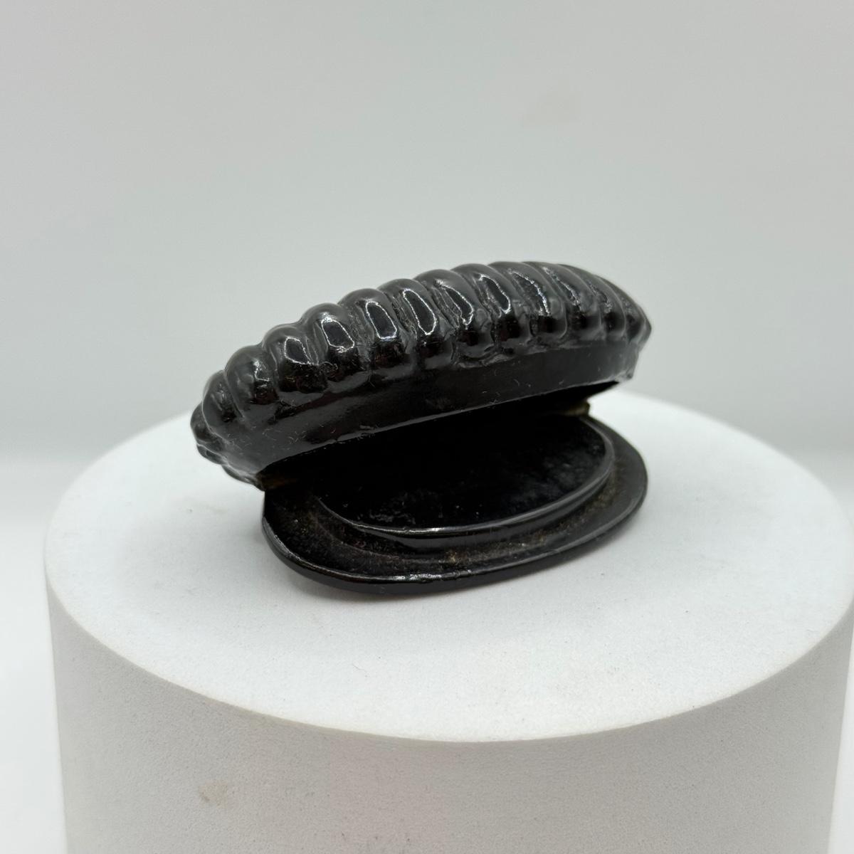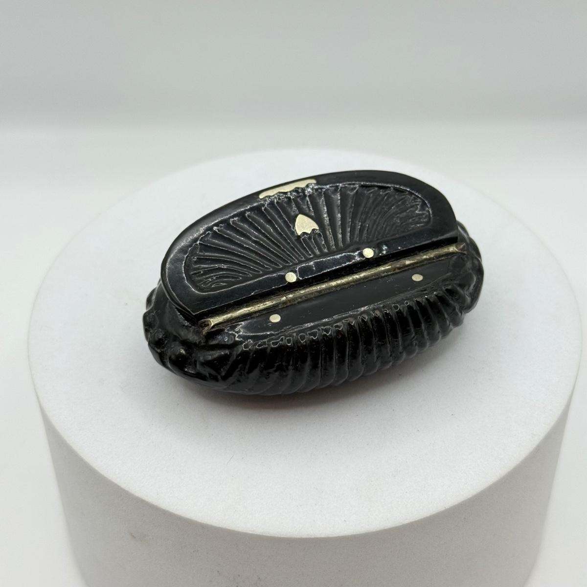 LOT 11: Antique French Papier/Paper Maché Lacquer Scalloped Shell Snuff Box