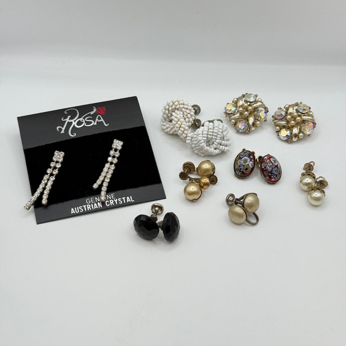 LOT 13: Rosa Austrian Crystal Chip NIP & Collection of Screwback & Clippn Earrings
