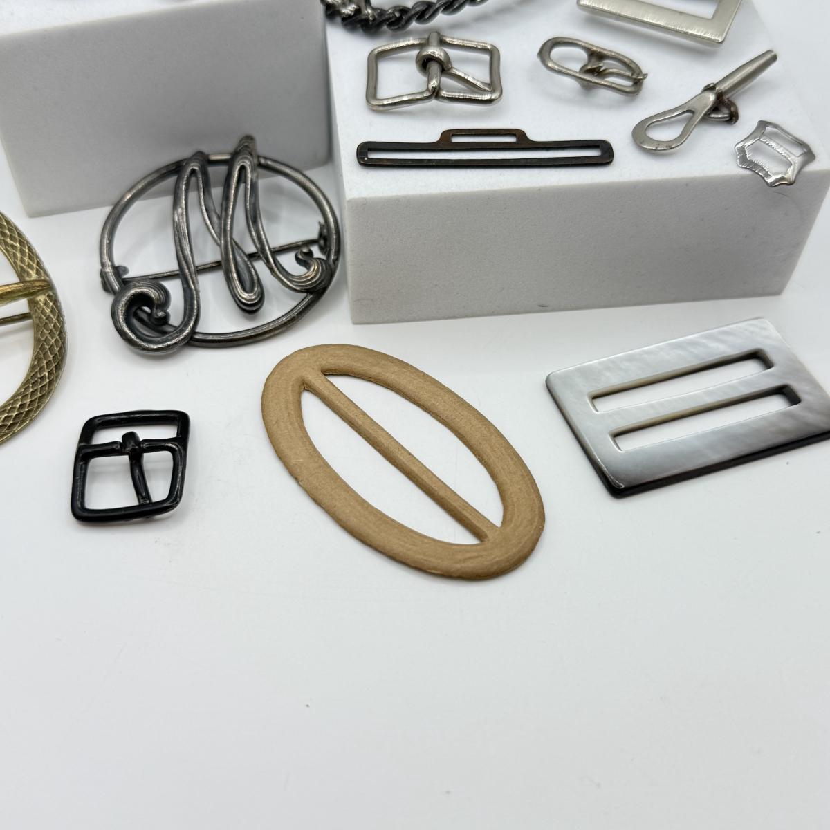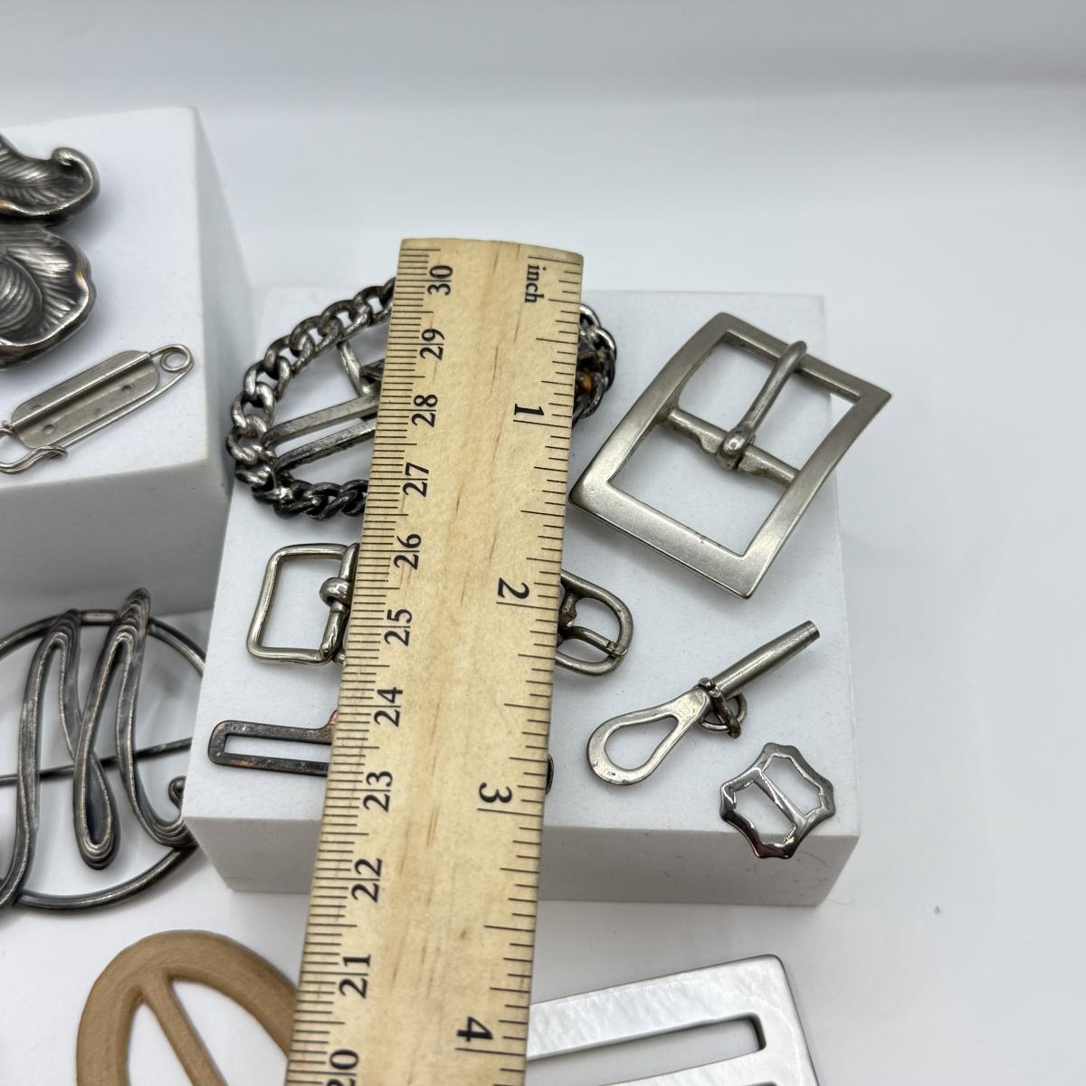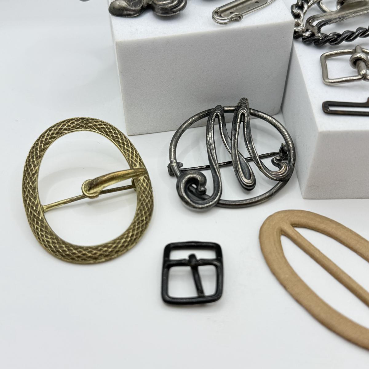 LOT 15: Antique Silvertone Brooches w/ Collection of Various Buckles