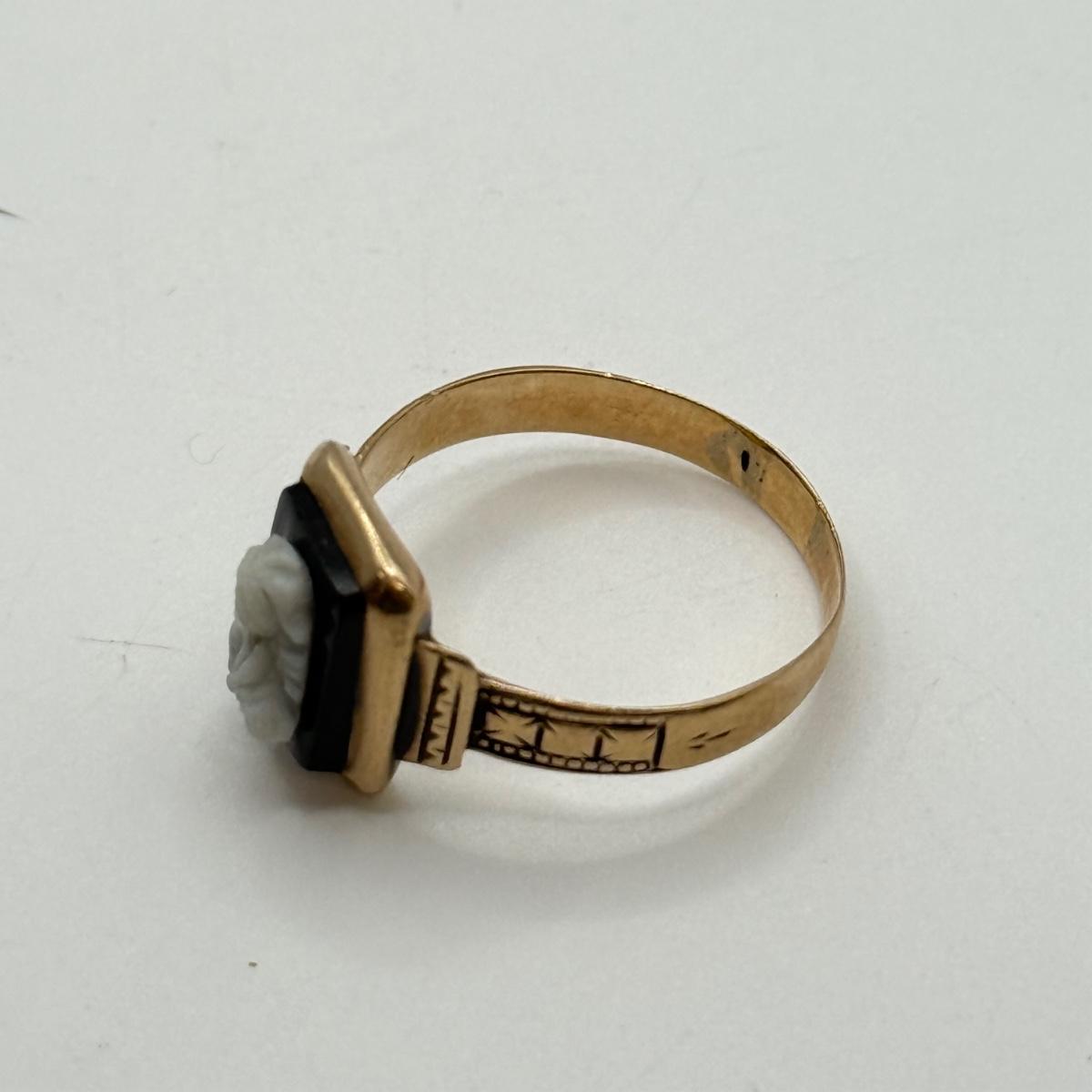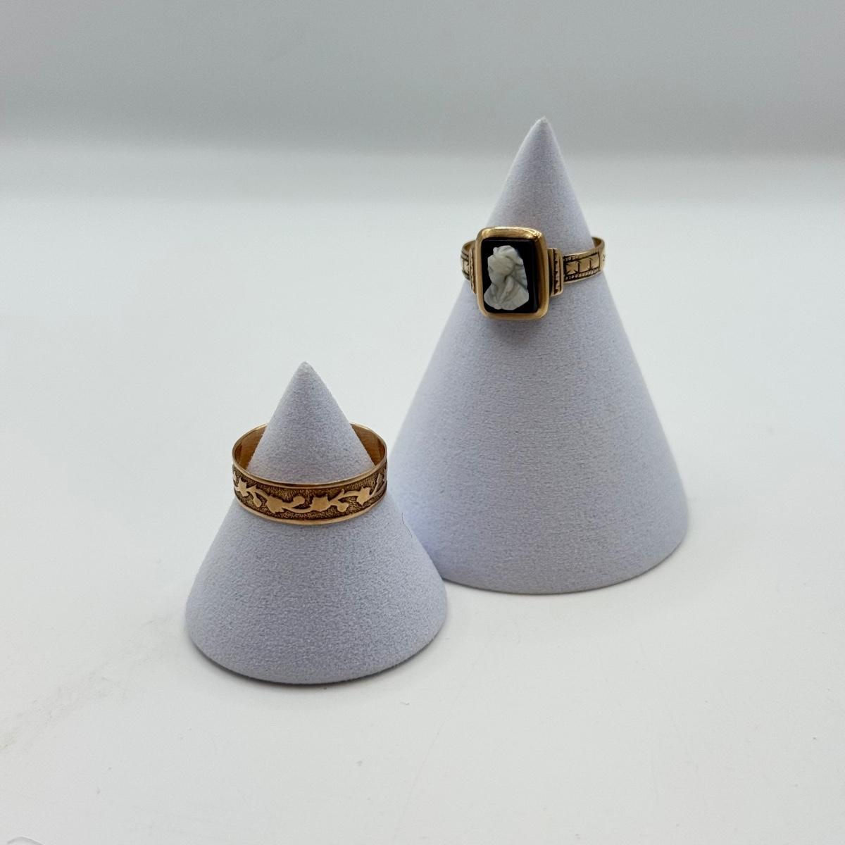 LOT 16: Antique 10k Gold Rings: Cameo (size 5.5) & Band (size 5) - acid tested (3.12gtw)