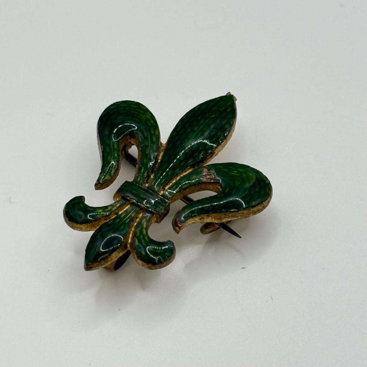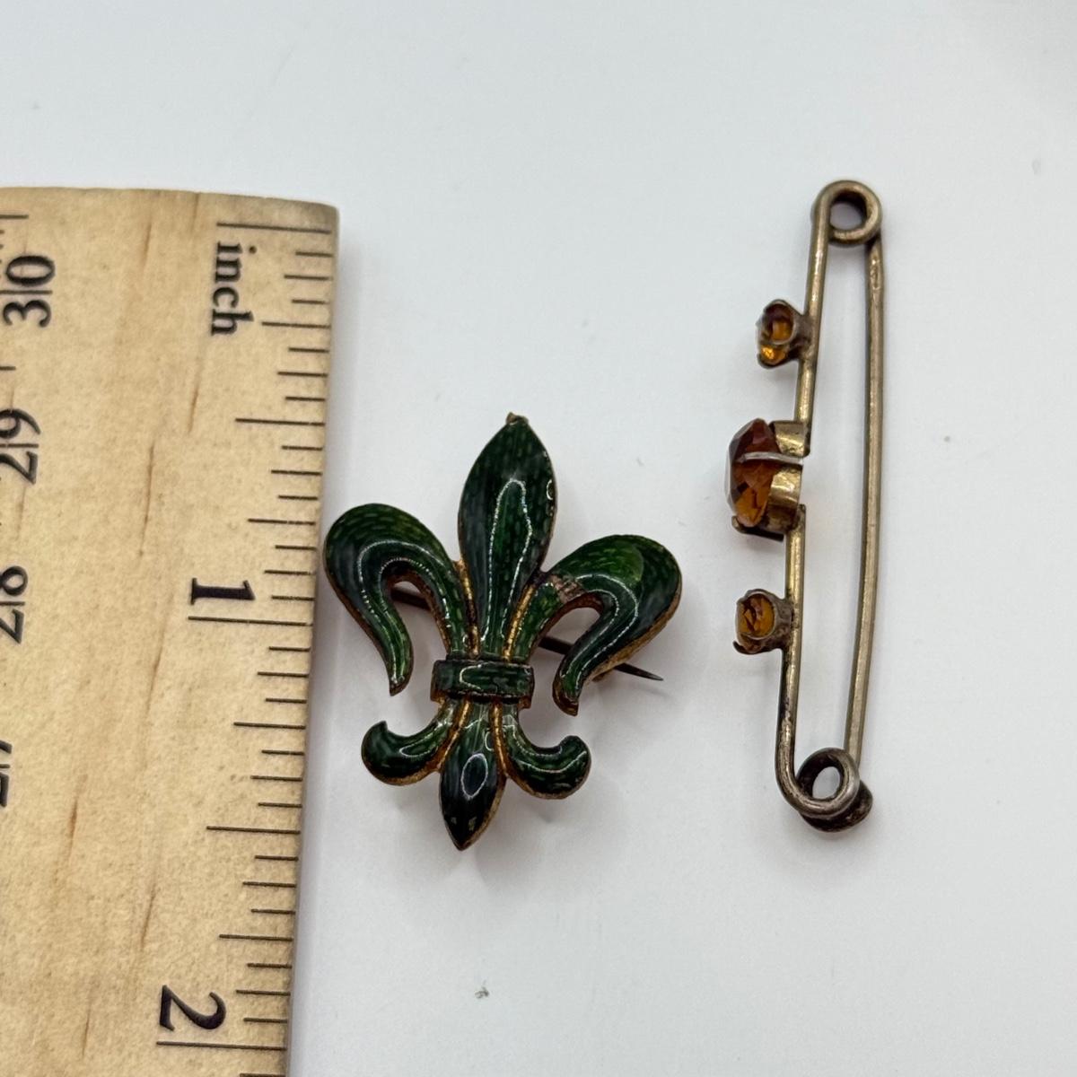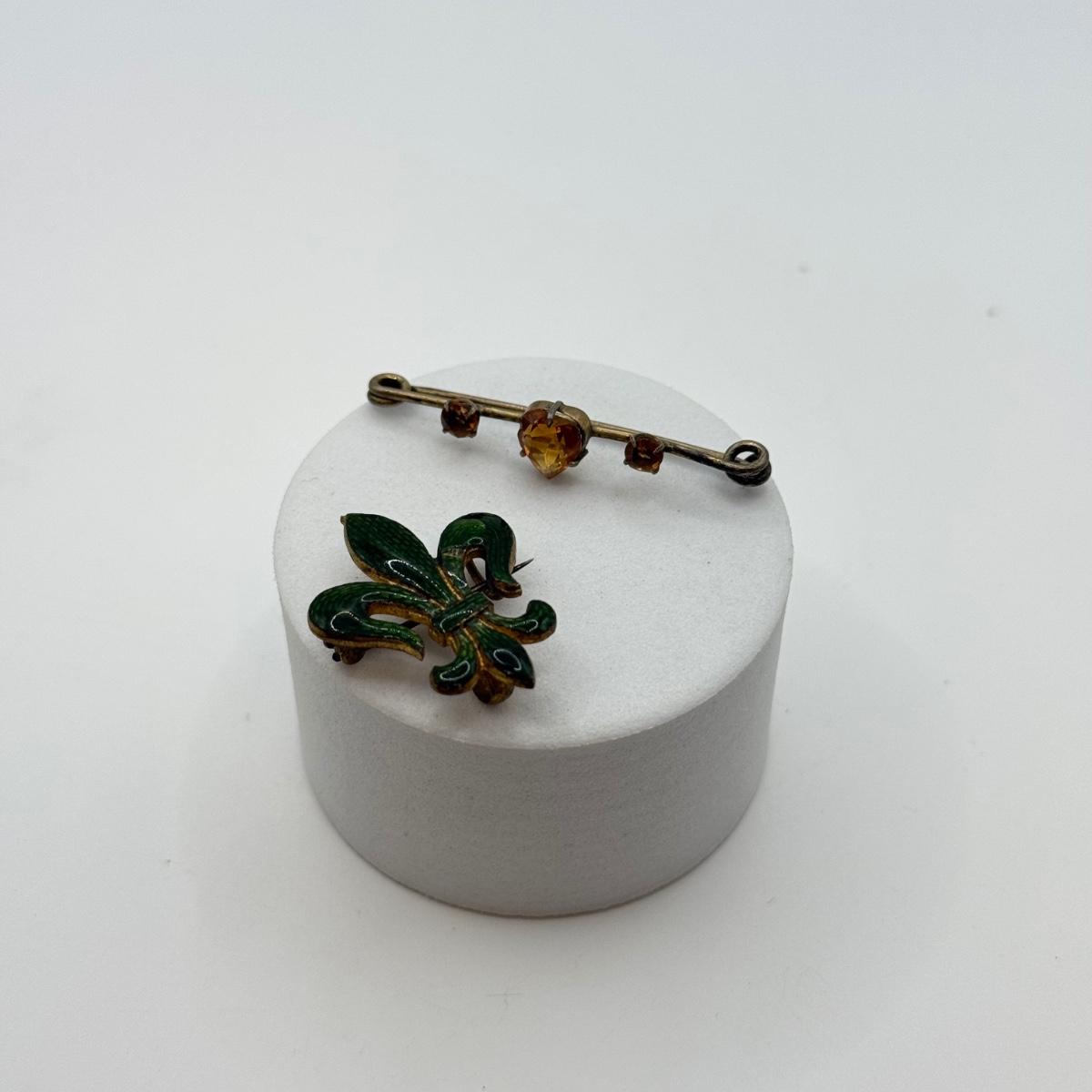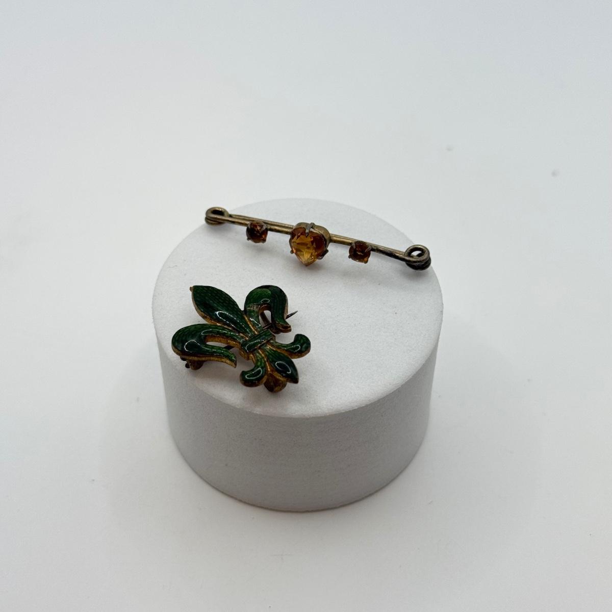 LOT 23: Antique Green Enamel Fluer de Lis Watch Pin & 925 Gemstone Pin