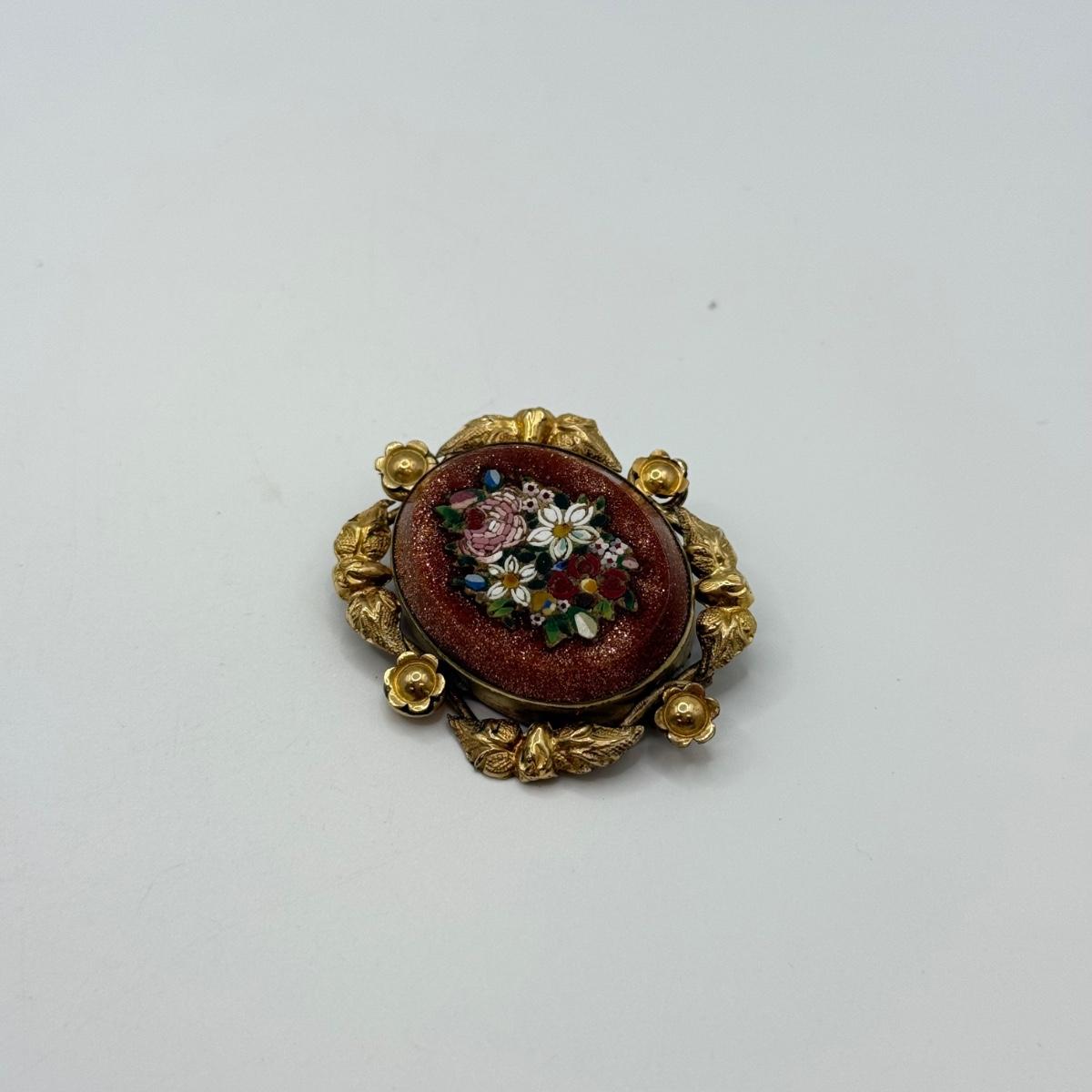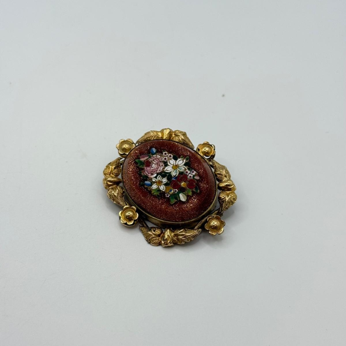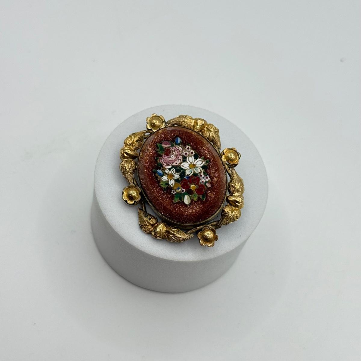 LOT 31: Antique Micro Mosaic Pierre Dura Goldstone Gold Filled Floral Brooch