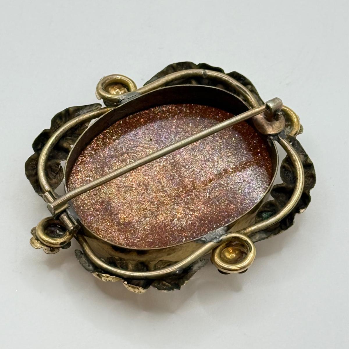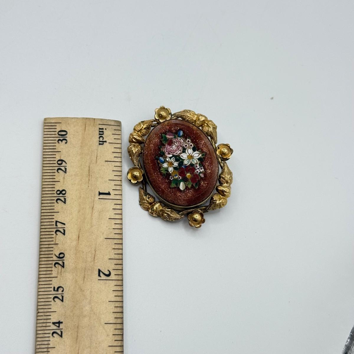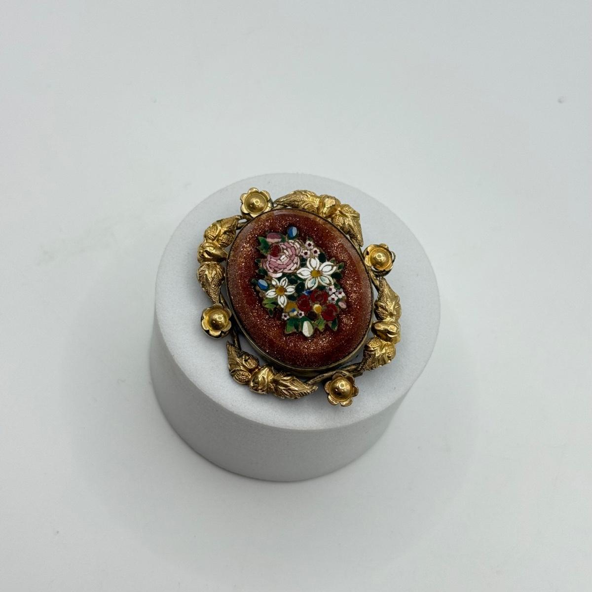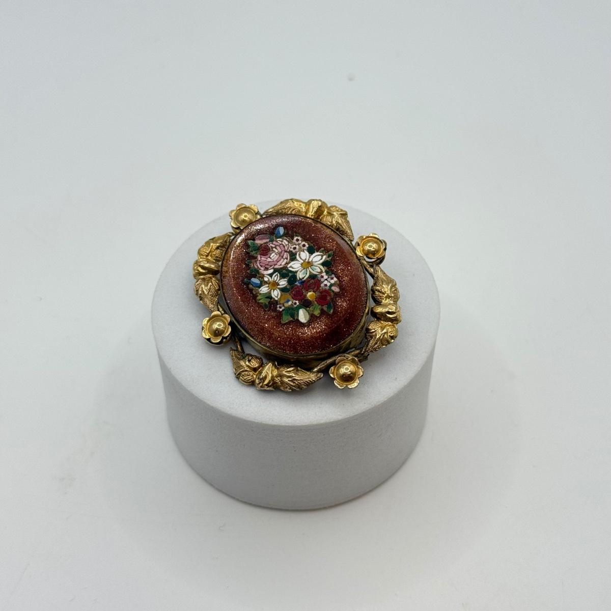 LOT 31: Antique Micro Mosaic Pierre Dura Goldstone Gold Filled Floral Brooch