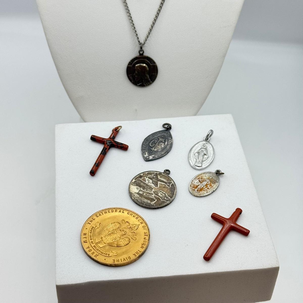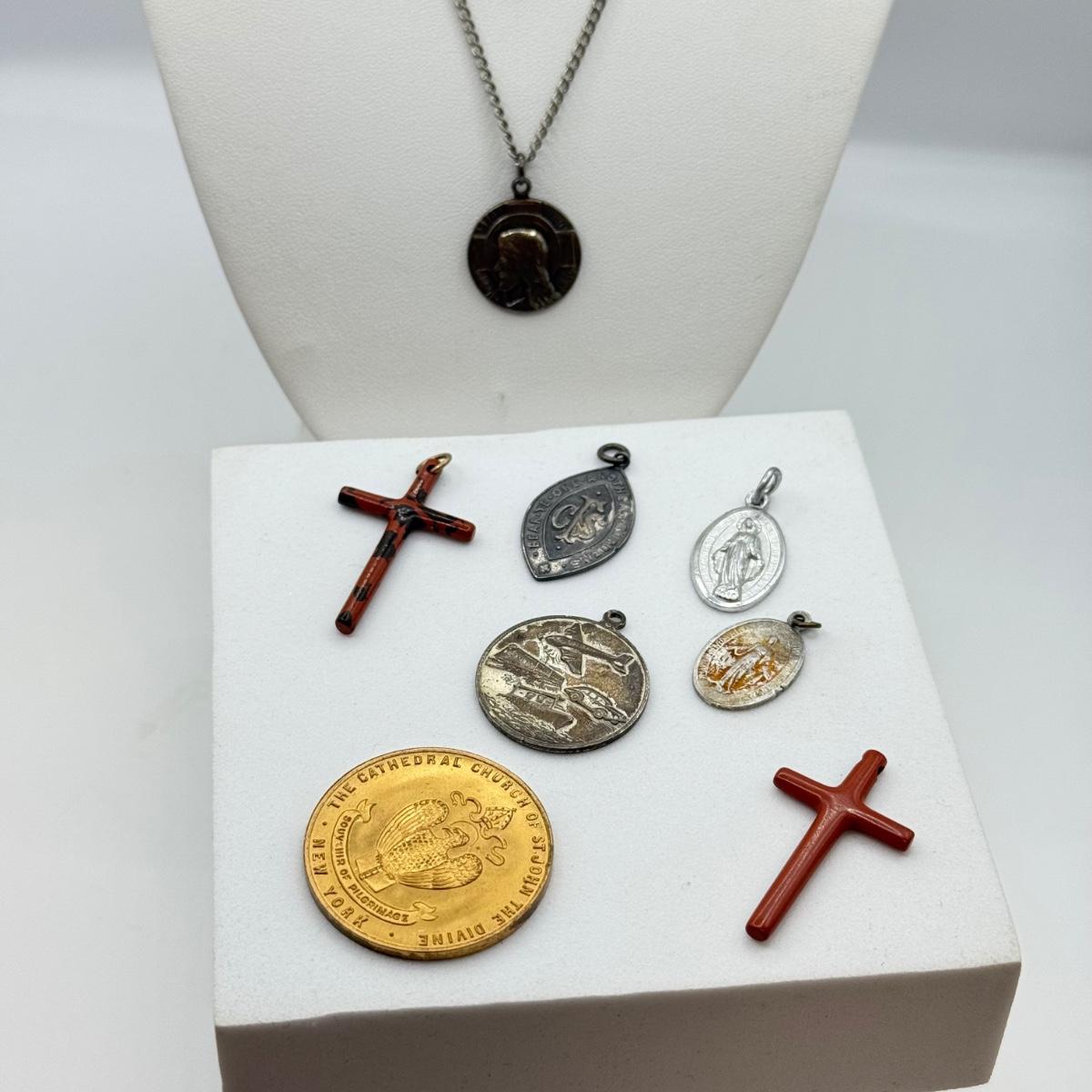 LOT 34: Collection of Religious Pendants- Sterling Methodist Medal and more