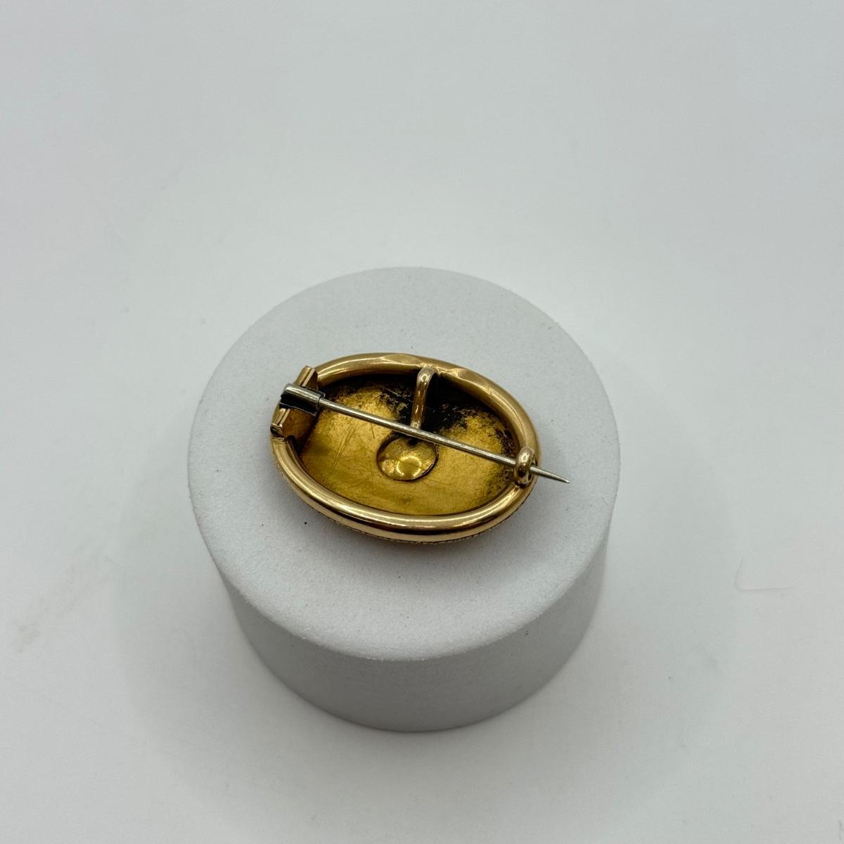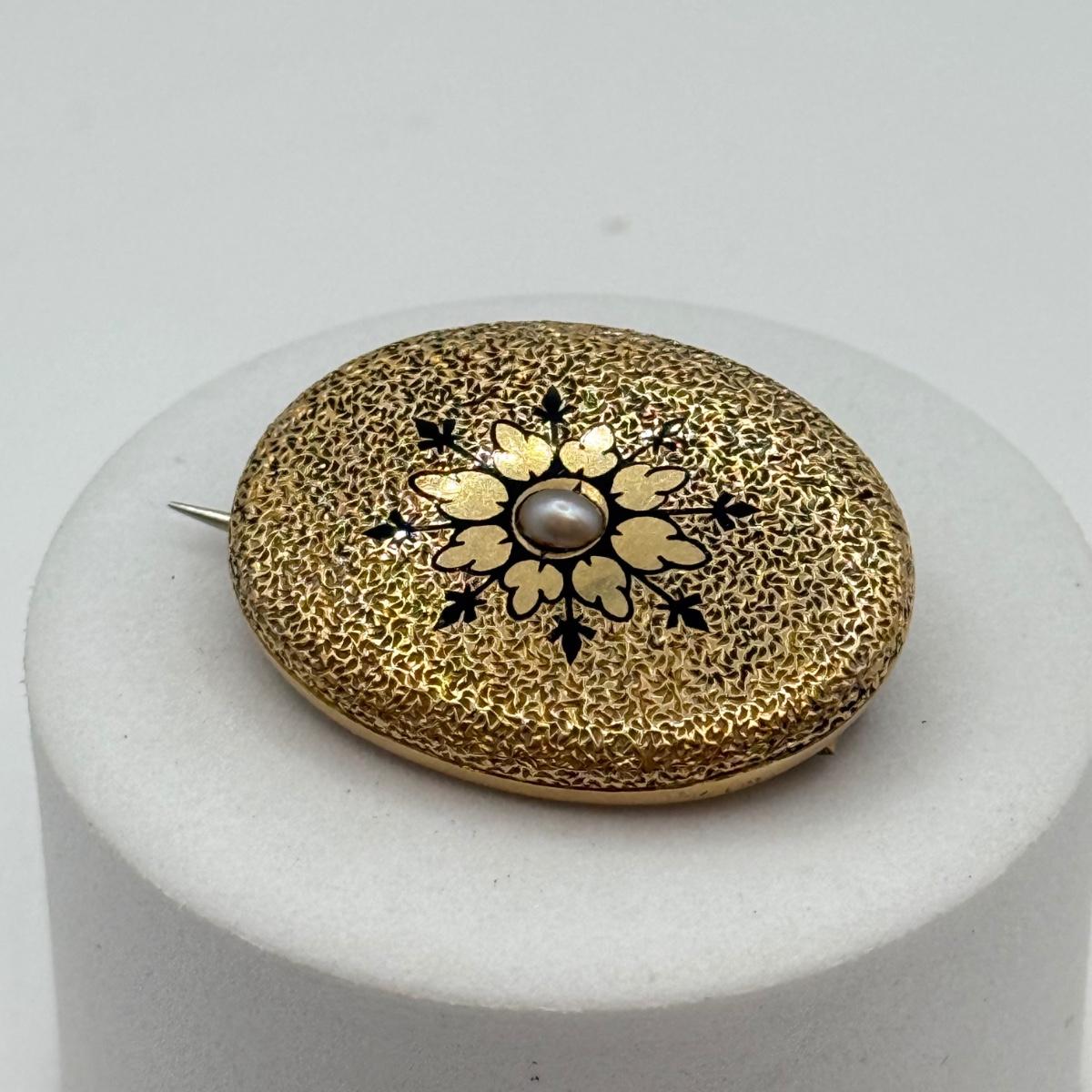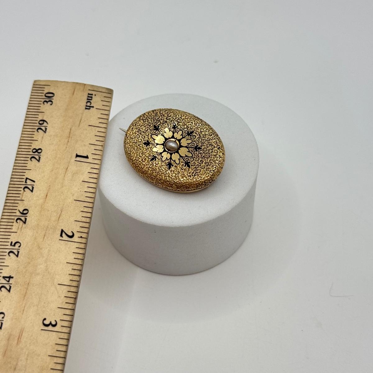 LOT 36: Antique Victorian 14k Gold Black Enamel Brooch/Pendant w/ Pearl Center (5.86gtw)