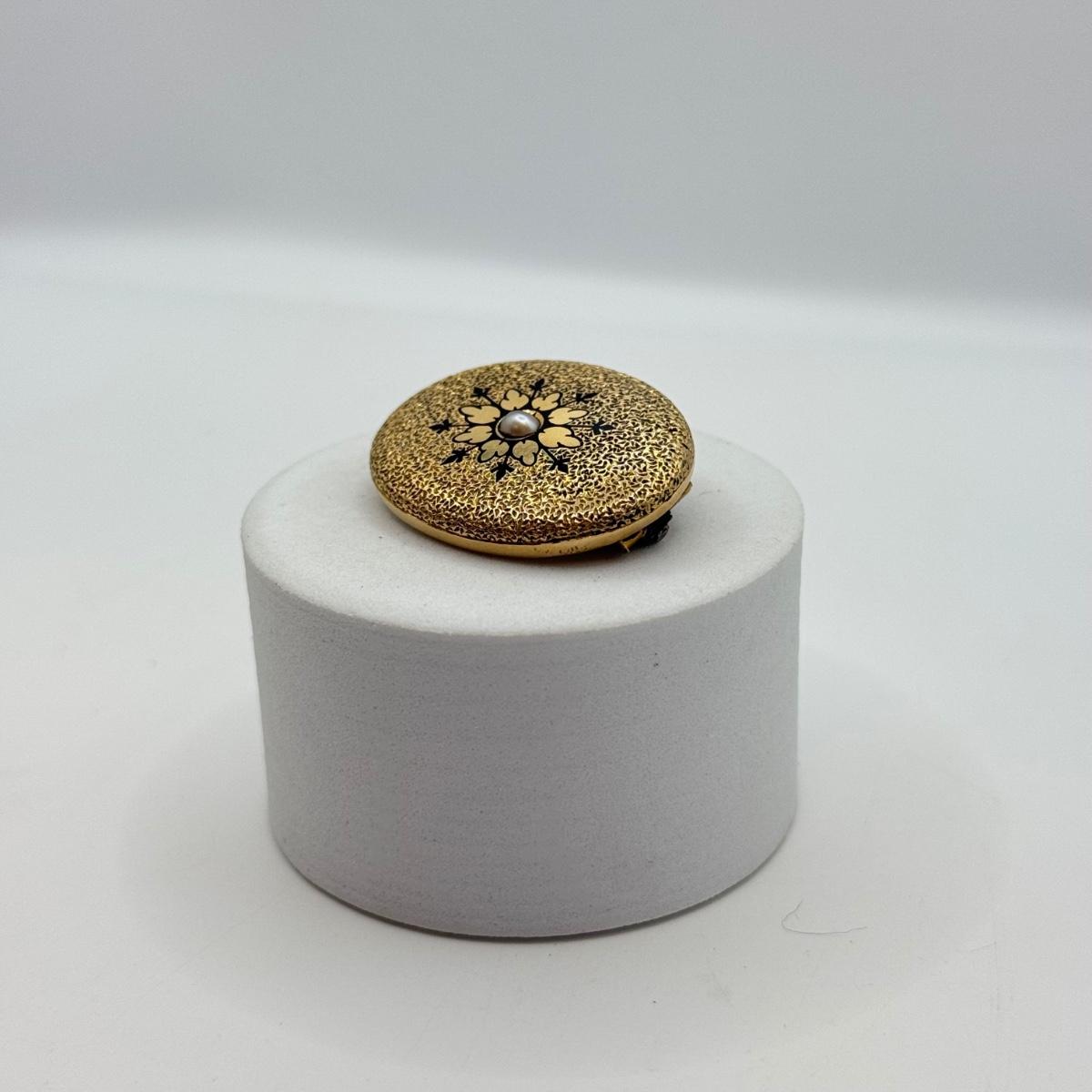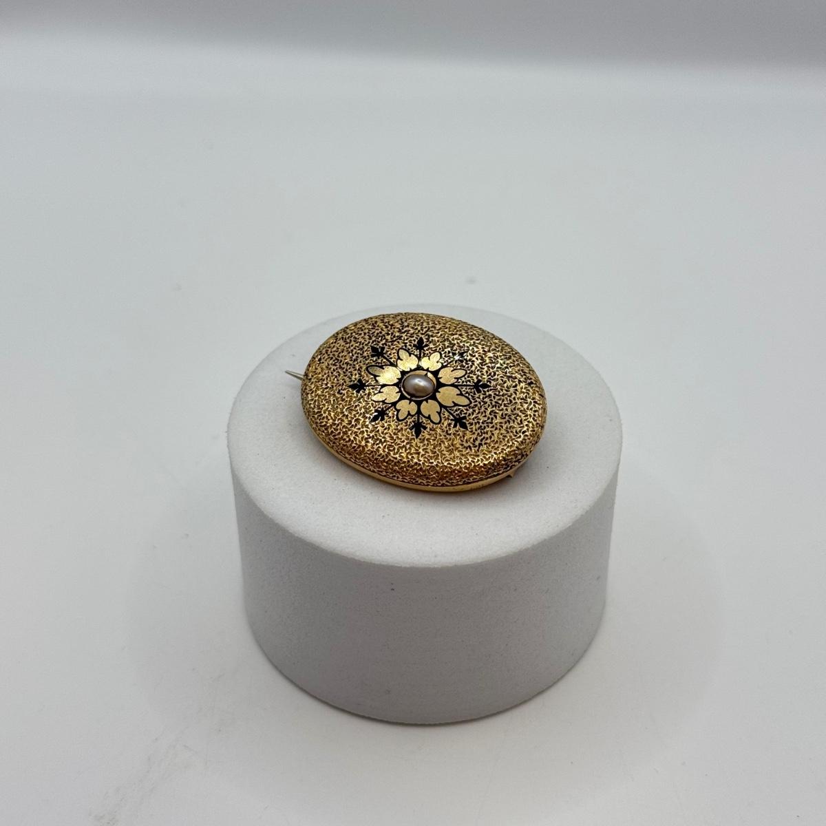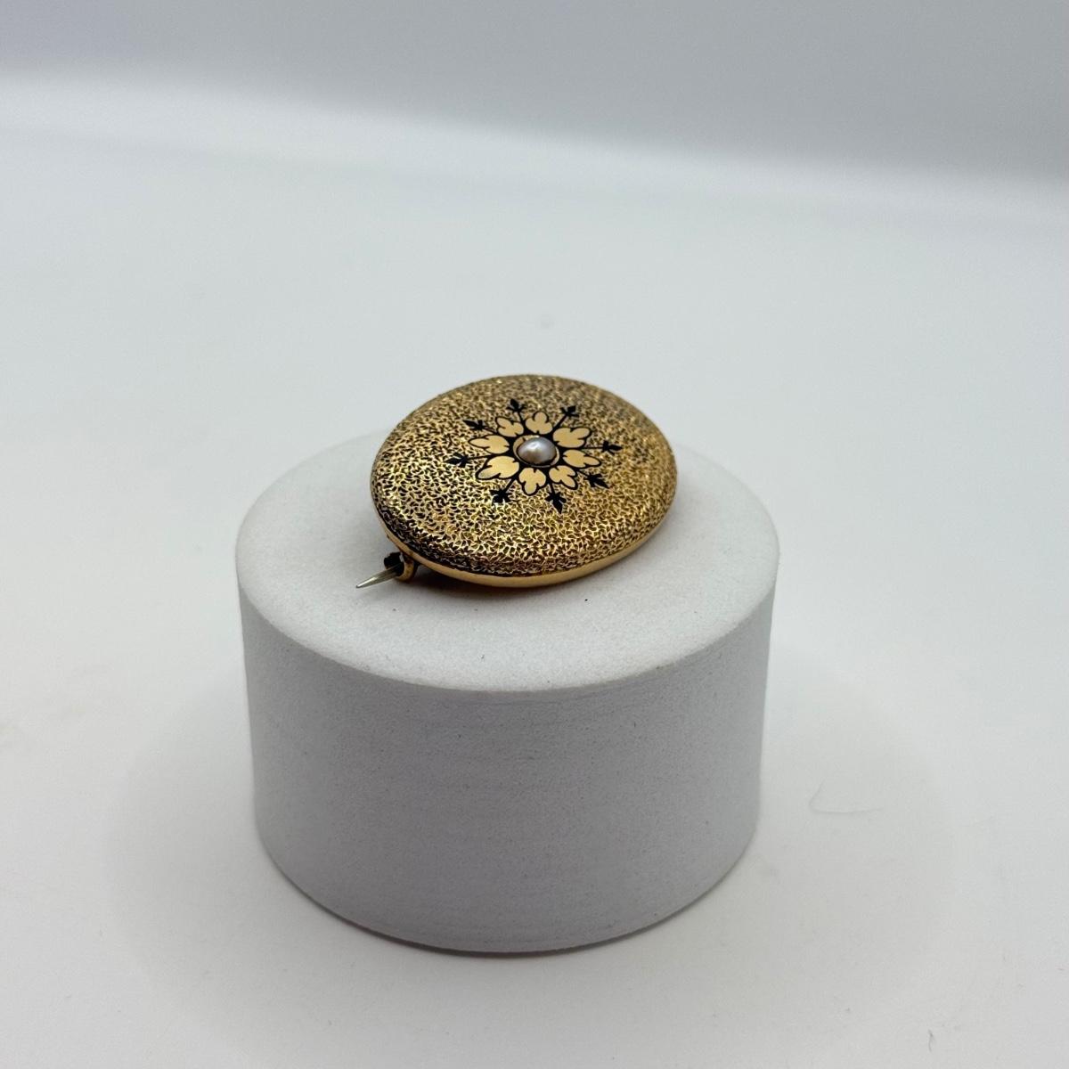 LOT 36: Antique Victorian 14k Gold Black Enamel Brooch/Pendant w/ Pearl Center (5.86gtw)