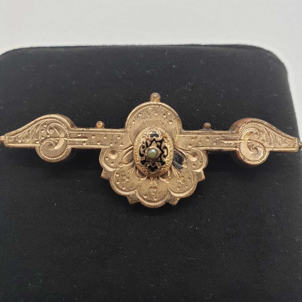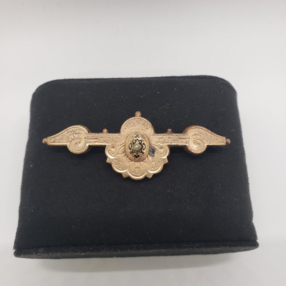 LOT 44: Victorian Bar Brooch with Seed Pearl Center-Gold Filled