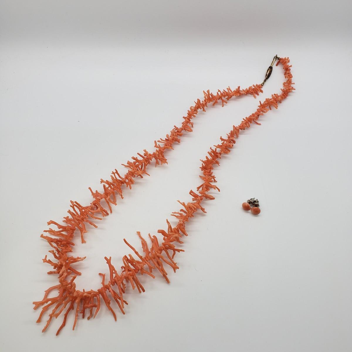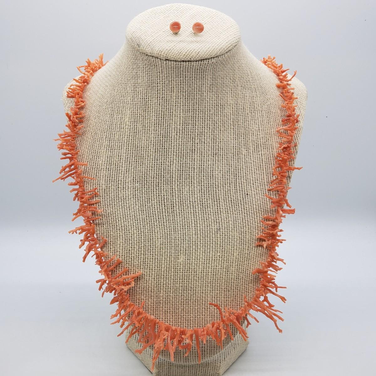 LOT 53: Branch Coral 24" Long Necklace & Pair of Coral Post Earrings