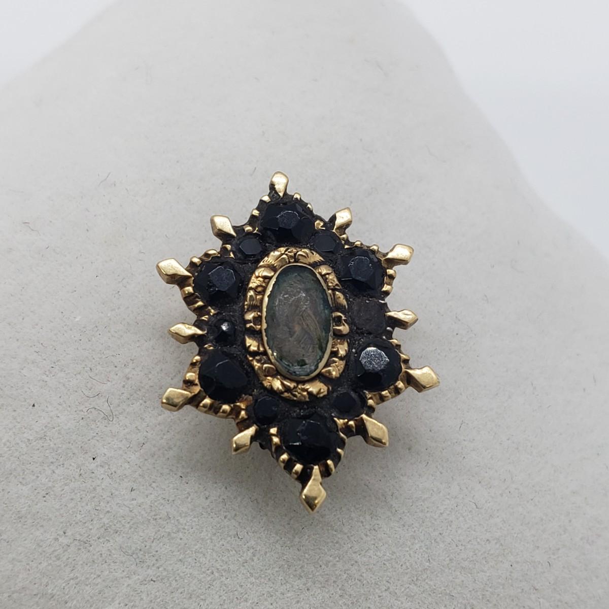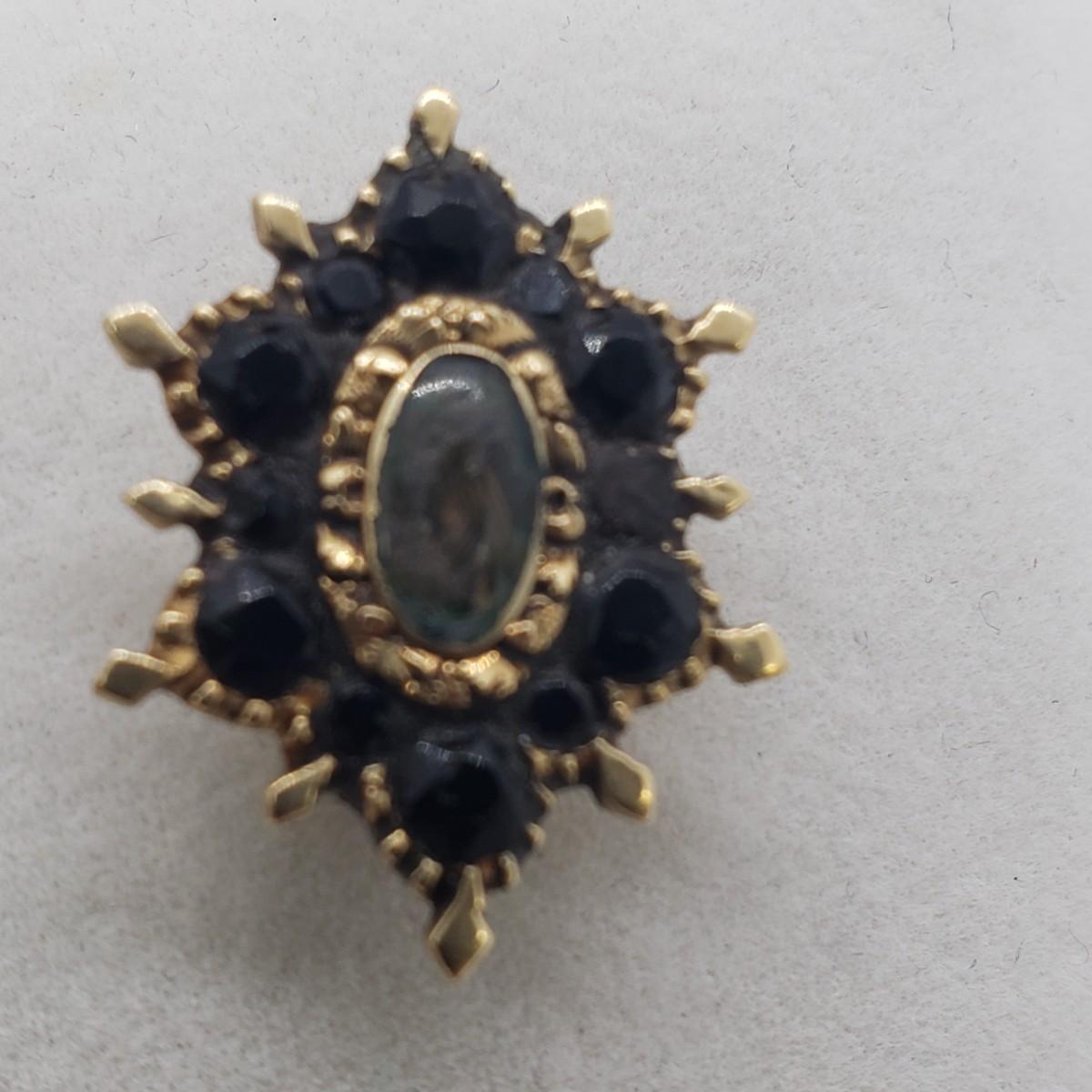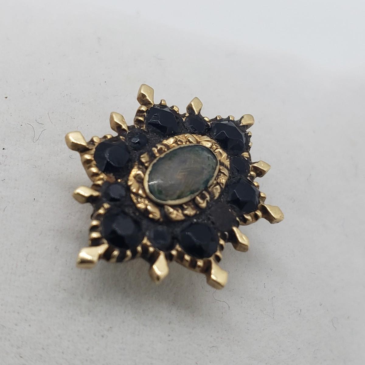 LOT 57: Antique 14k Collar Pin with Black Gems 2g
