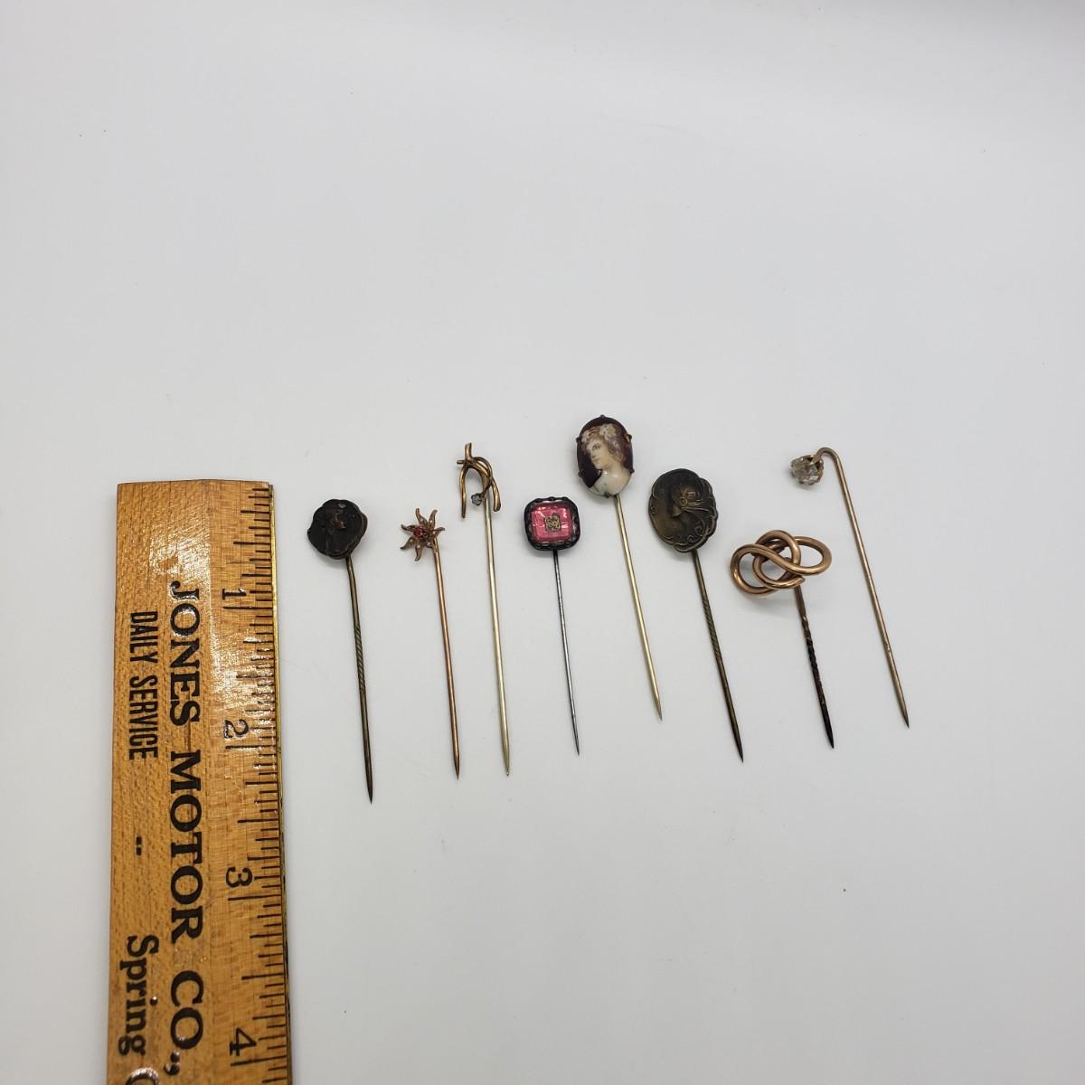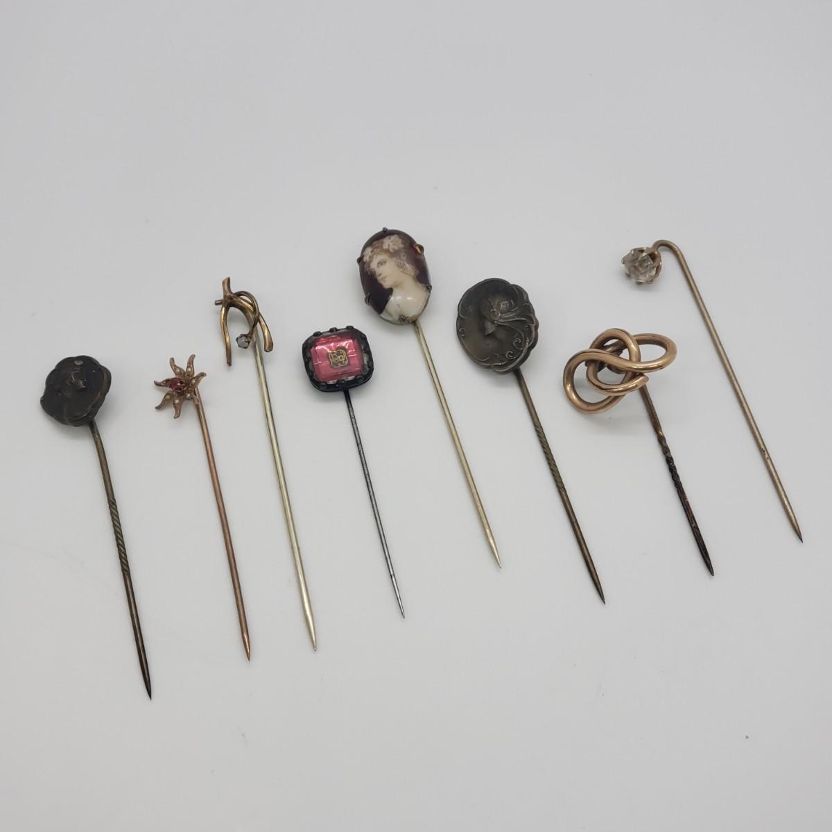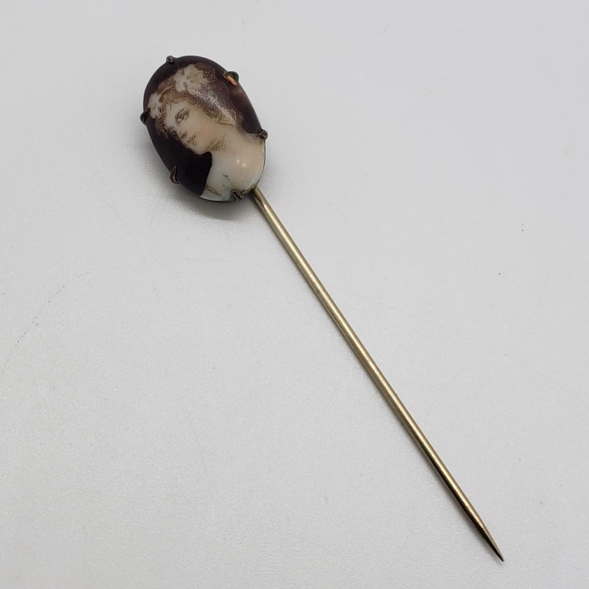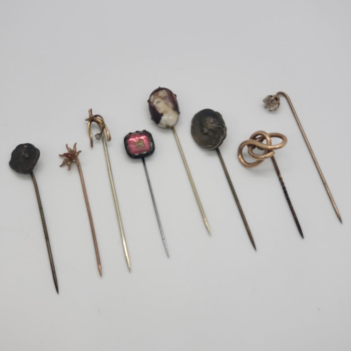 LOT 62: Assortment of Antique Stick Pins, Egyptian Revival, Porcelain Cameo, Art Nouveau & More