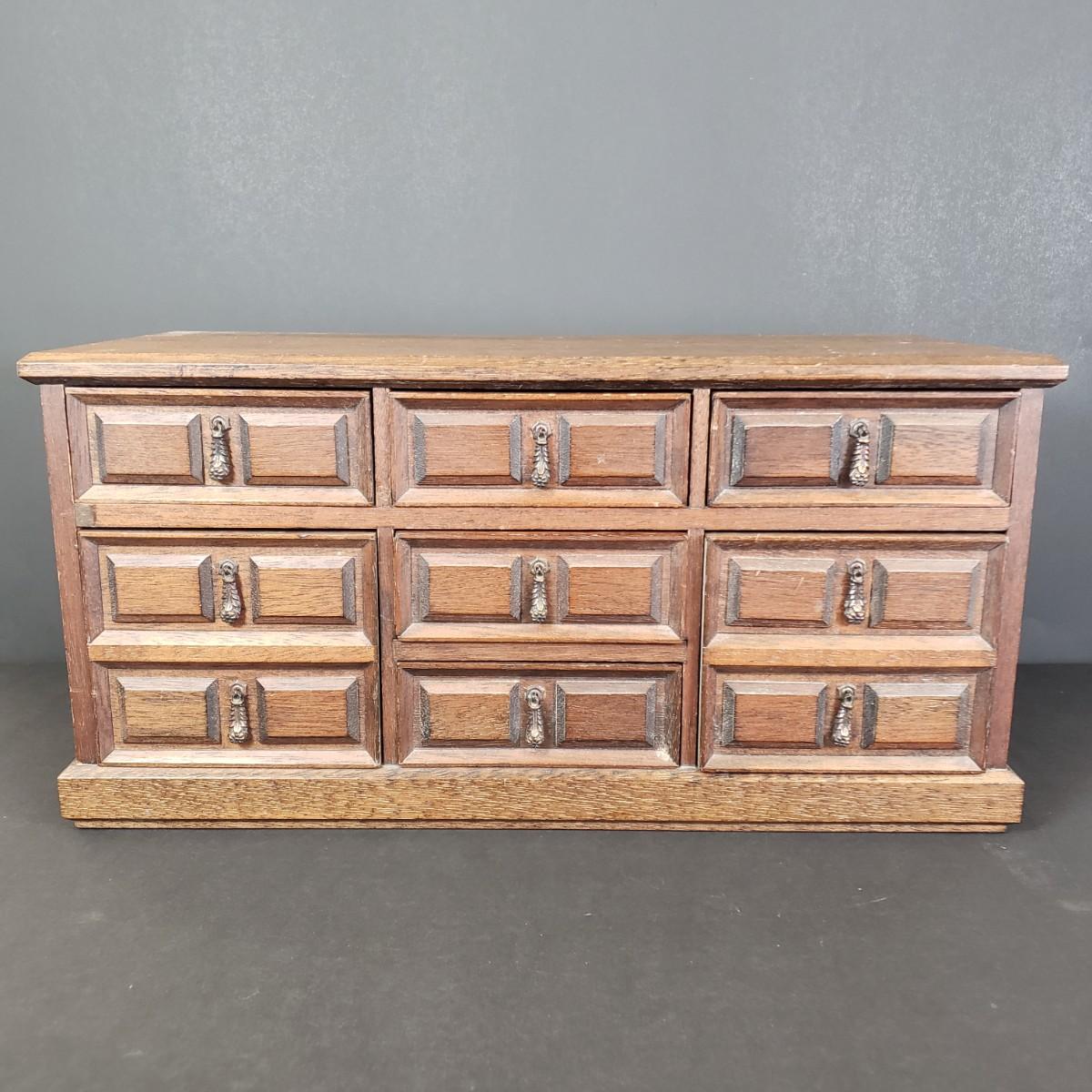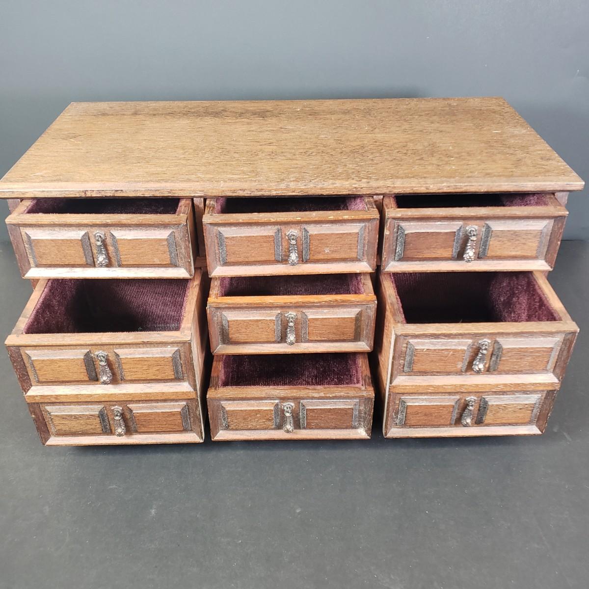 LOT 64: Vintage Wooden 7 Drawer Velvet Lined Jewelry Box by Mele