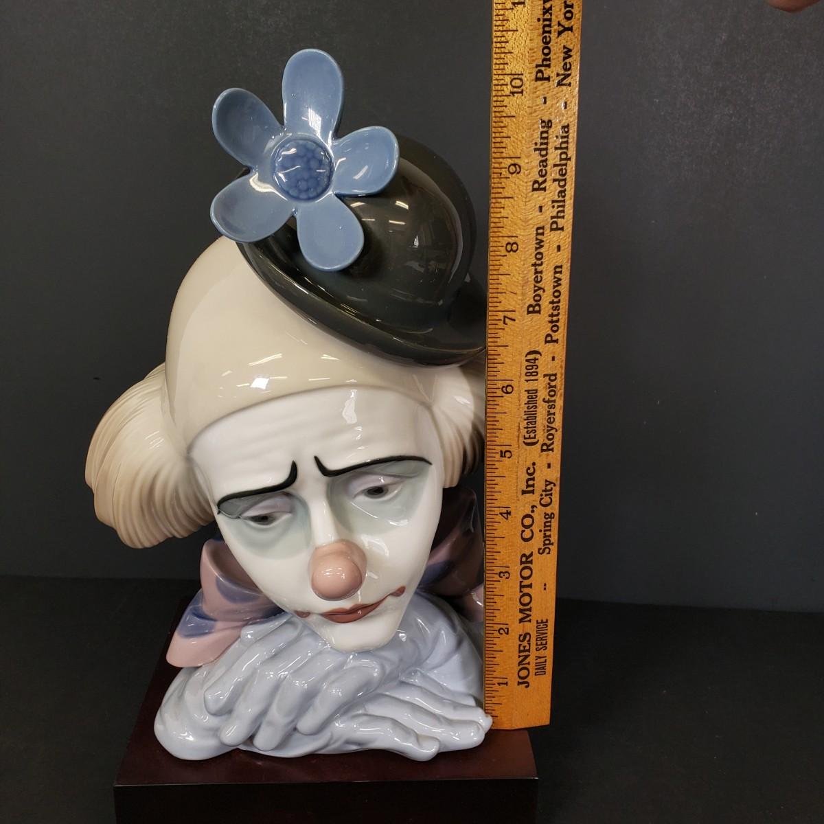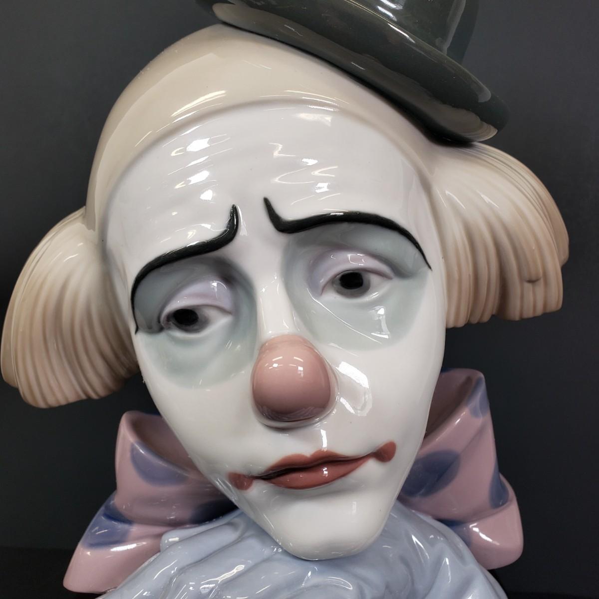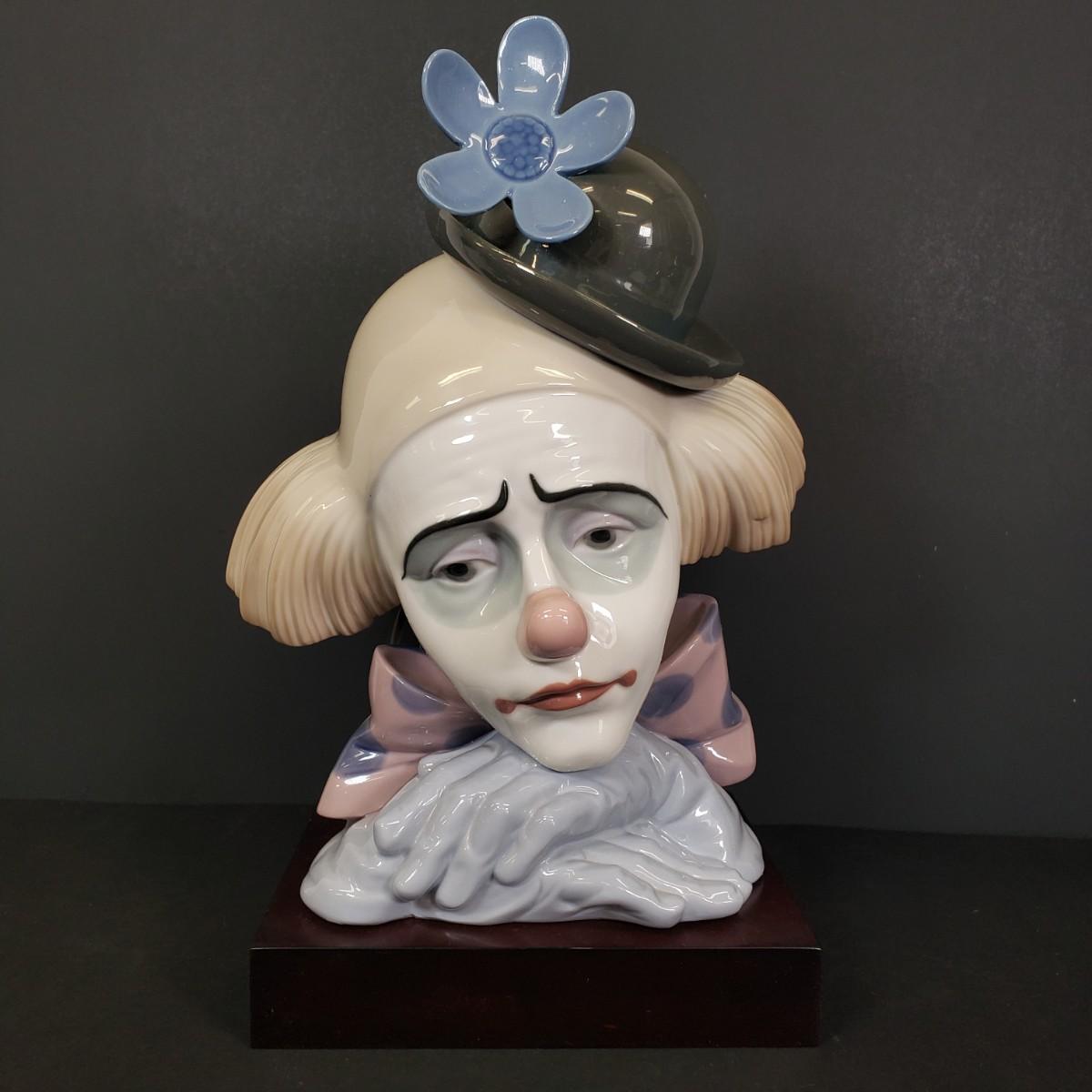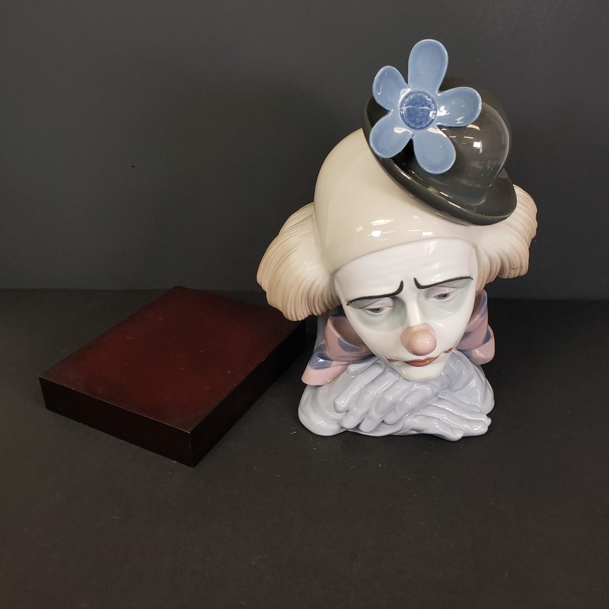 LOT 69: Lladro "Clown's Head with Bowler Hat" on Wooden Base