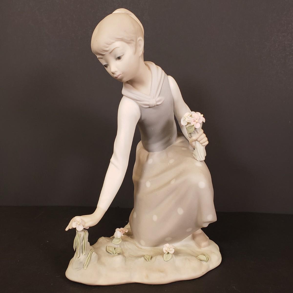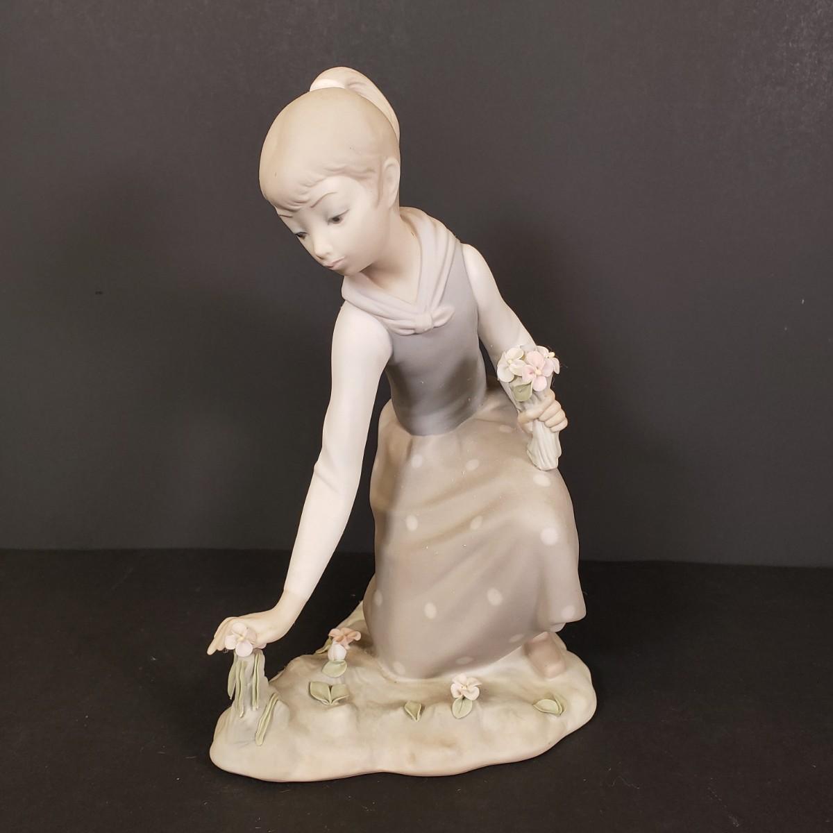 LOT 71: Lladro Porcelain Girl Picking Flowers Figure