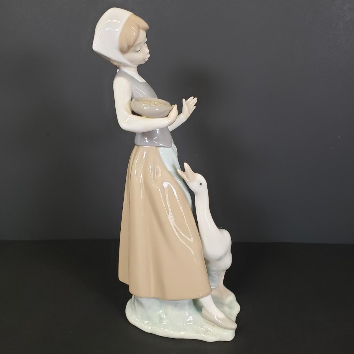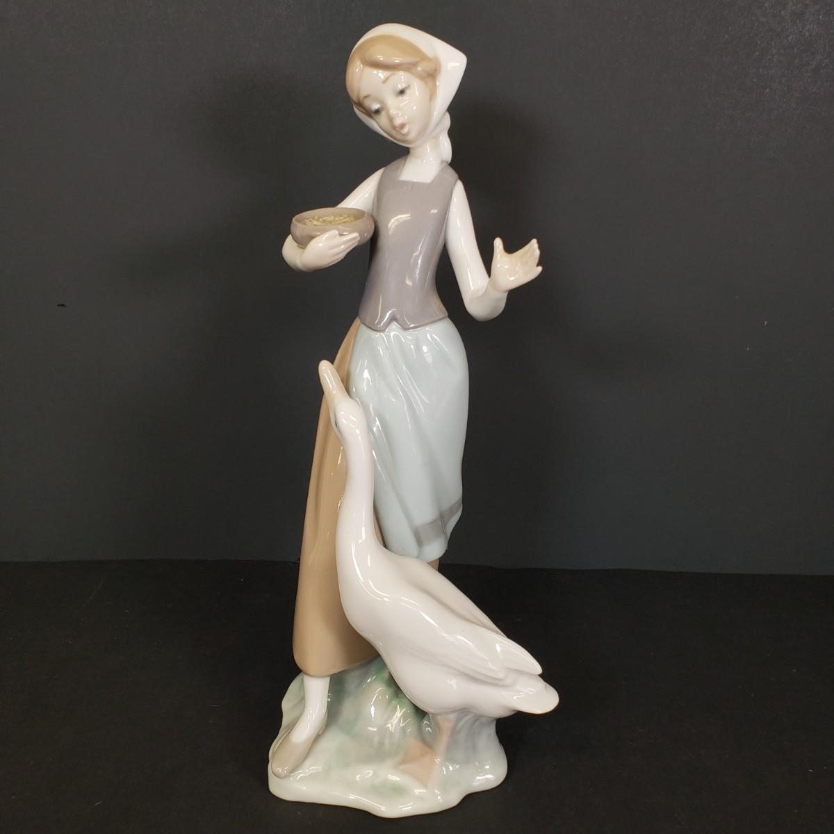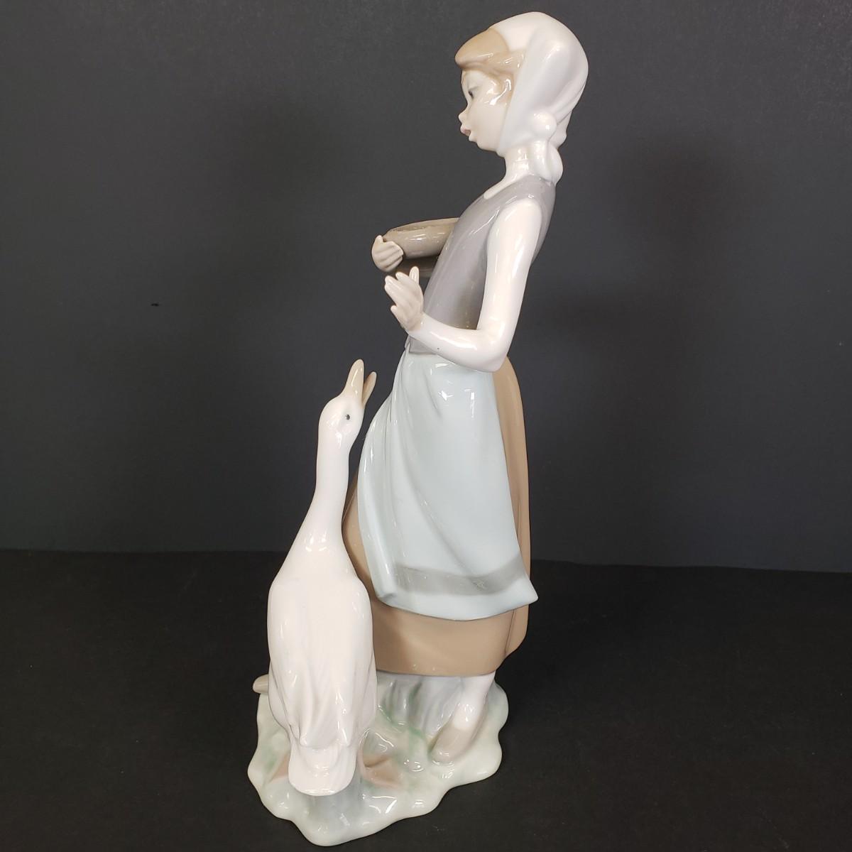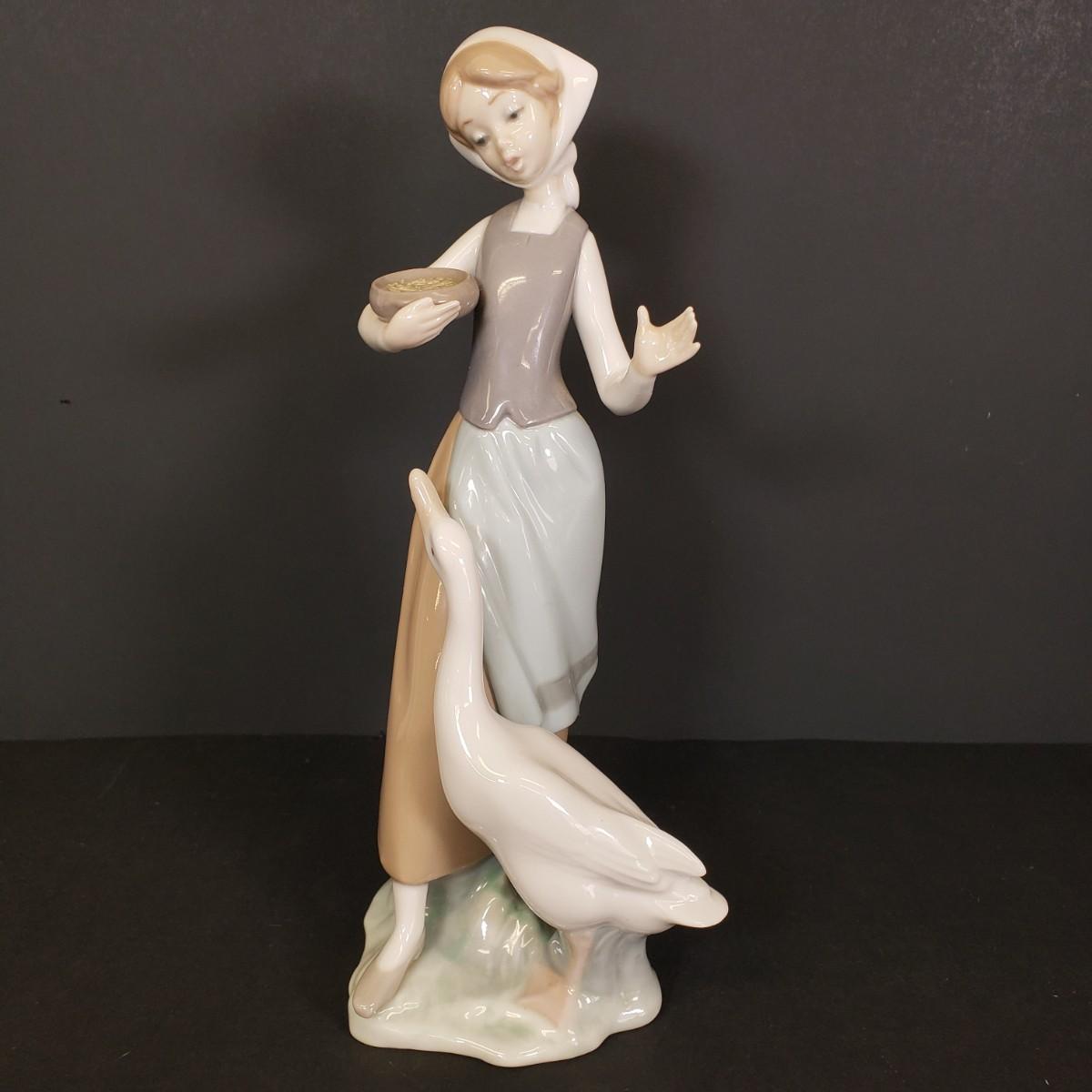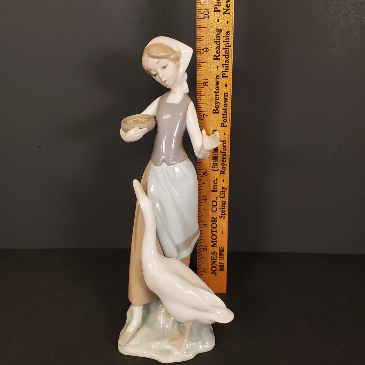LOT 74: Lladro "Girl with Duck" Feeding Goose Figure