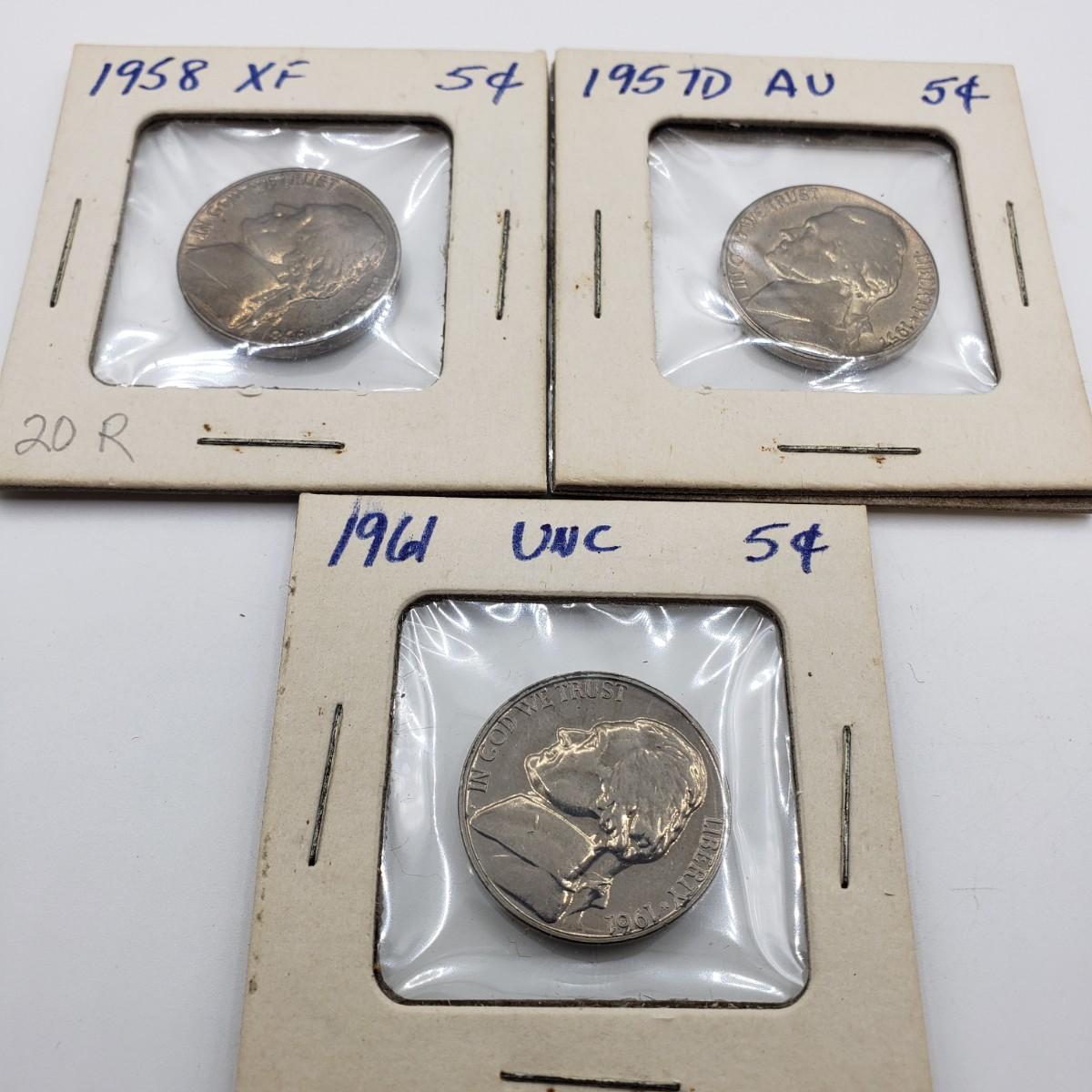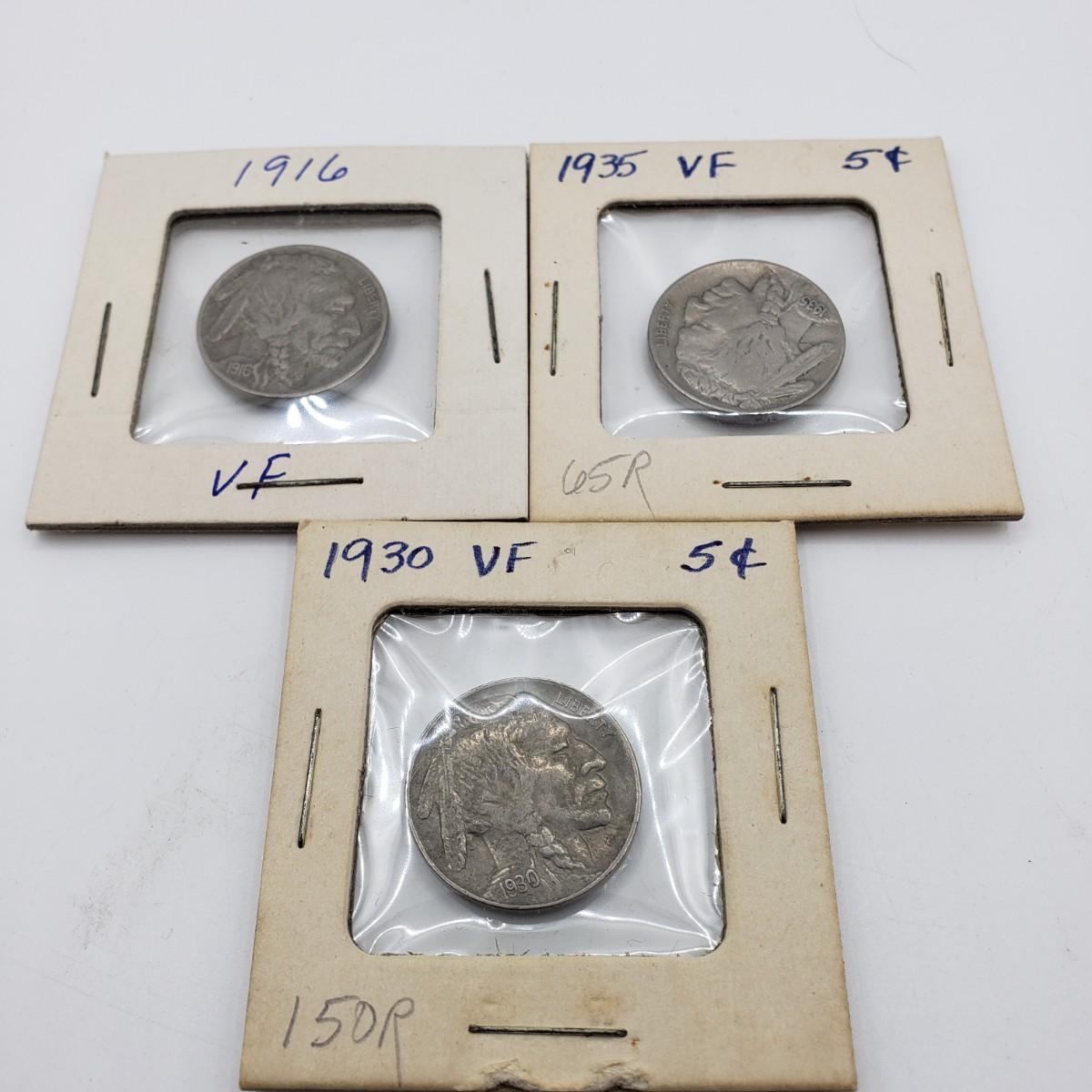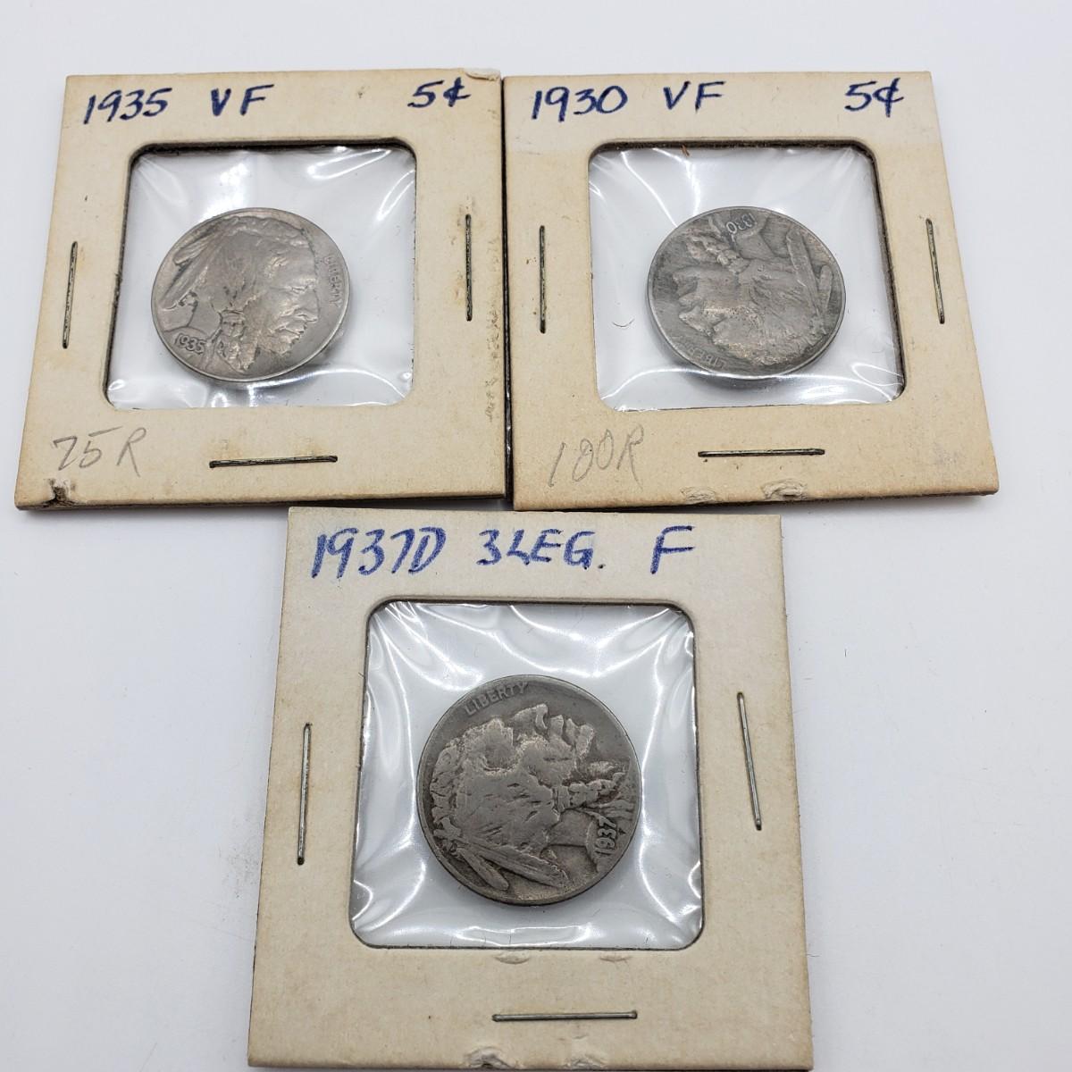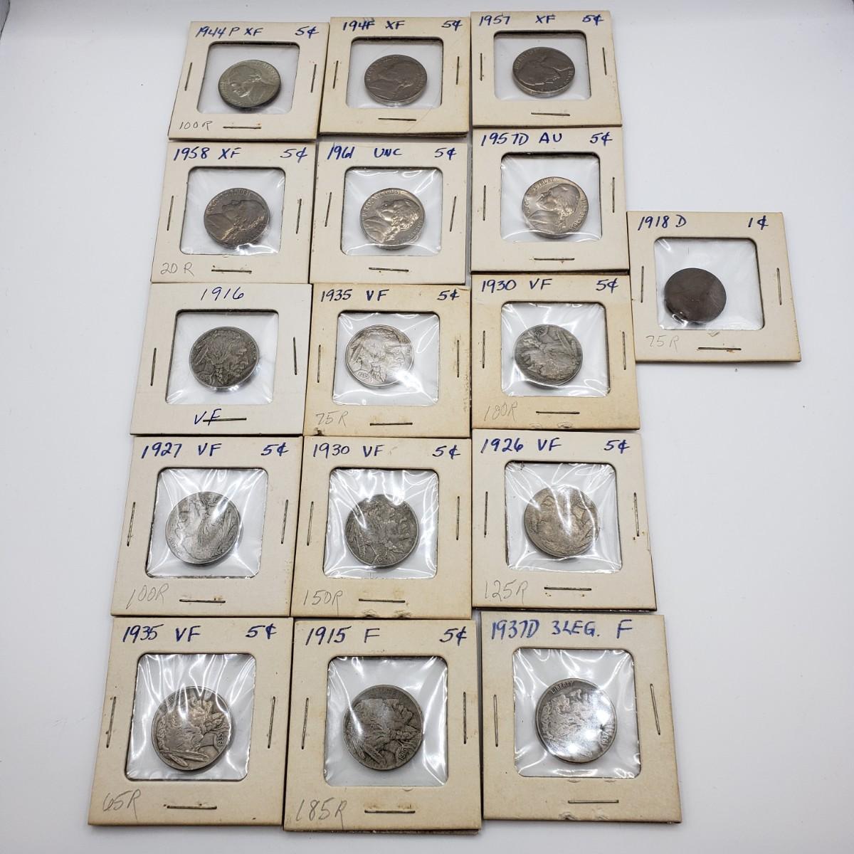 LOT 80: Antique & Vintage U.S. Coins-Buffalo & Jefferson Nickels, 1918D Wheat Penny