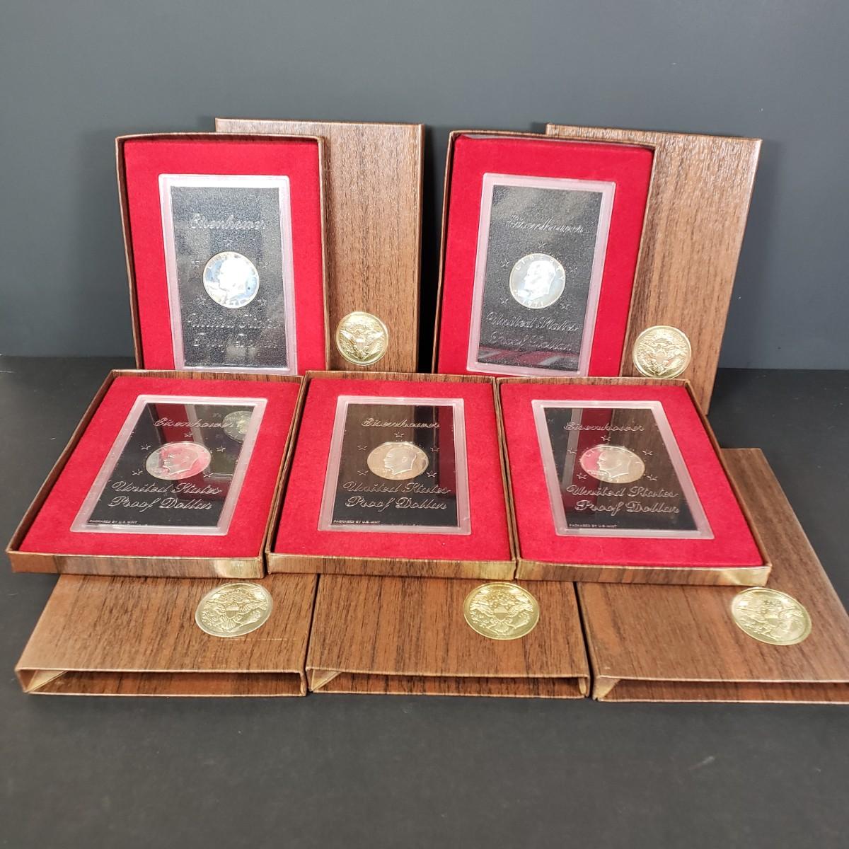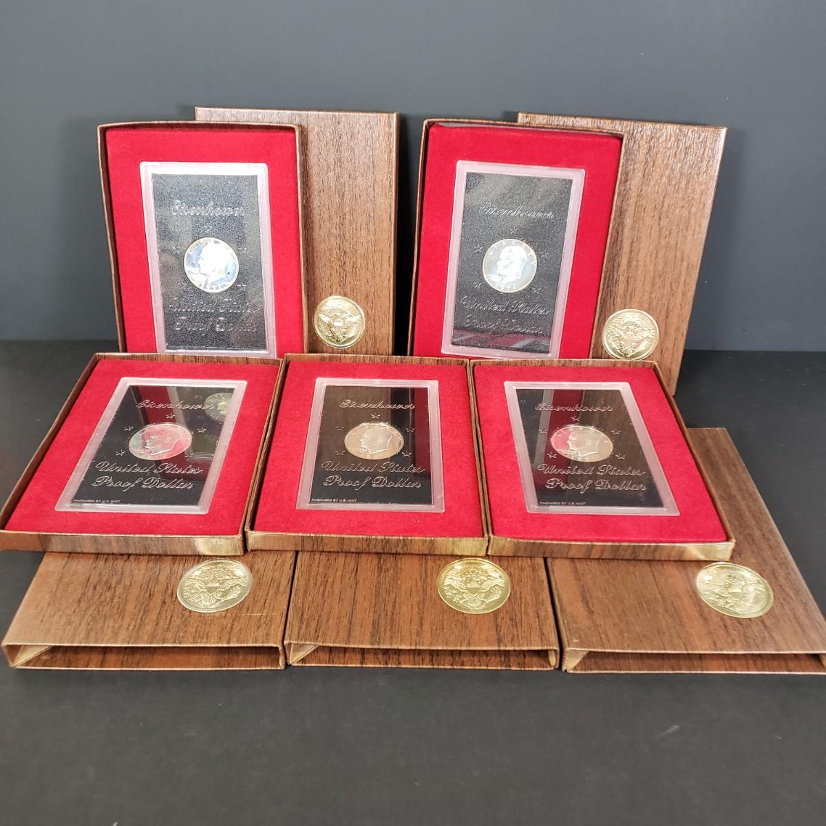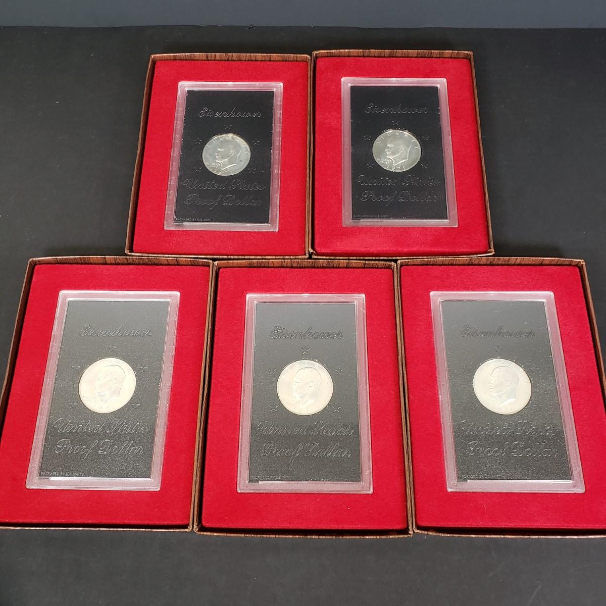 LOT 84: 1971 S Eisenhower 40% Silver Dollar Proof Sets (5)
