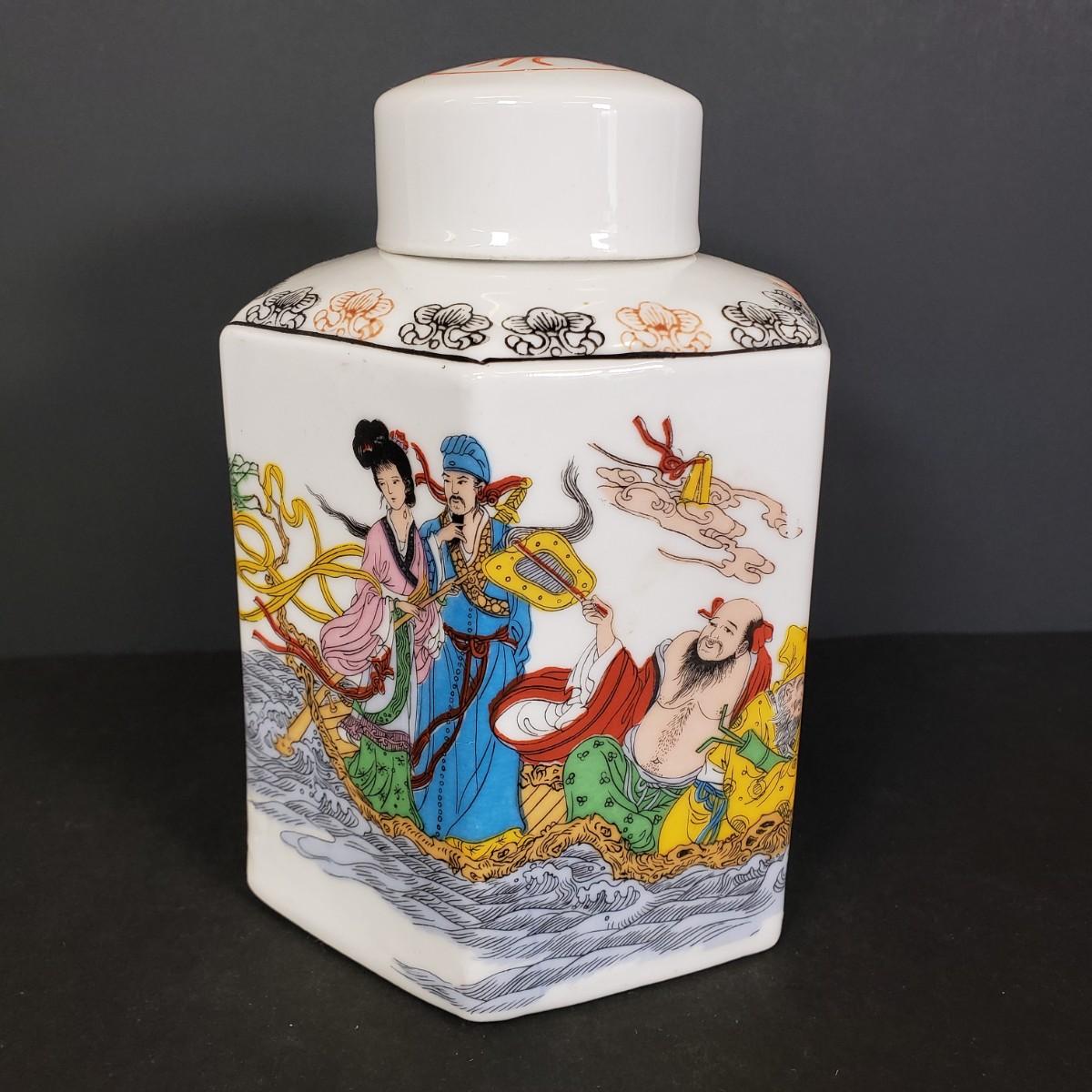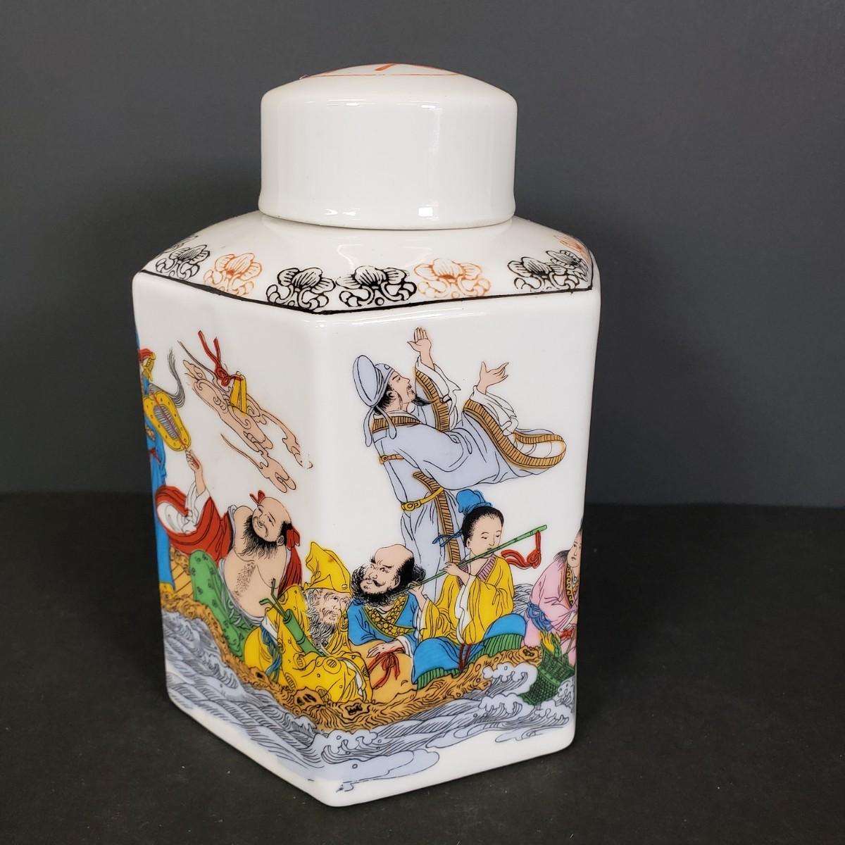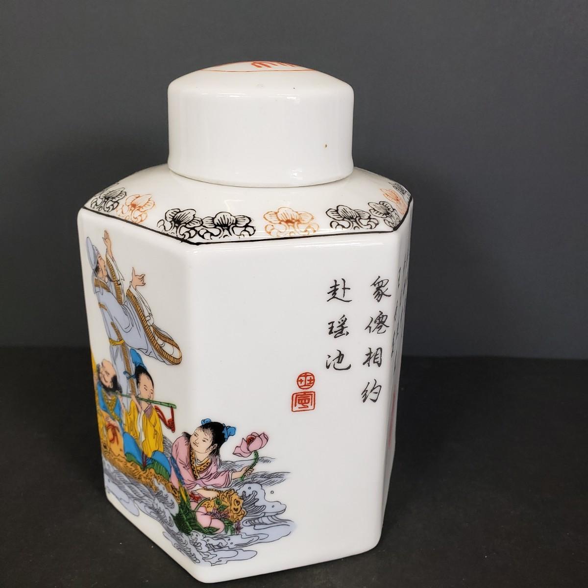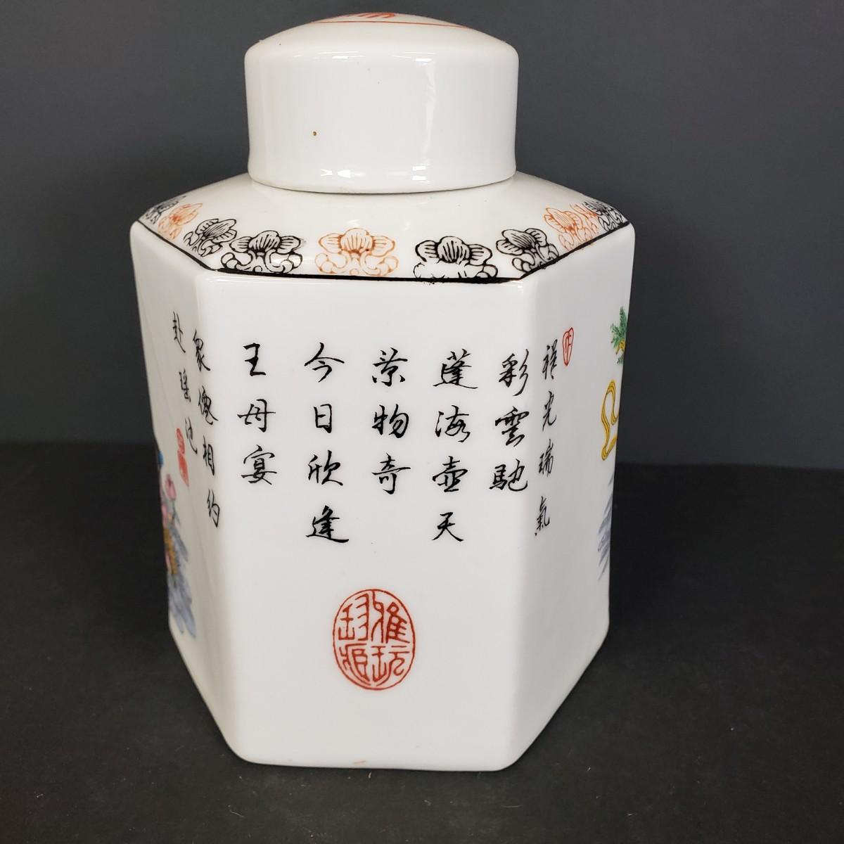 LOT 87: Antique Chinese Joss Stick Incense burner, Antique Porcelain Tea Caddy & Vintage Lenox USA Vase