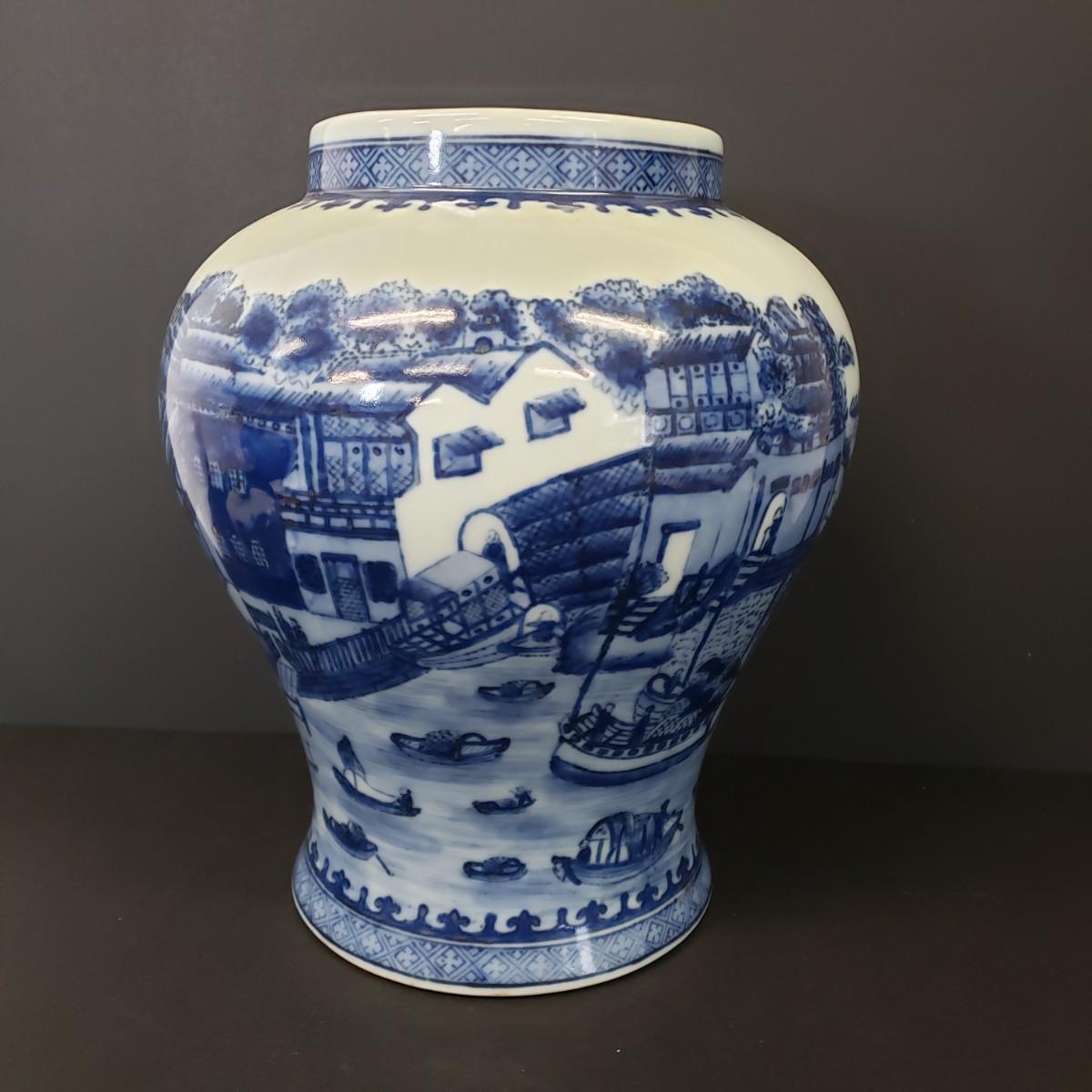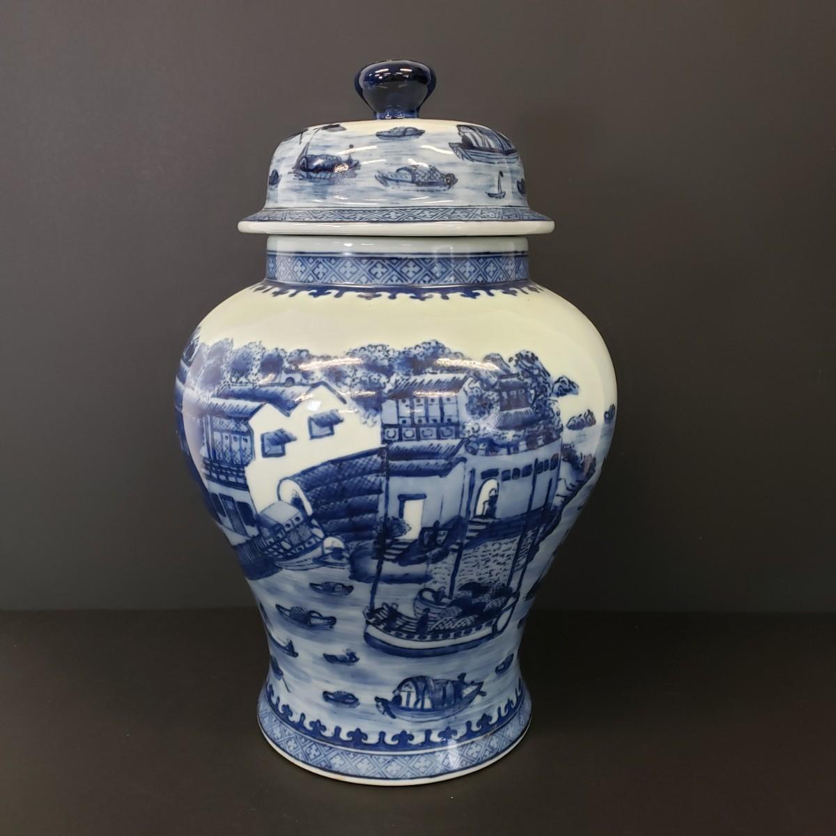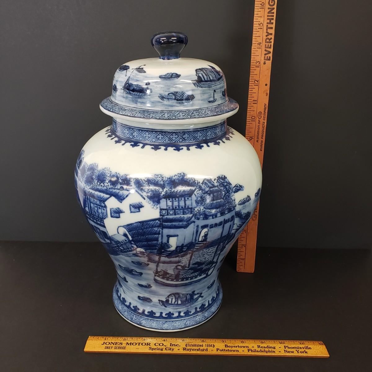 LOT 90: Vintage Blue and White Porcelain Temple/Ginger Jar Urn