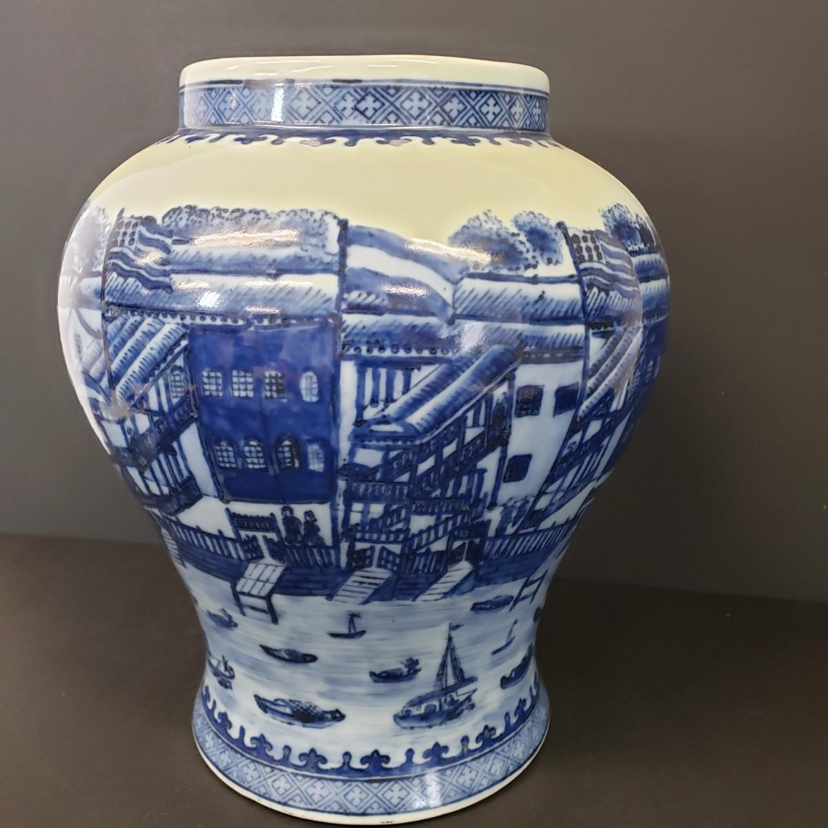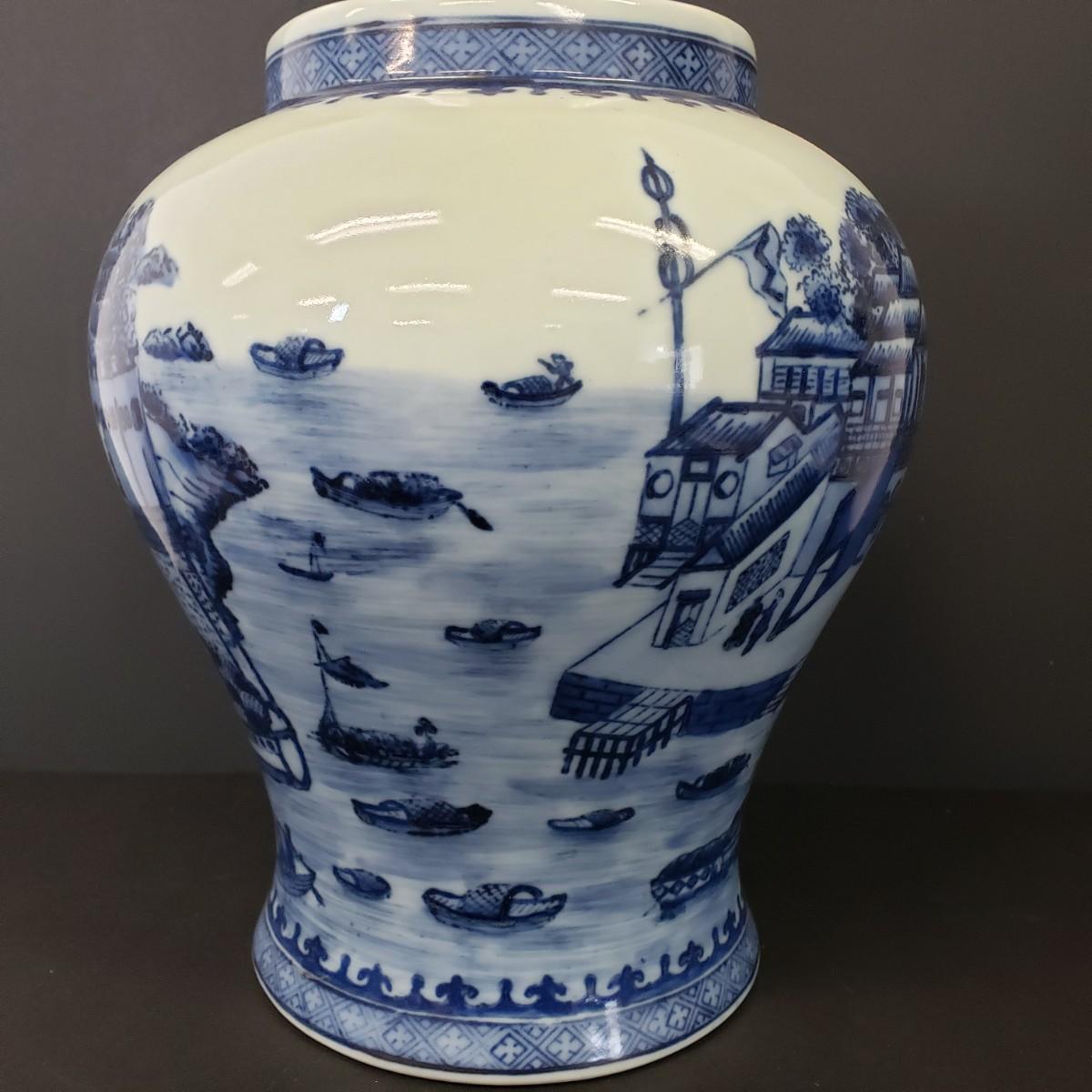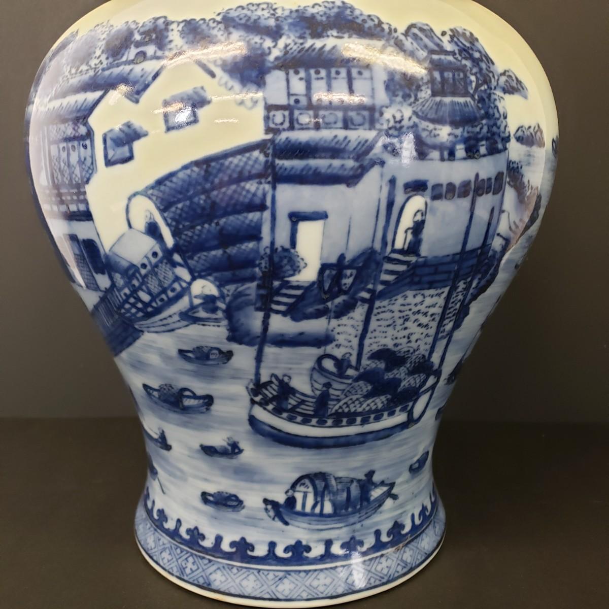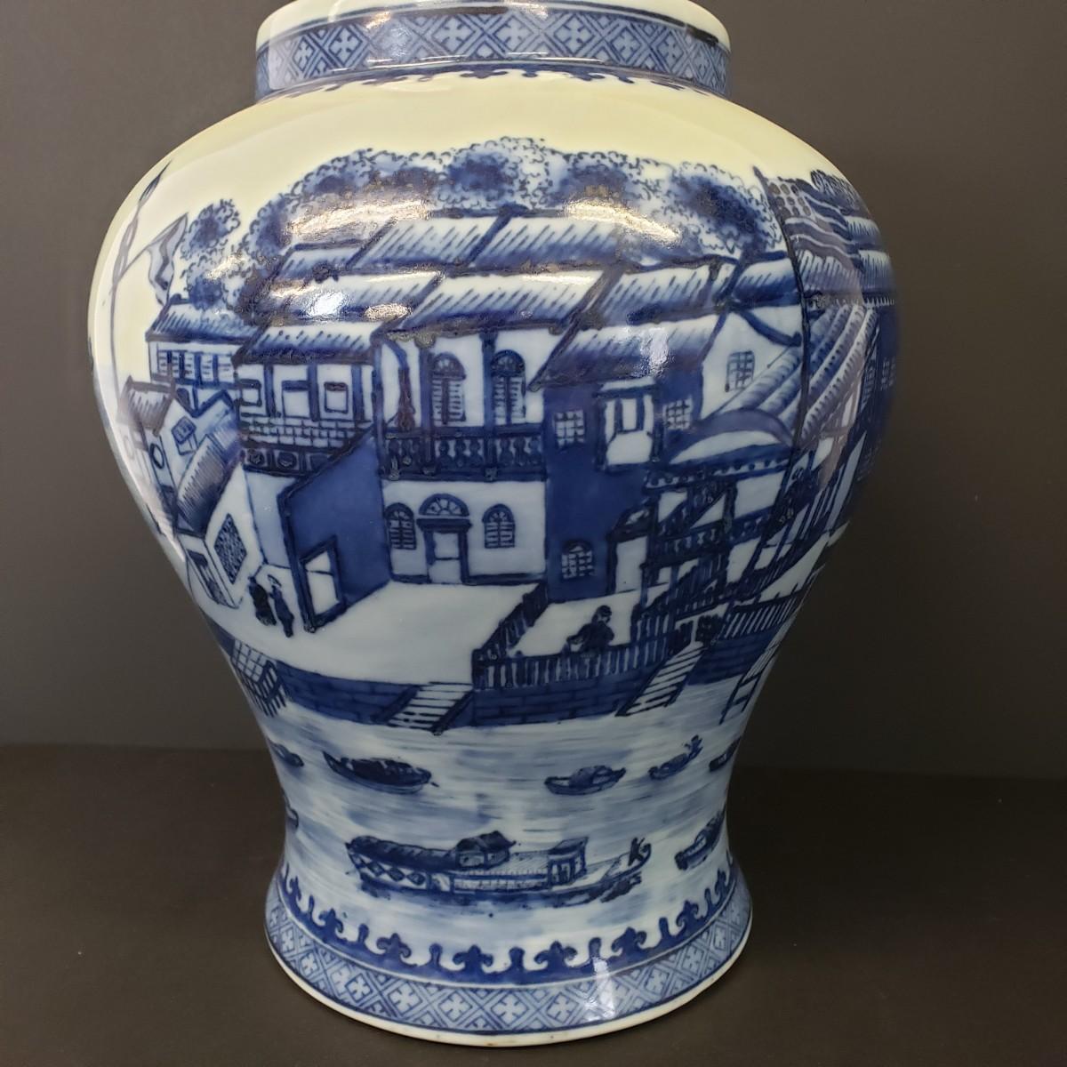 LOT 90: Vintage Blue and White Porcelain Temple/Ginger Jar Urn