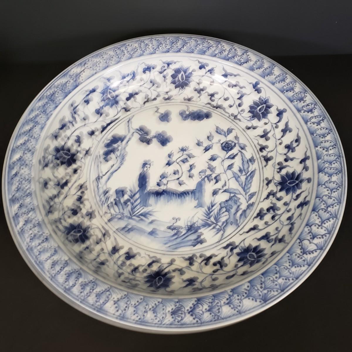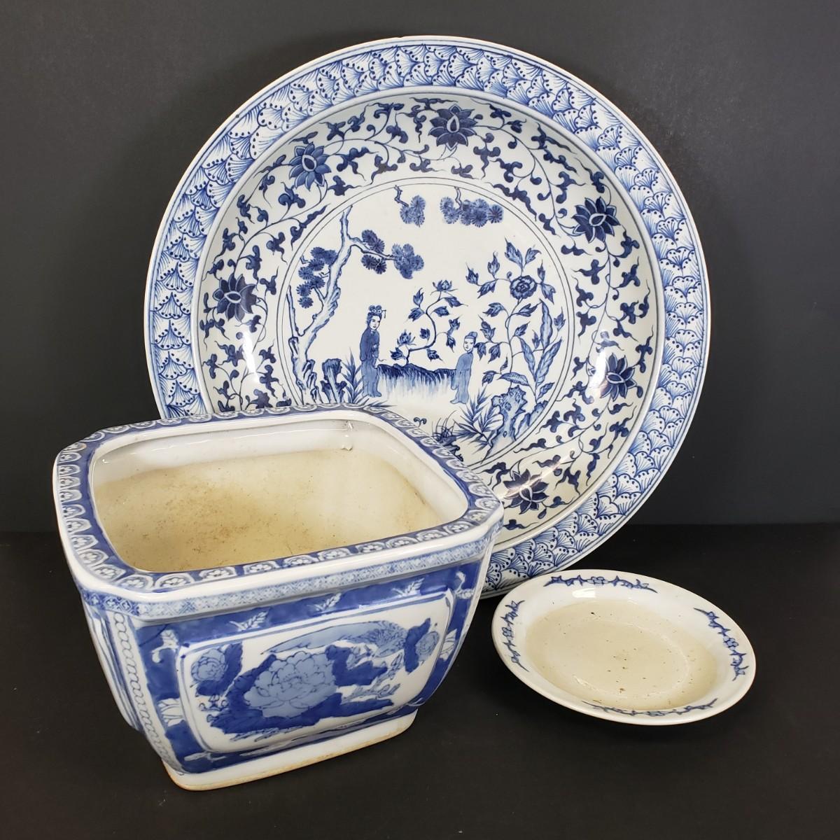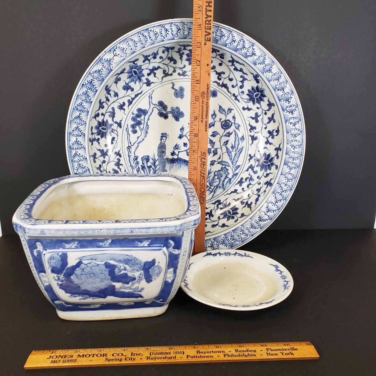 LOT 92: Large Antique Chinese Blue & White Bowl, Vintage Planter & Underplate